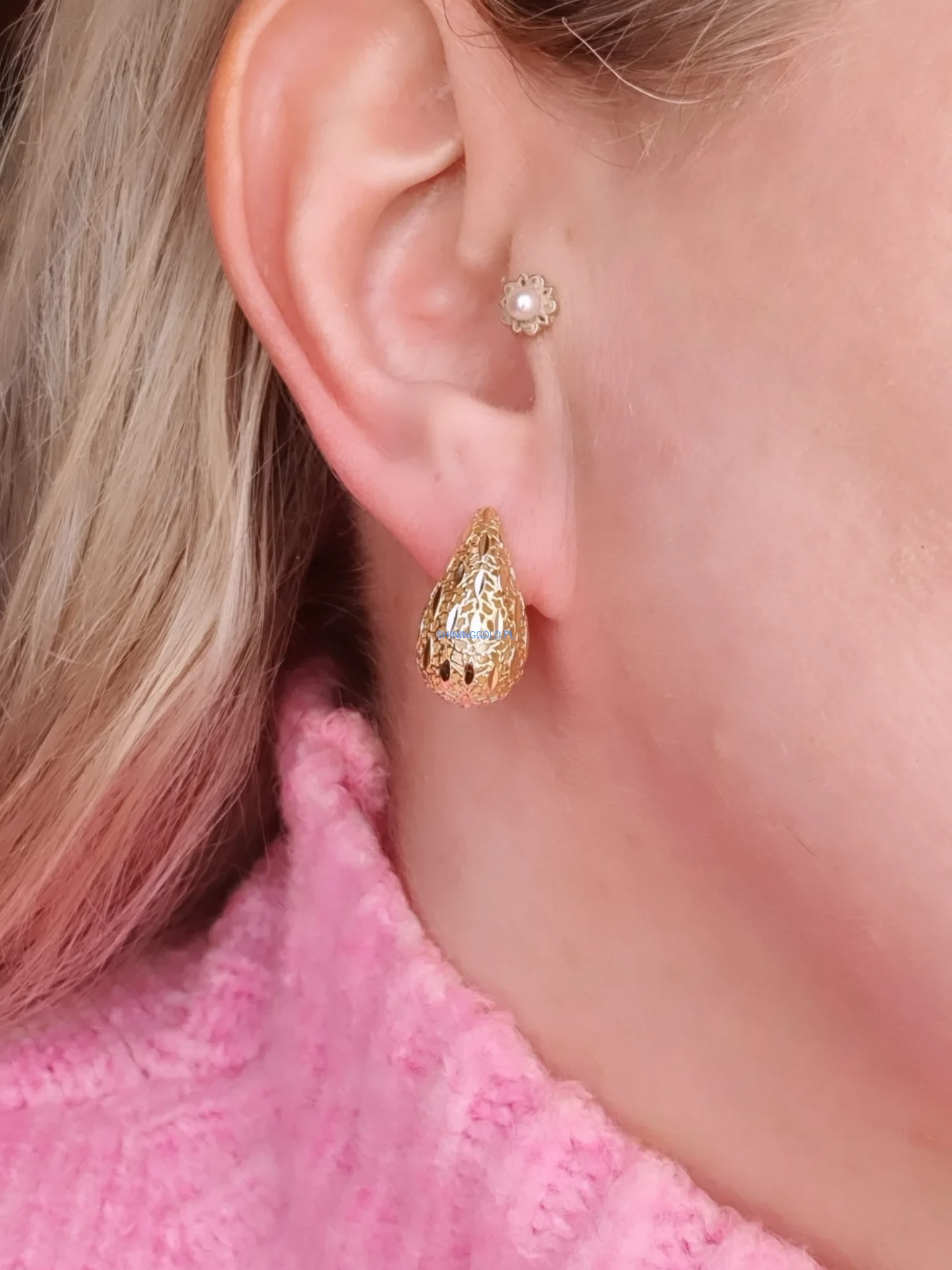 Złote kolczyki – ażurowe łezki (763A)