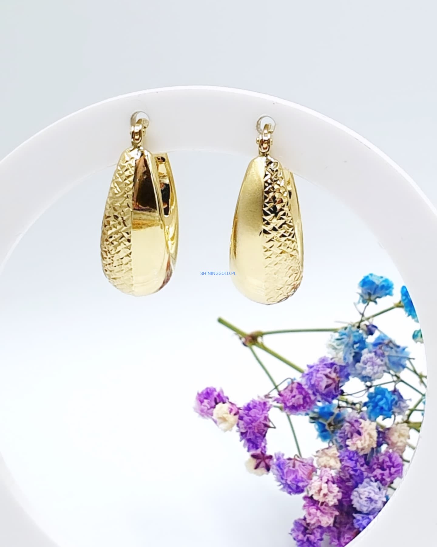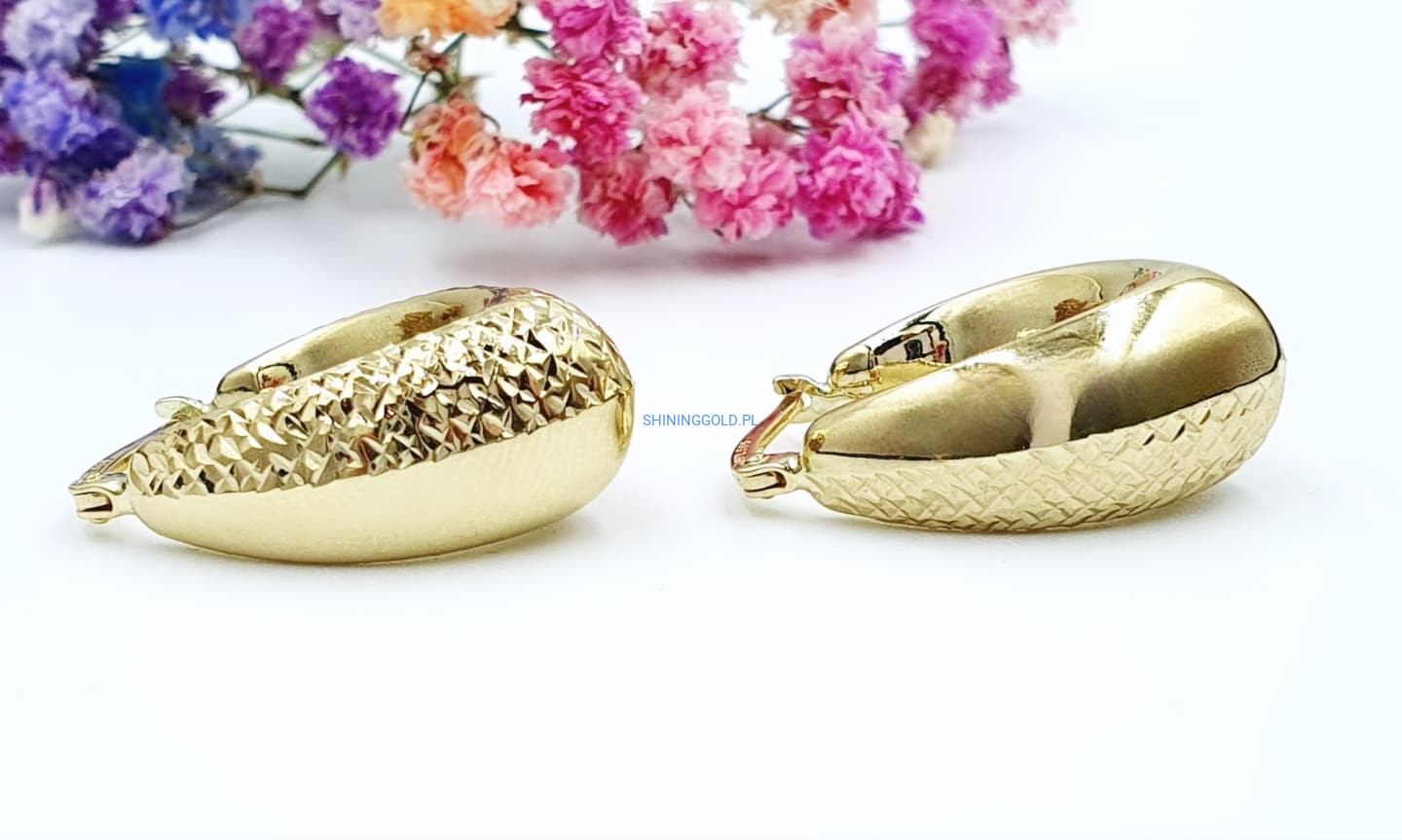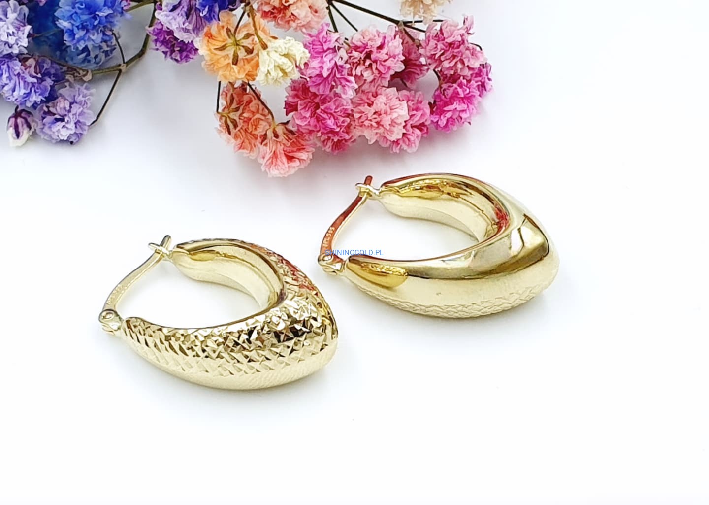 Stylowe i wyjątkowe złote kolczyki próby 585 o unikalnym kształcie przypominającym lekkie, delikatne bańki. Ich przestrzenna forma nadaje biżuterii nowoczesnego charakteru, a subtelny połysk złota sprawia, że pasują zarówno do codziennych, jak i eleganckich stylizacji.