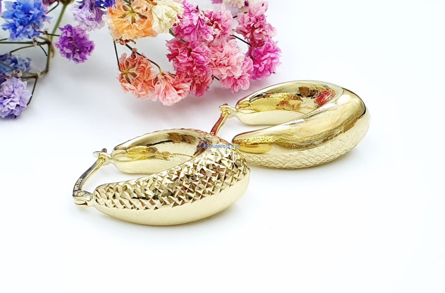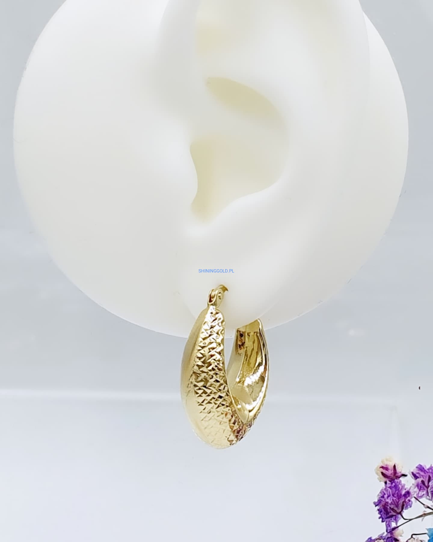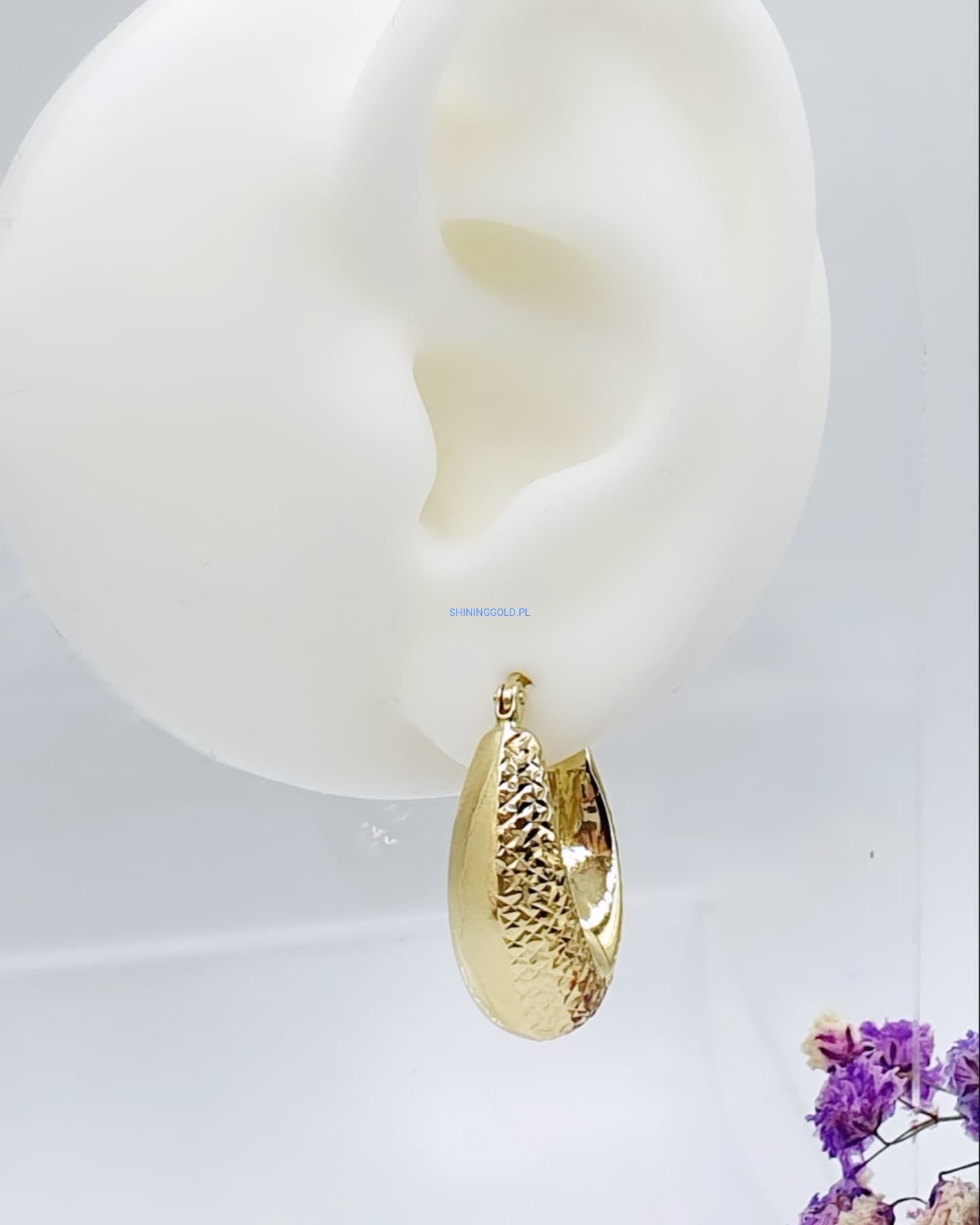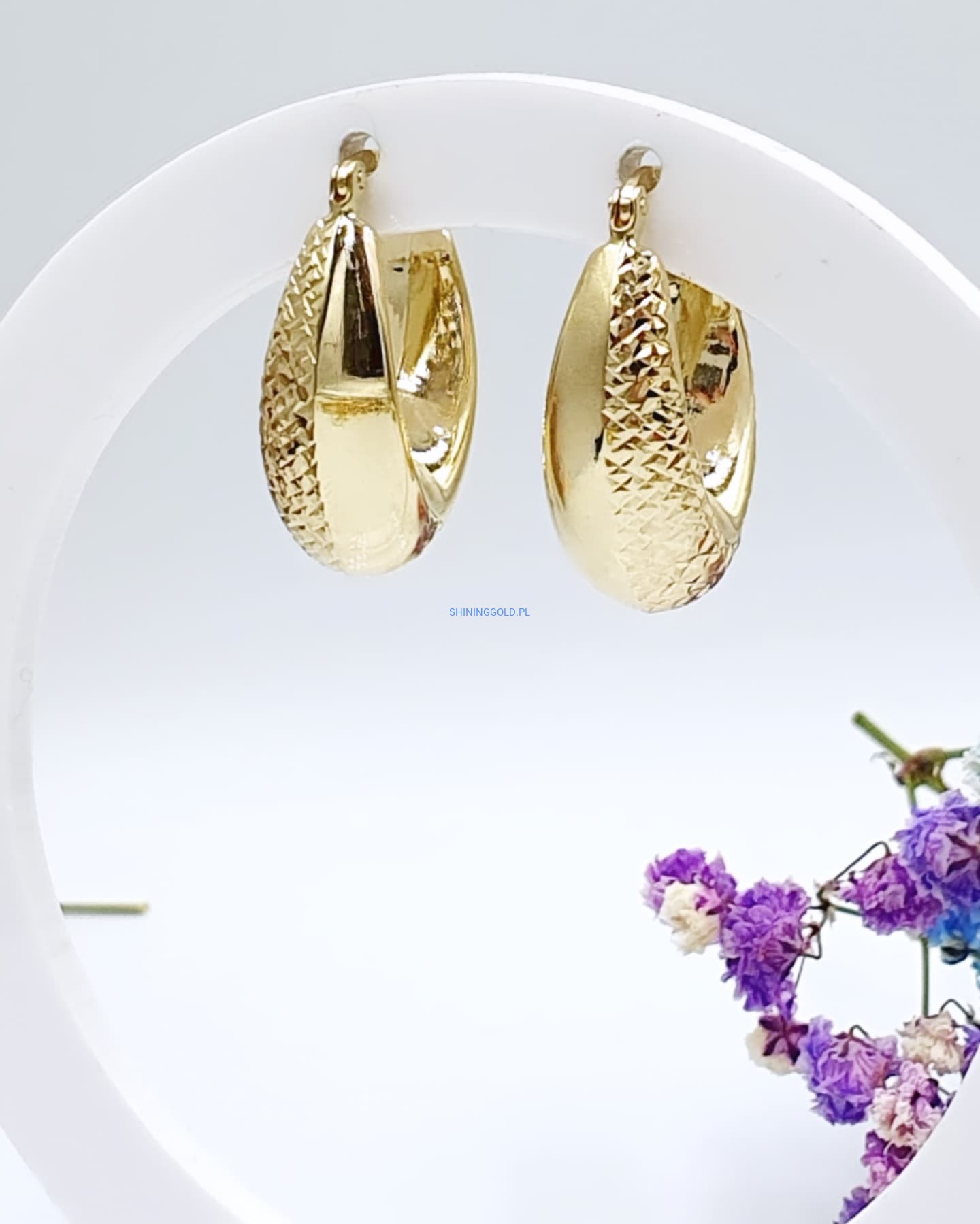 Stylowe i wyjątkowe złote kolczyki próby 585 o unikalnym kształcie przypominającym lekkie, delikatne bańki. Ich przestrzenna forma nadaje biżuterii nowoczesnego charakteru, a subtelny połysk złota sprawia, że pasują zarówno do codziennych, jak i eleganckich stylizacji.