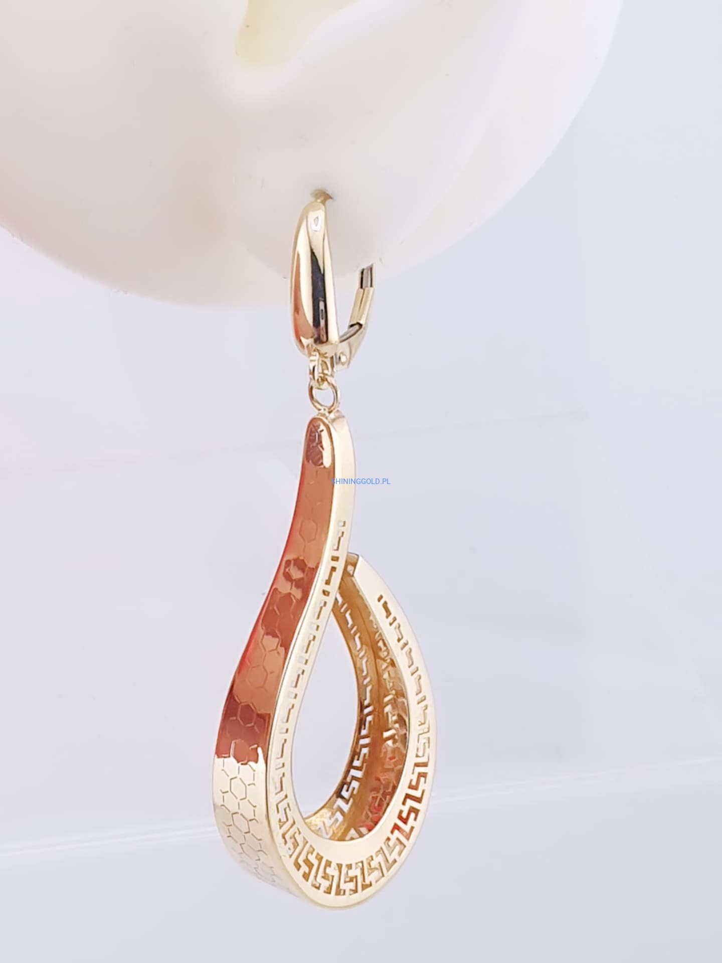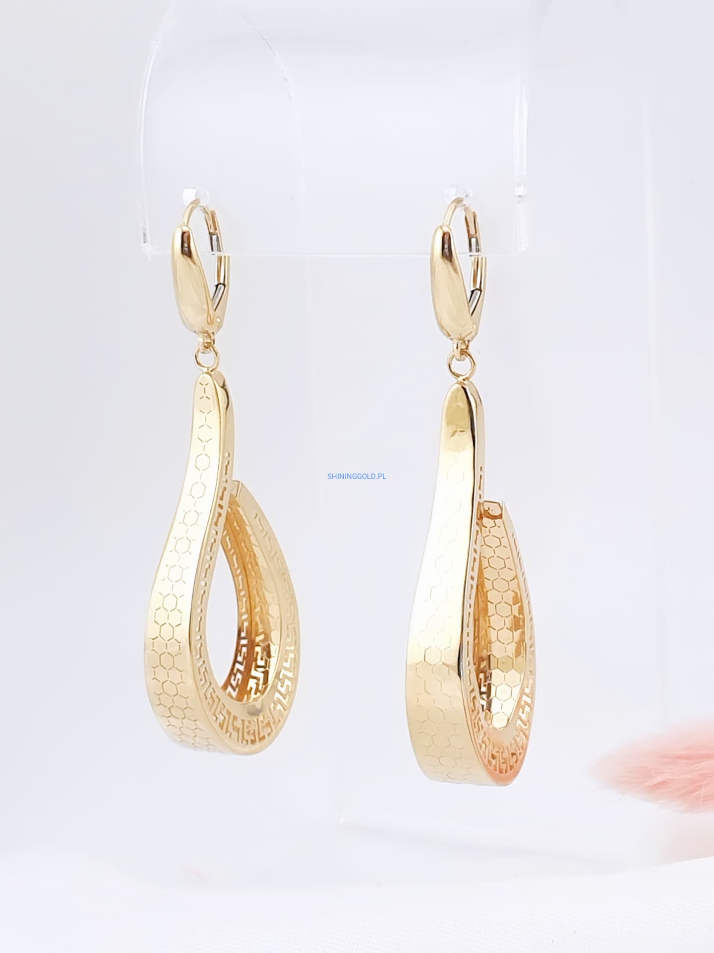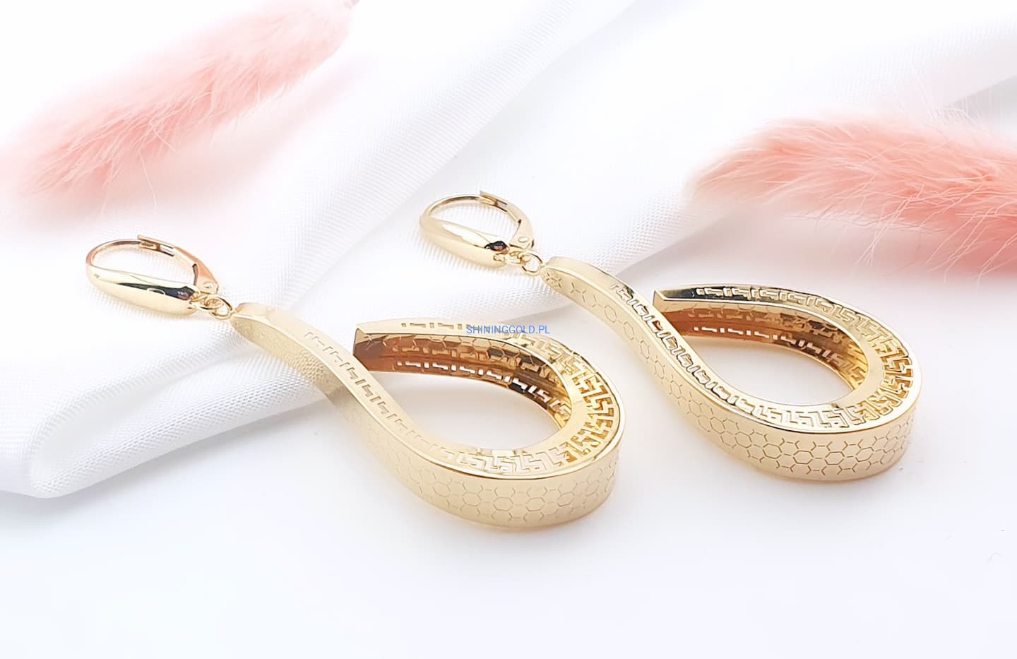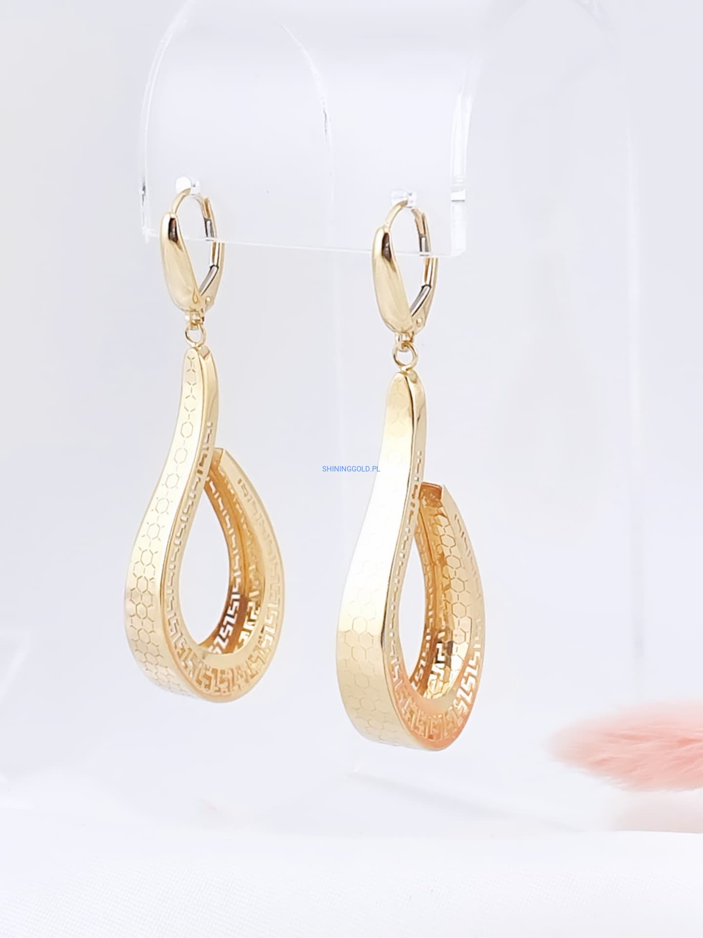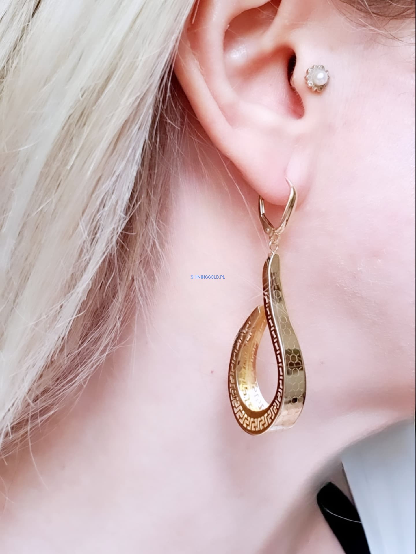 Złote kolczyki próby 585 to wyjątkowa biżuteria, która łączy nowoczesny design z klasyczną elegancją. Smukła forma w kształcie łezki z subtelnym grawerem sprawia, że prezentują się niezwykle efektownie i pasują zarówno do codziennych, jak i wieczorowych stylizacji. Solidne zapięcie typu angielskiego zapewnia komfort i bezpieczeństwo noszenia.