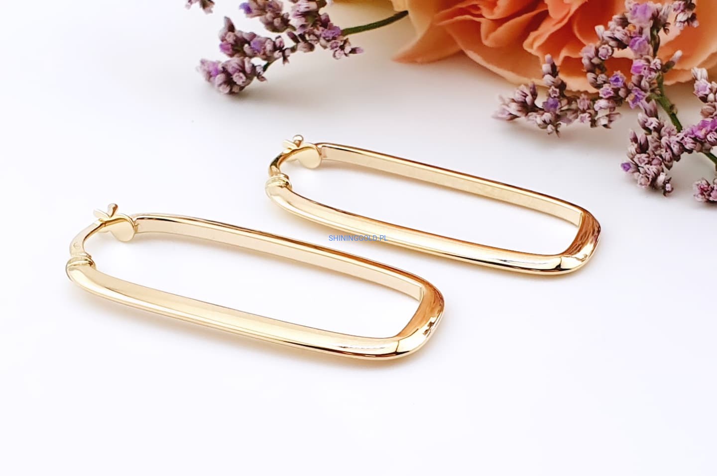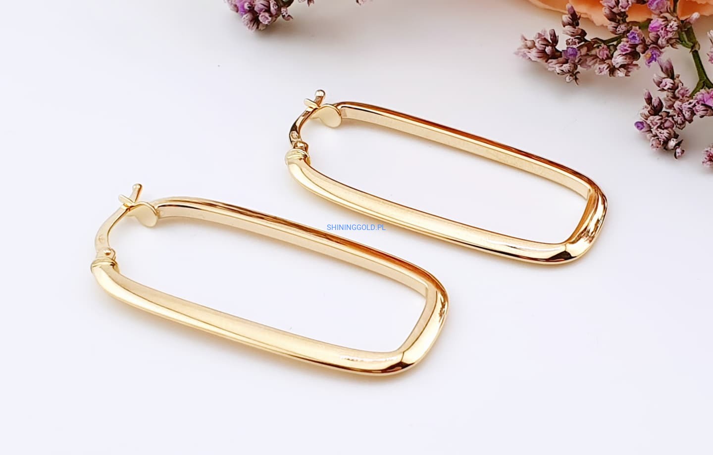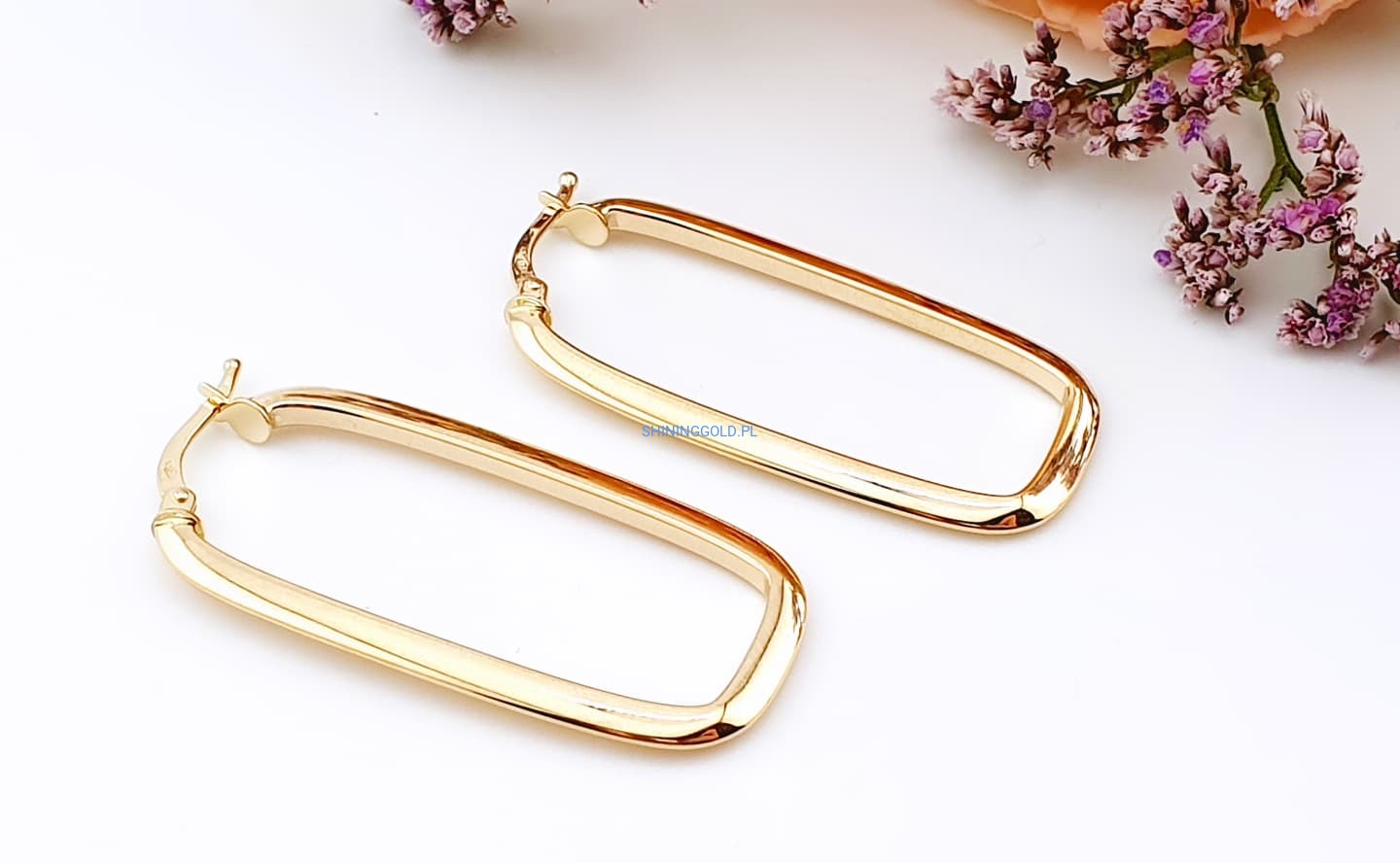 Złote kolczyki prostokątne 585, wysokość 37 mm, waga 2,07 g (7068.WS)