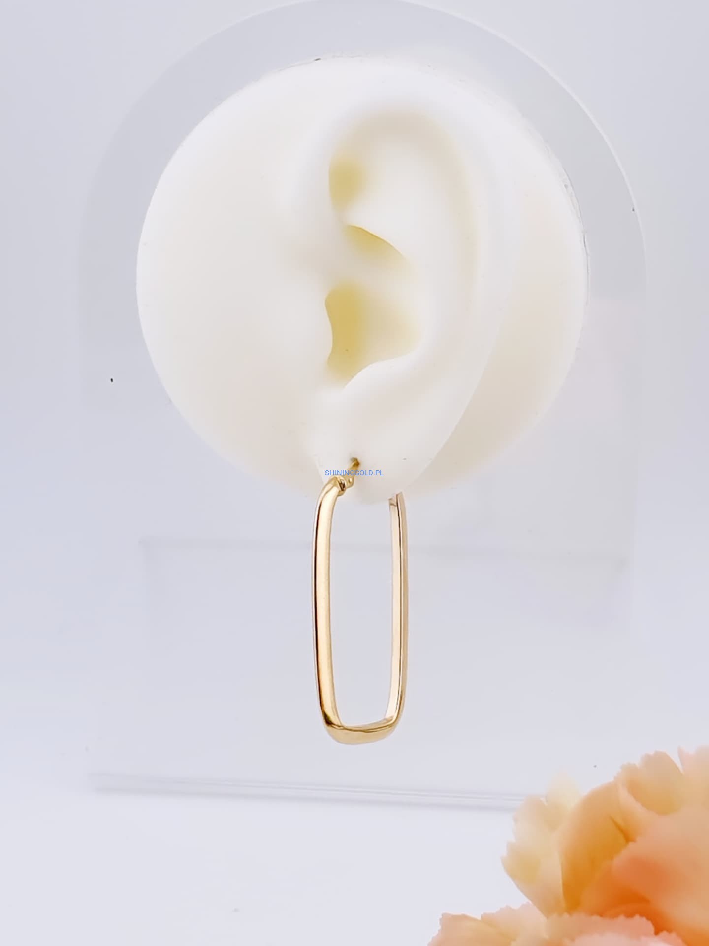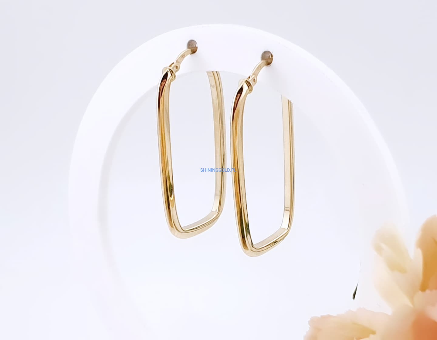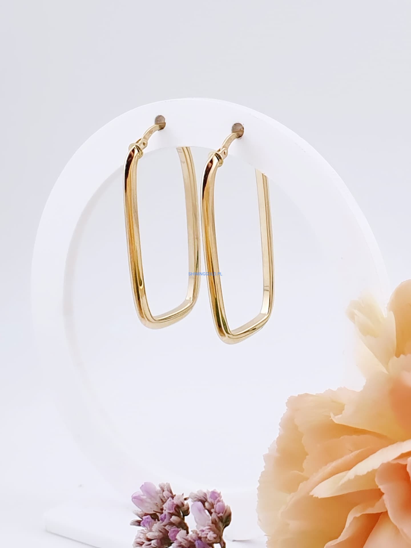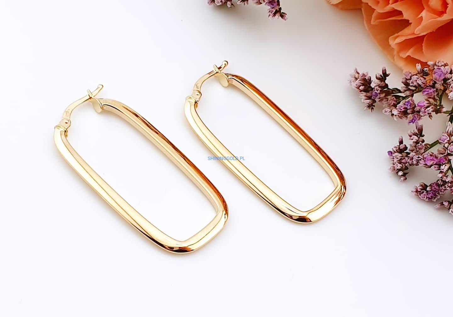 Złote kolczyki prostokątne 585, wysokość 37 mm, waga 2,07 g (7068.WS)