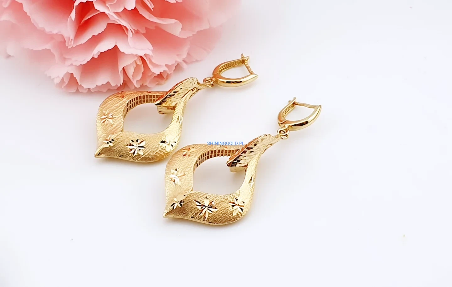 Złote kolczyki wiszące – ażurowy wzór (712A)