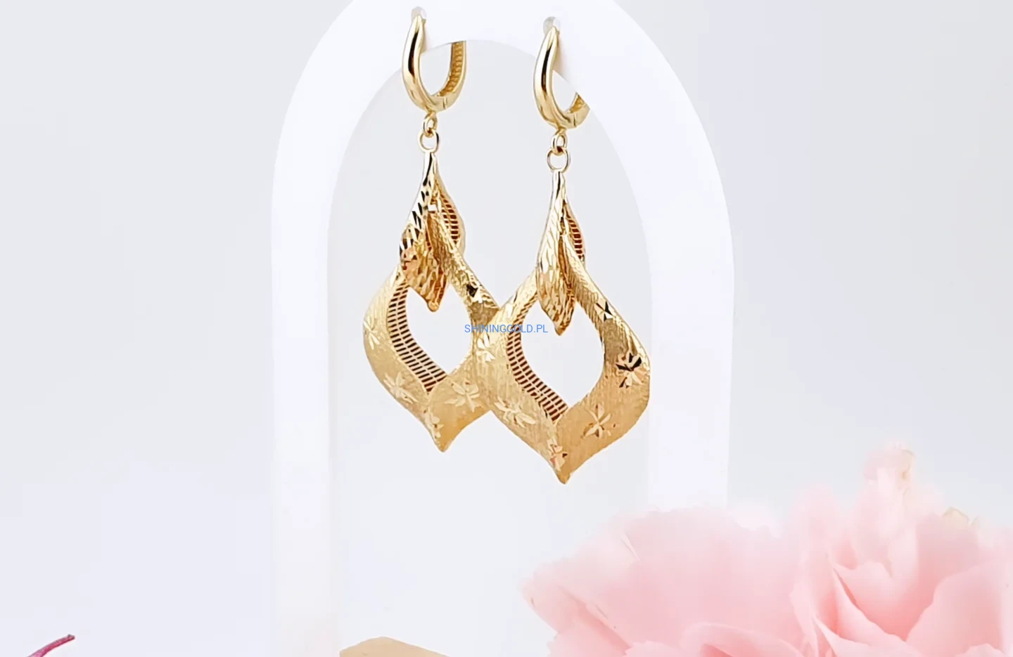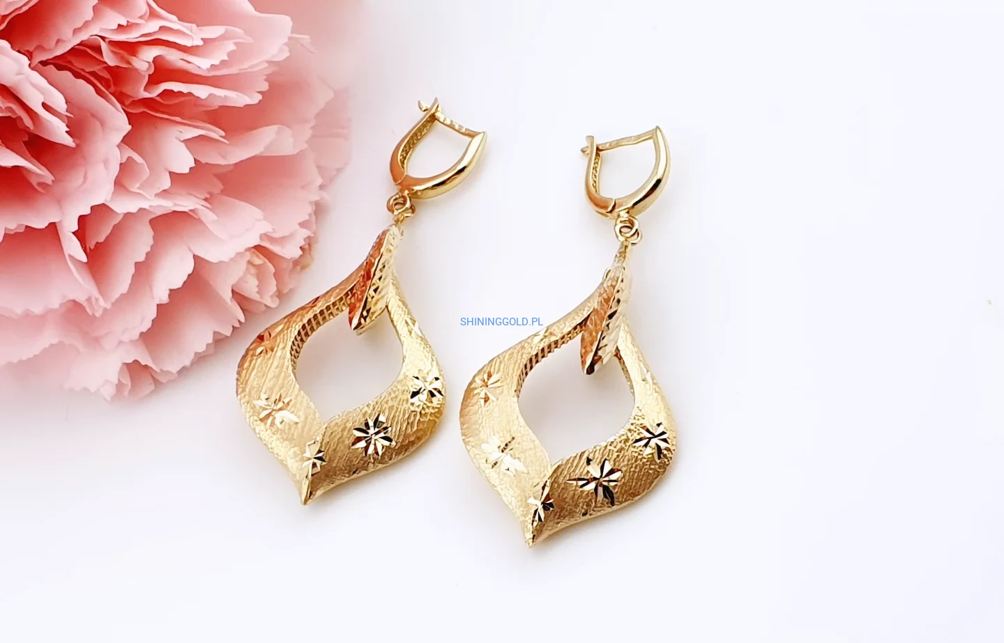 Złote kolczyki 585 wiszące – ażurowy wzór