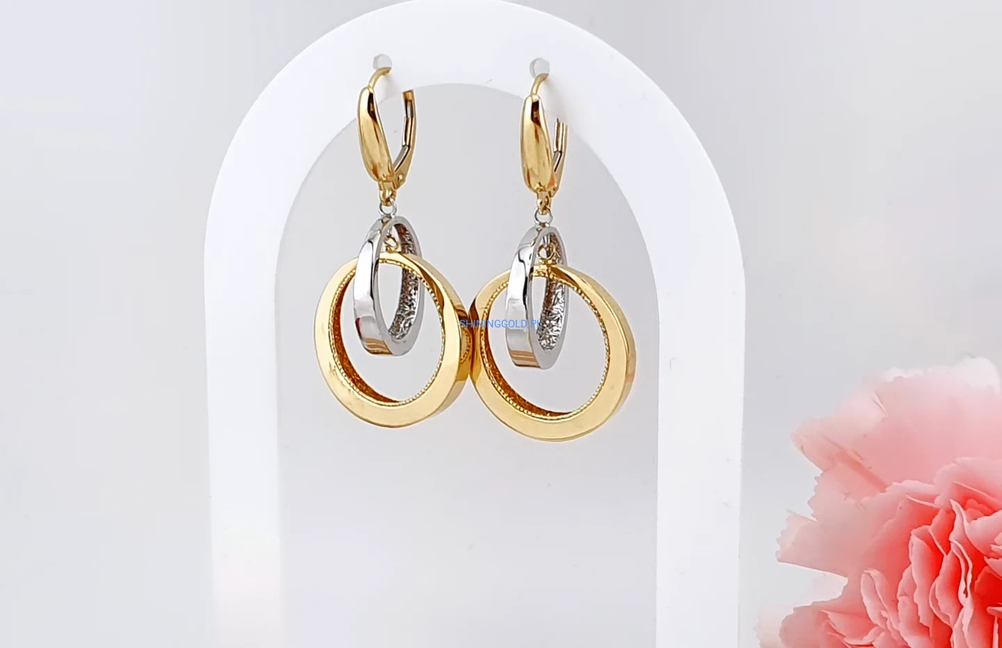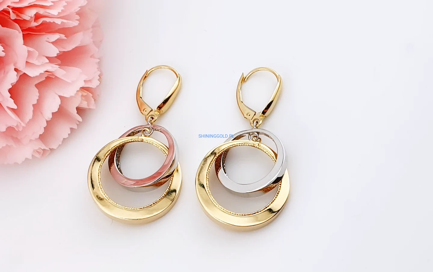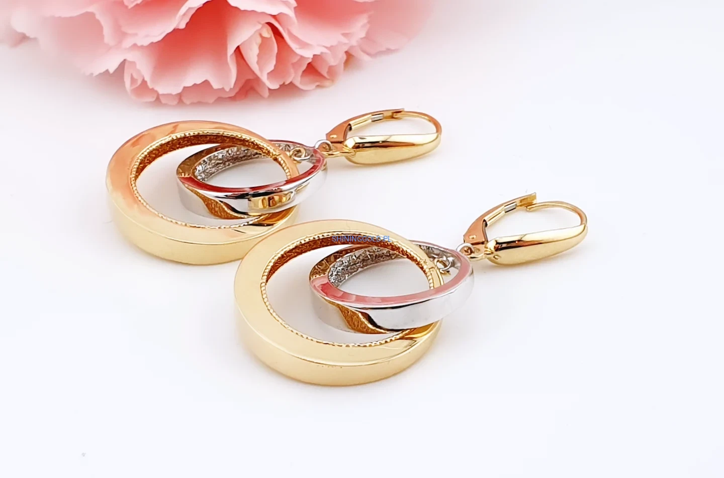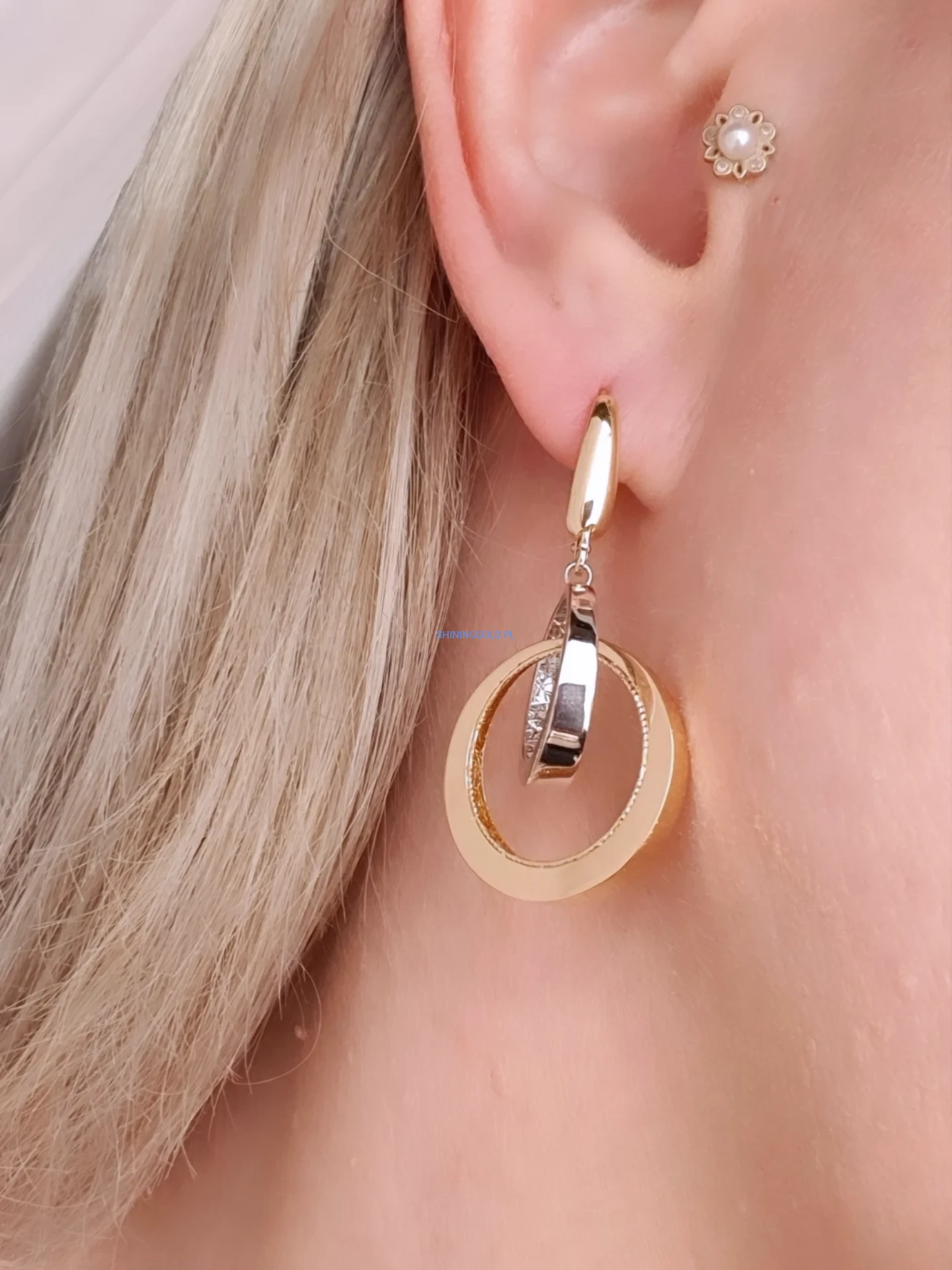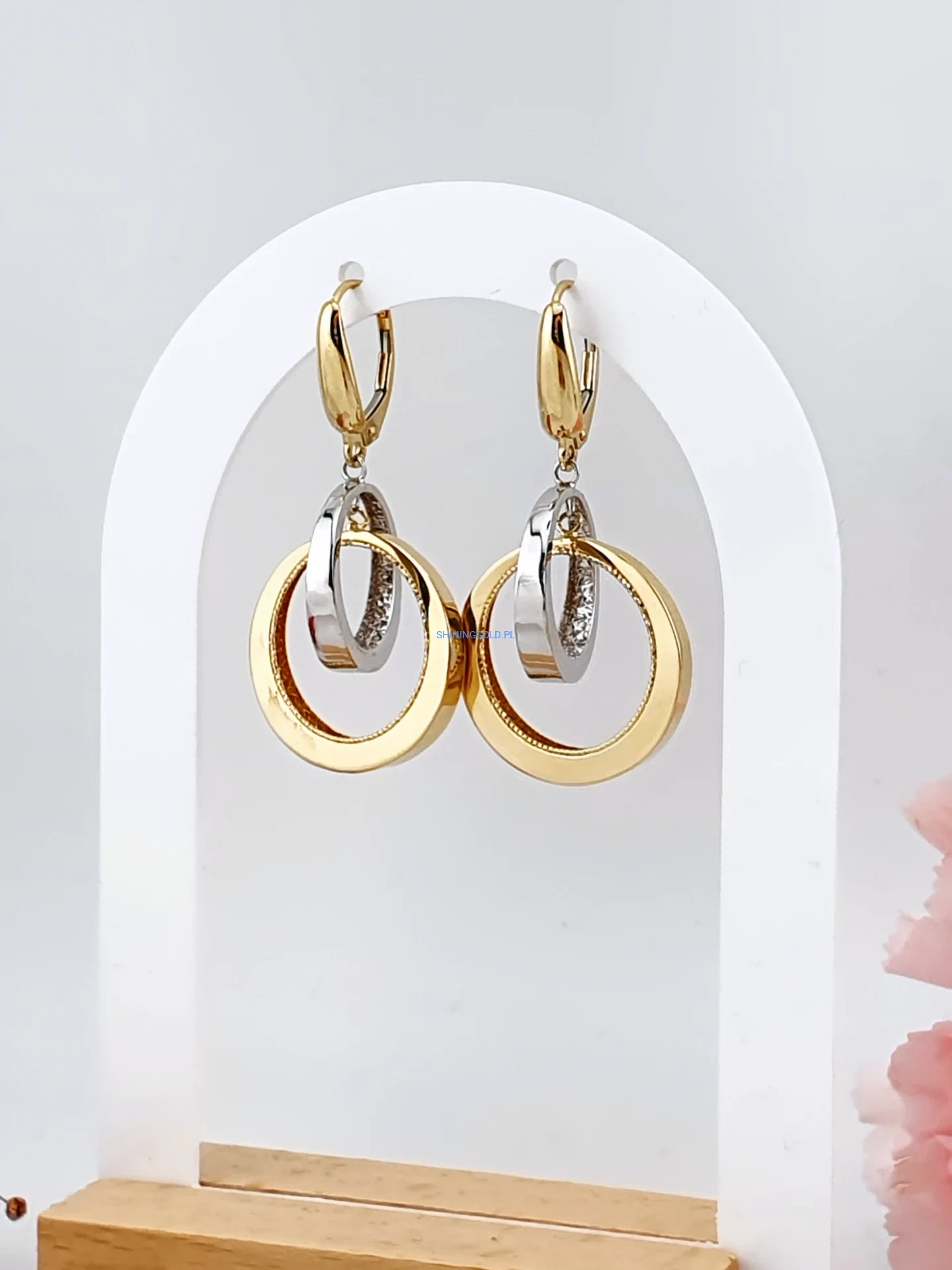 Złote kolczyki wiszące dwukolorowe – koła (719A)