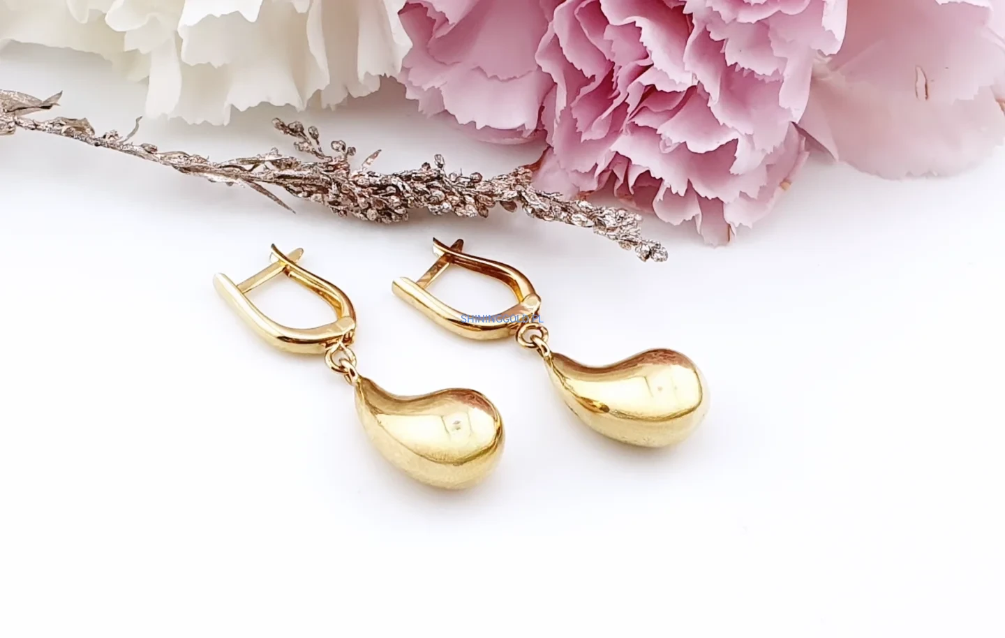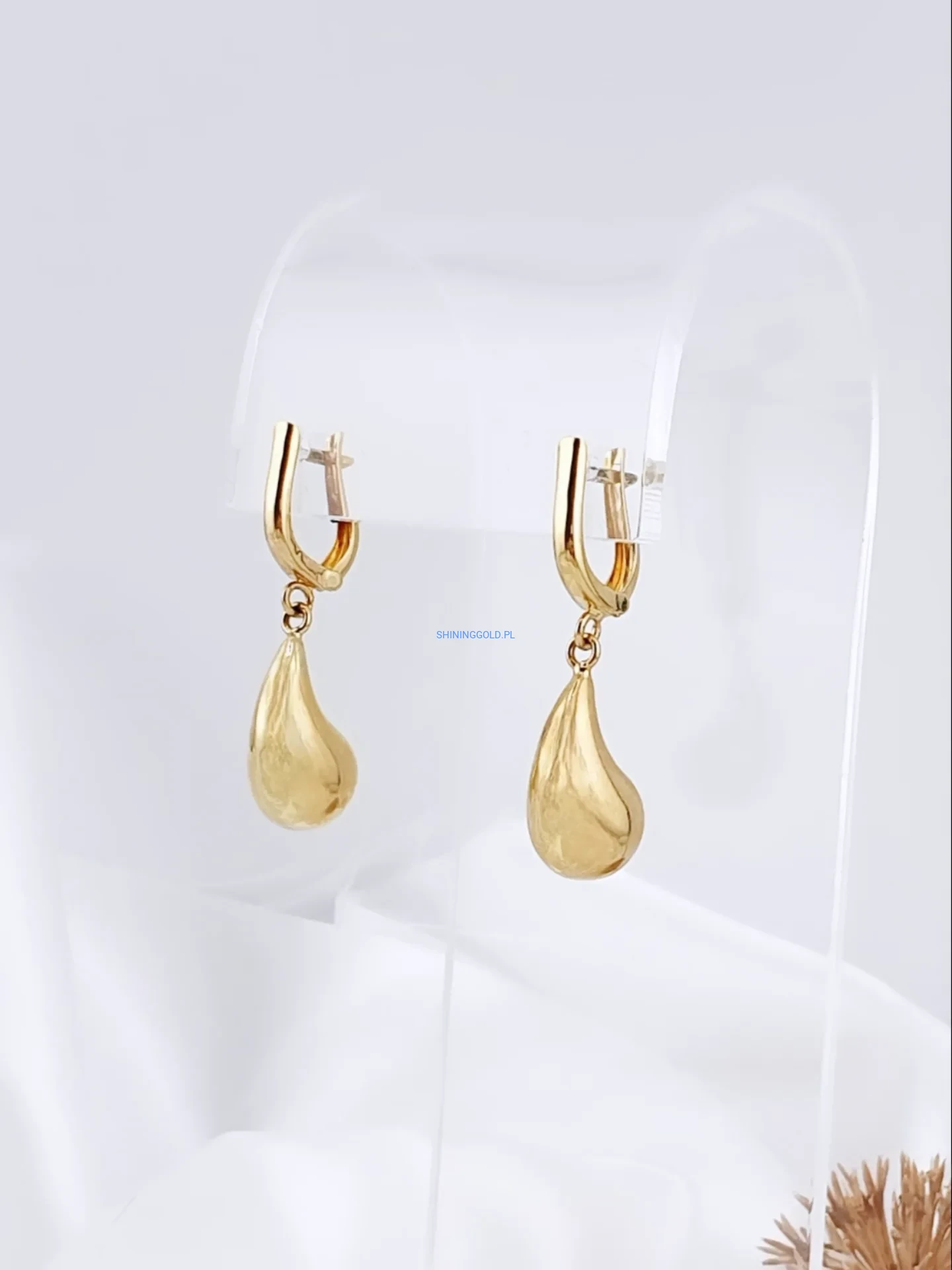 Eleganckie złote kolczyki wiszące wykonane z wysokiej jakości złota próby 585. Klasyczna forma w kształcie subtelnych kropli nadaje biżuterii ponadczasowego charakteru i doskonale komponuje się zarówno z codziennymi, jak i wieczorowymi stylizacjami.