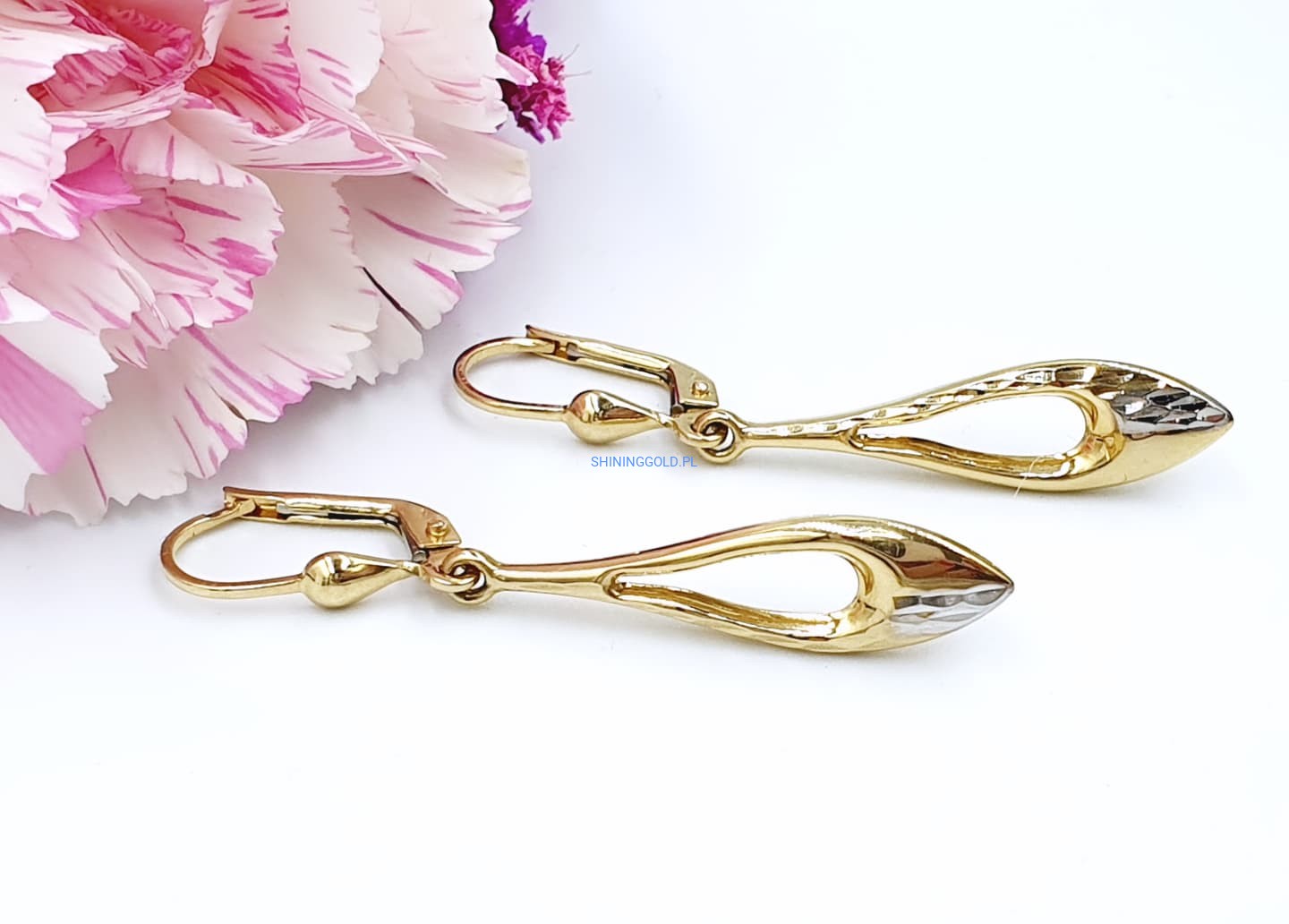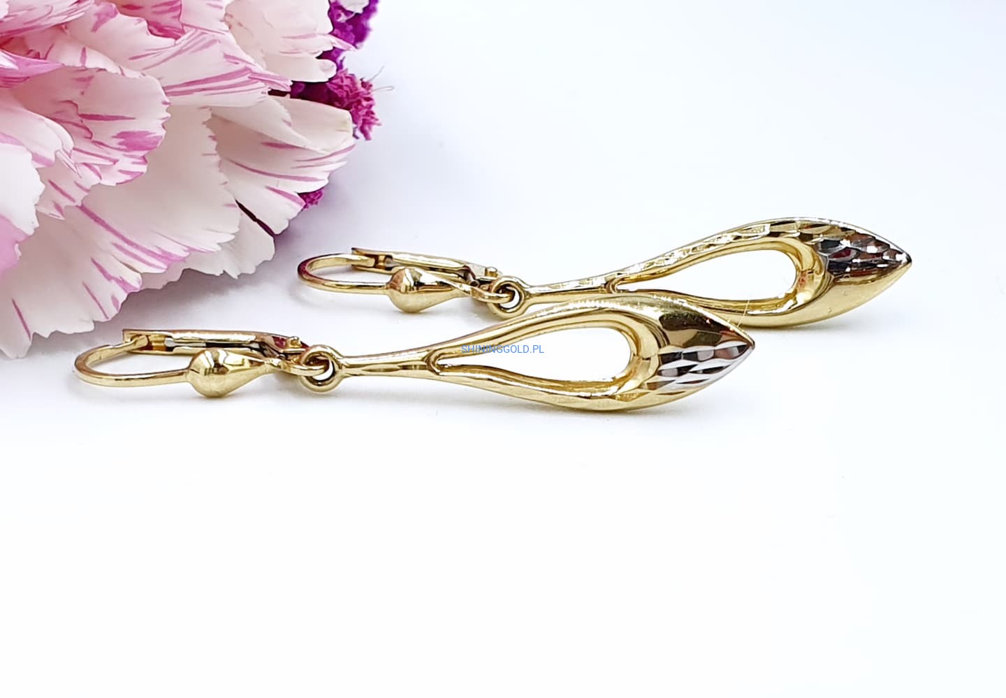 Subtelne i eleganckie złote kolczyki w kształcie łezek, wykonane z wysokiej jakości złota próby 585.