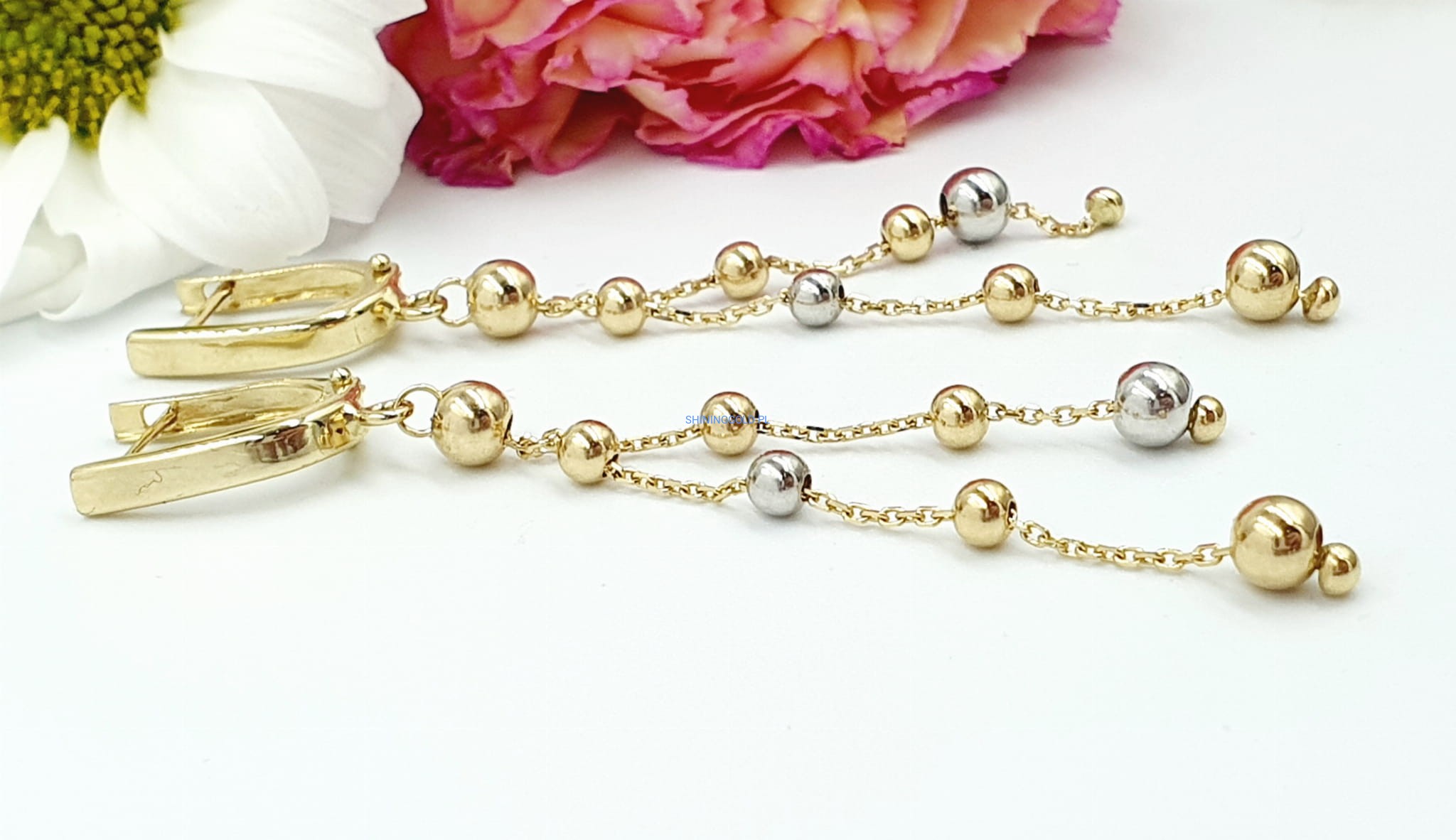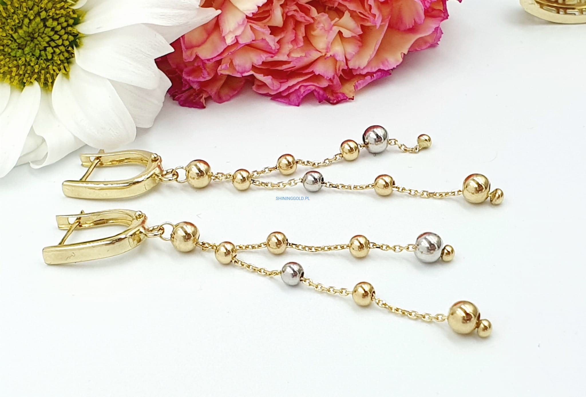 Eleganckie i stylowe kolczyki wykonane z wysokiej jakości złota próby 585. Ich delikatny design z subtelnymi kuleczkami dodaje lekkości i wyjątkowego blasku. Doskonałe zarówno na wyjątkowe okazje, jak i do codziennych stylizacji.