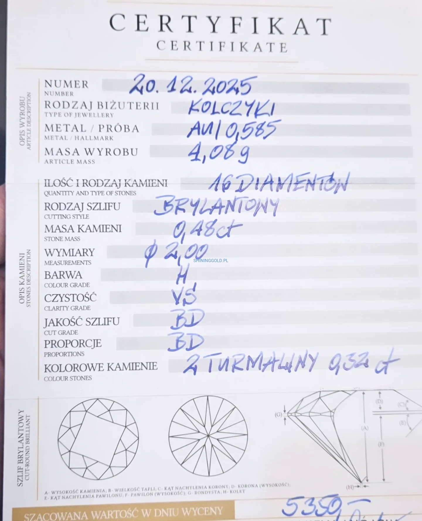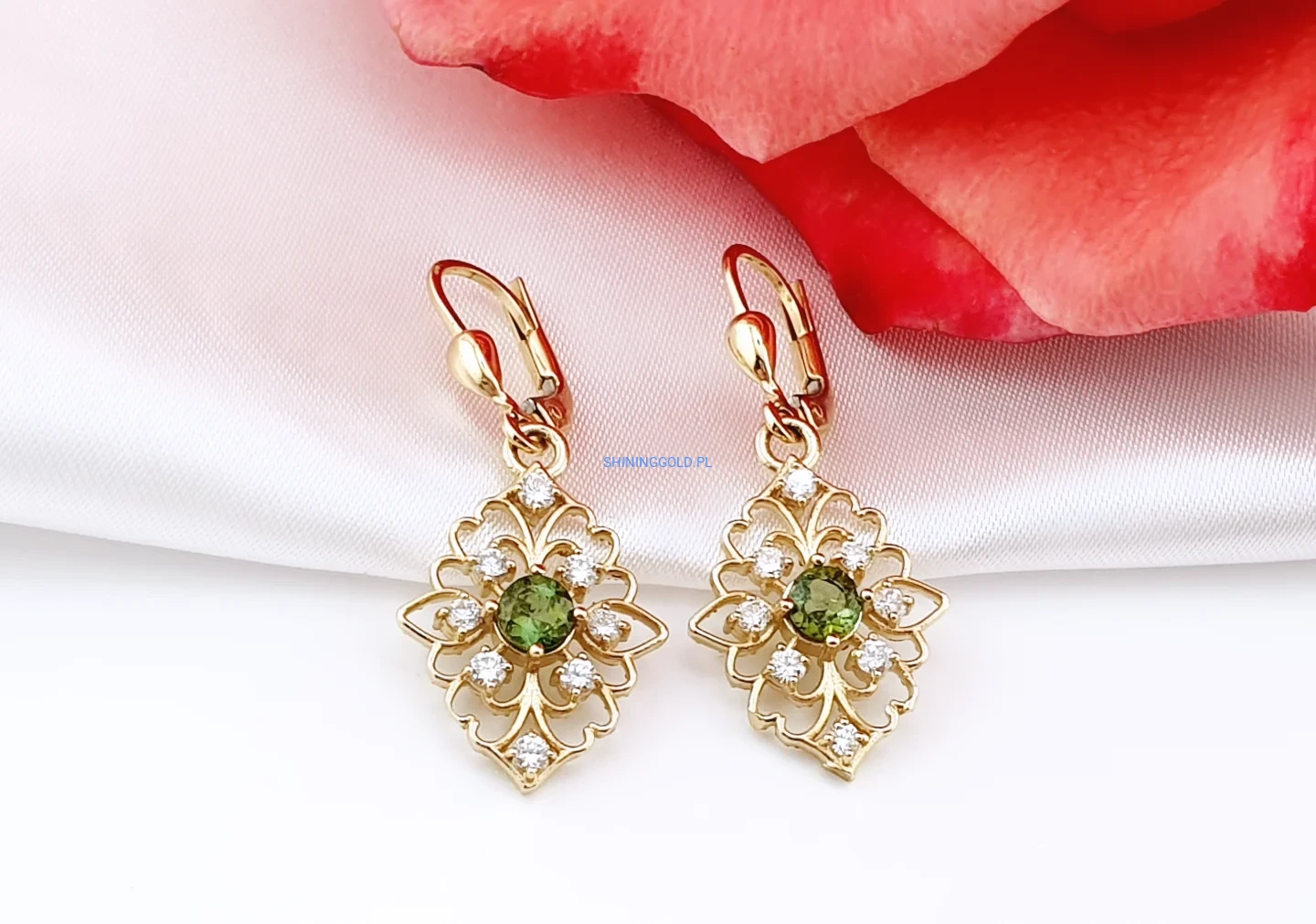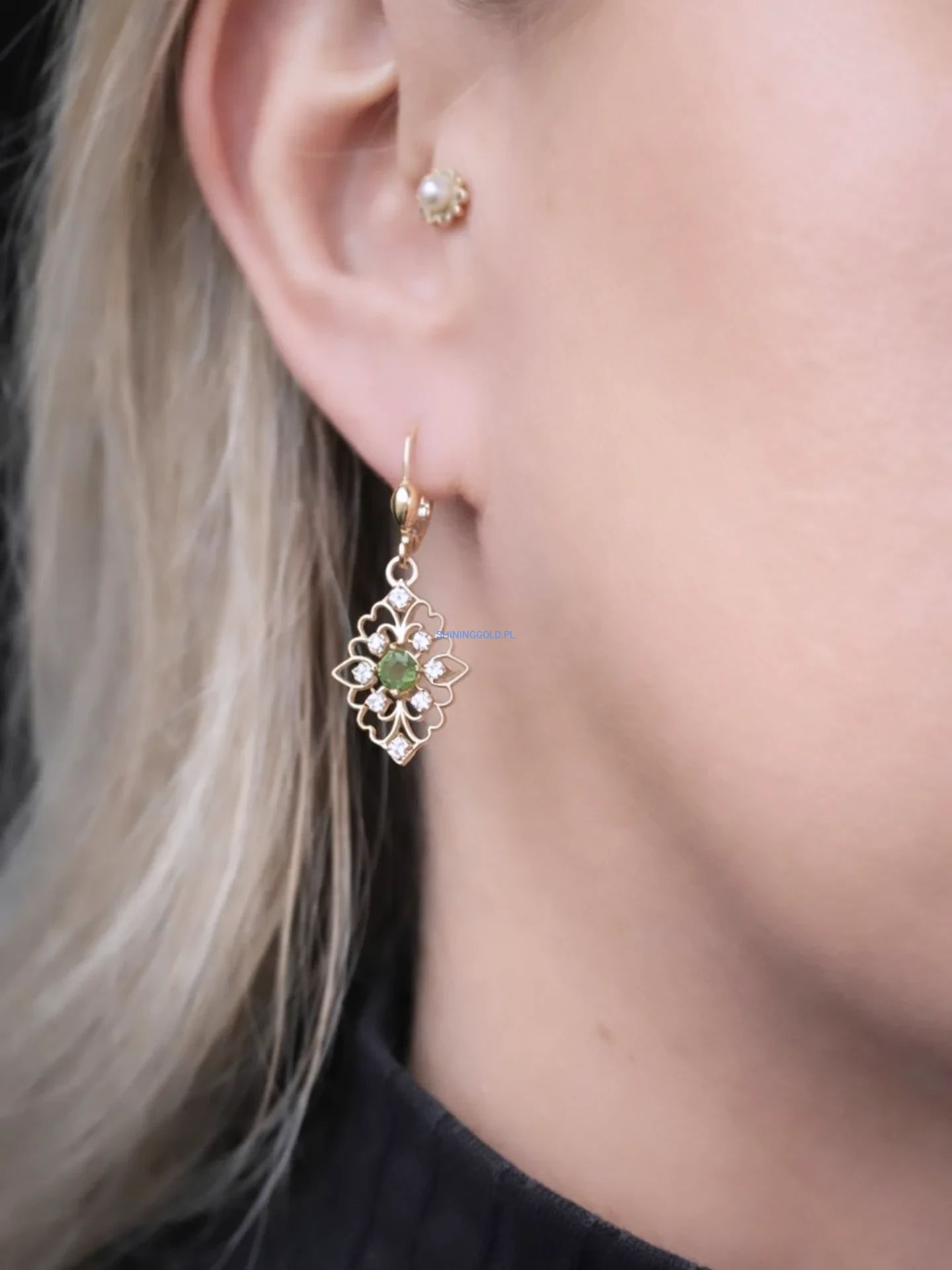 Złote kolczyki z Diamentami i Turmalinami (1055ws)