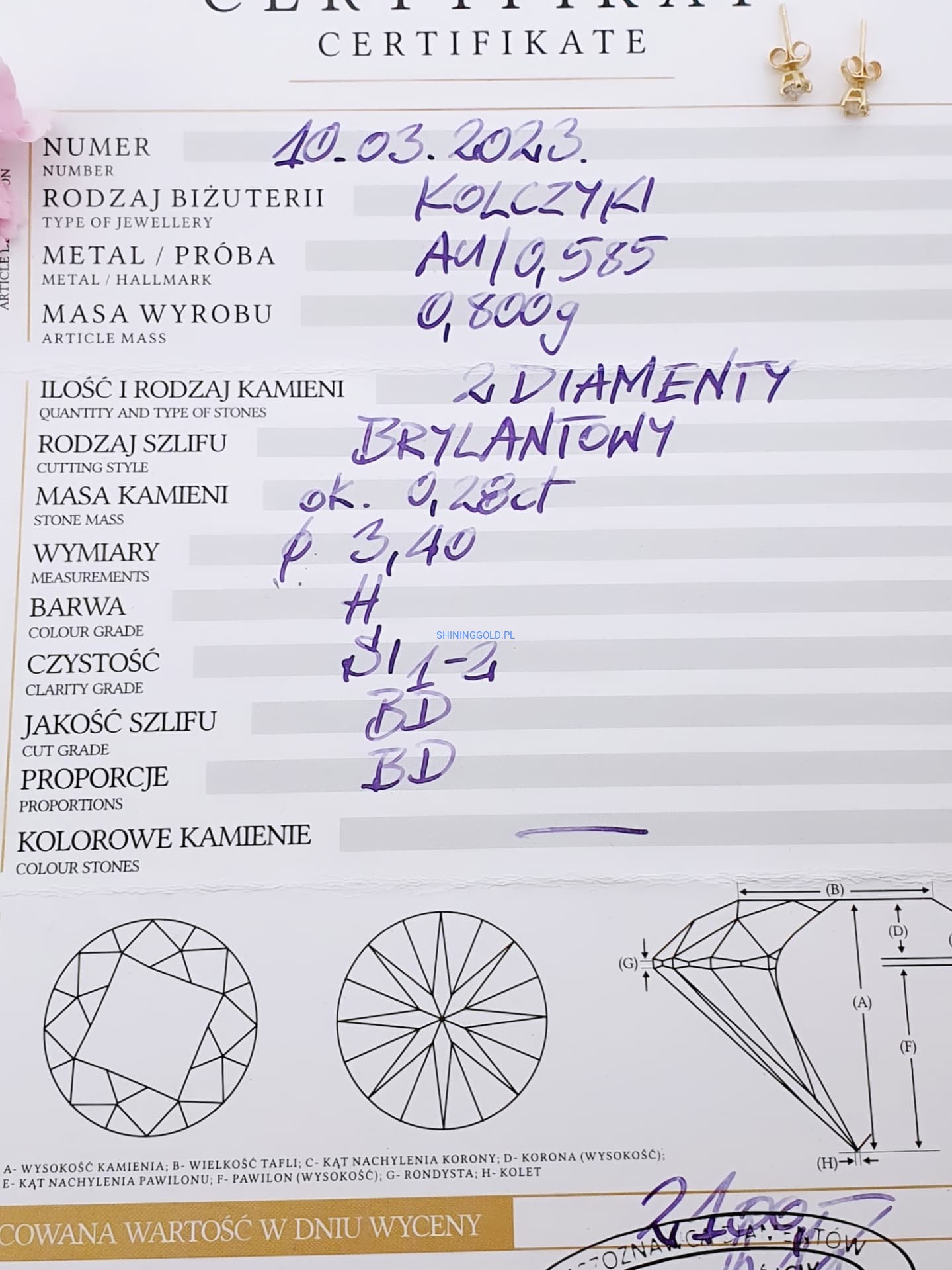 Złote kolczyki z diamentami (1024WS)