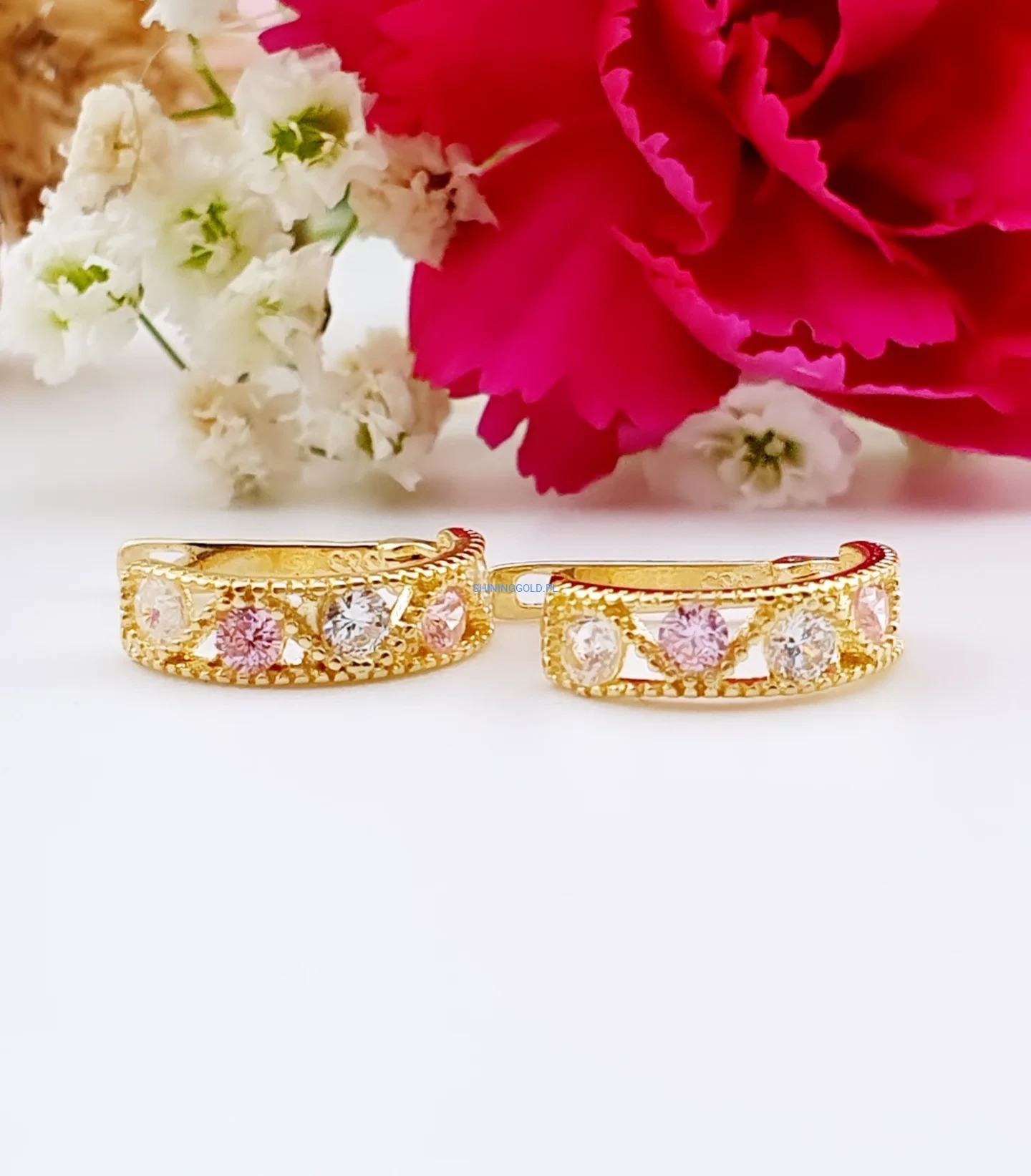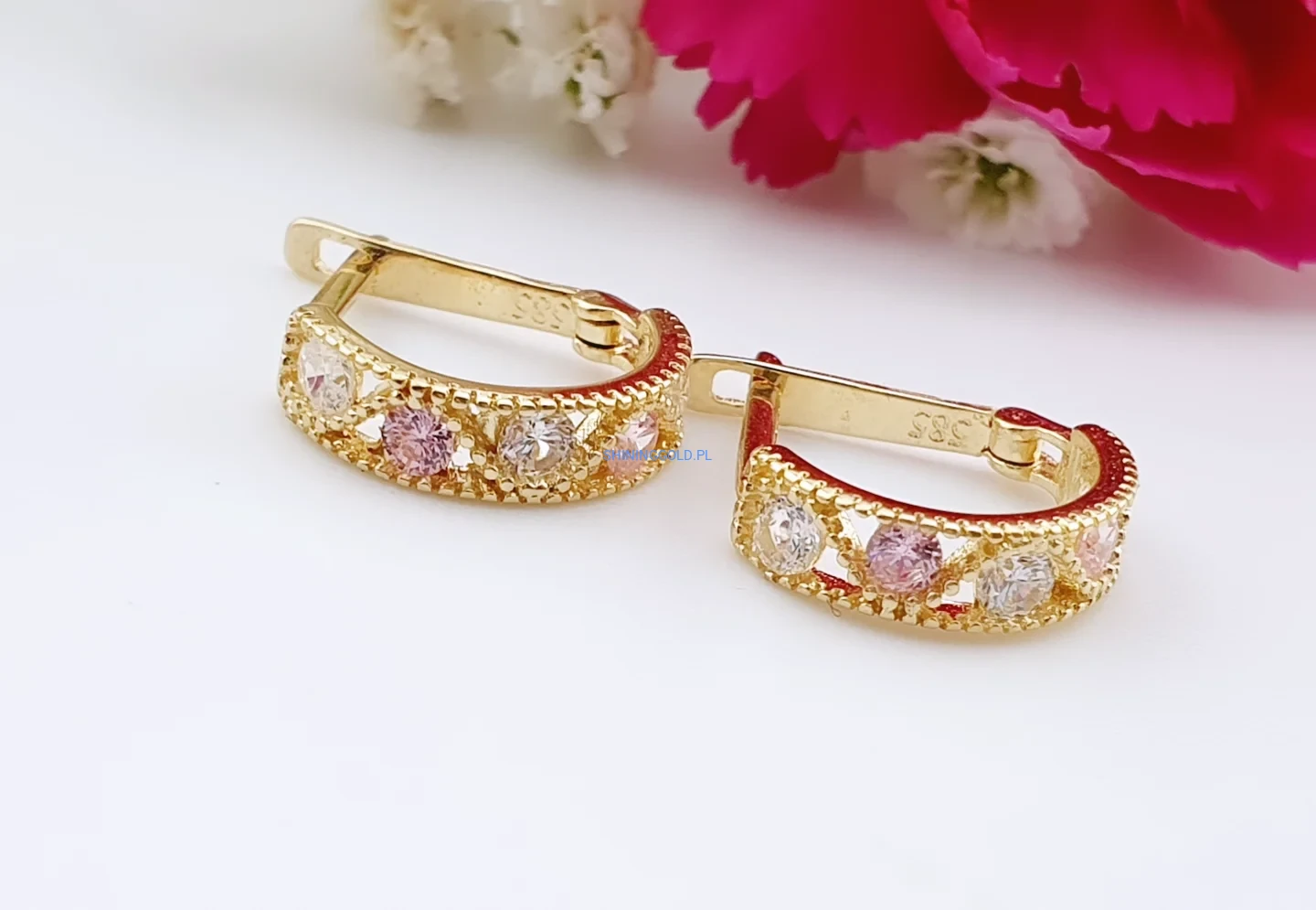 Złote kolczyki z kolorowymi cyrkoniami (7049WS)
