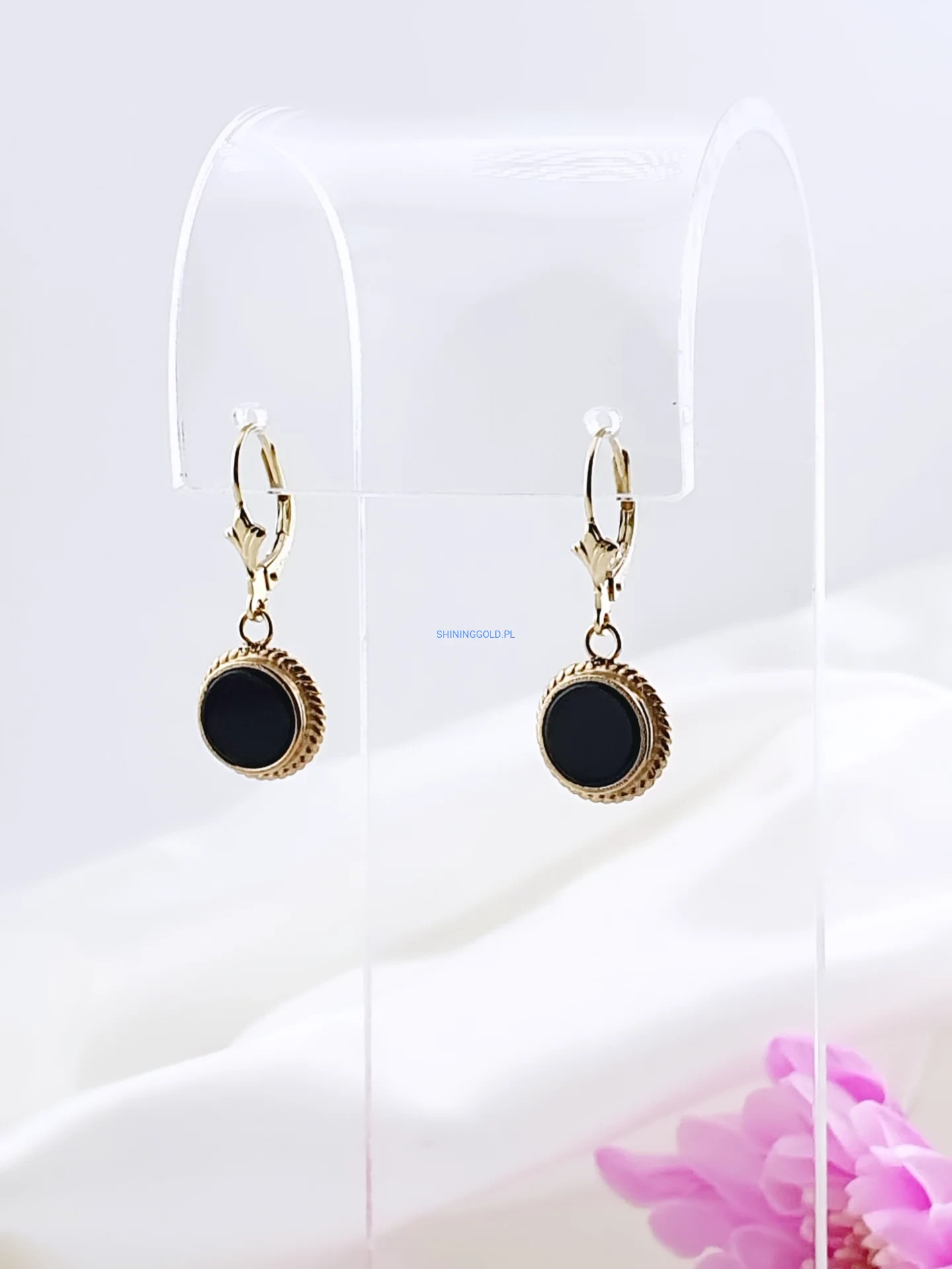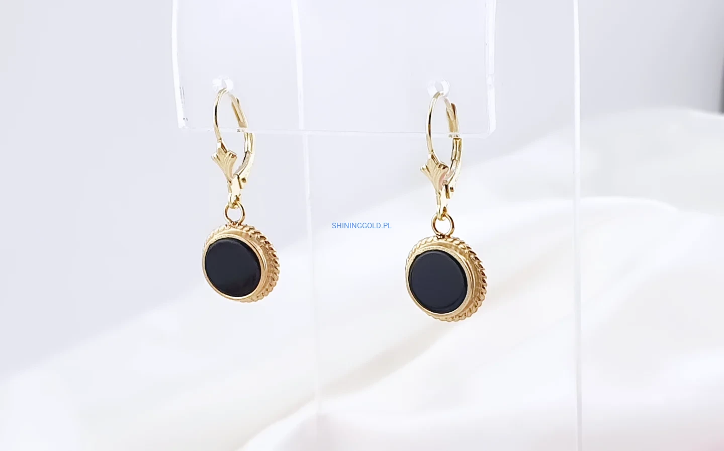 Złote kolczyki z onyksem (716P)