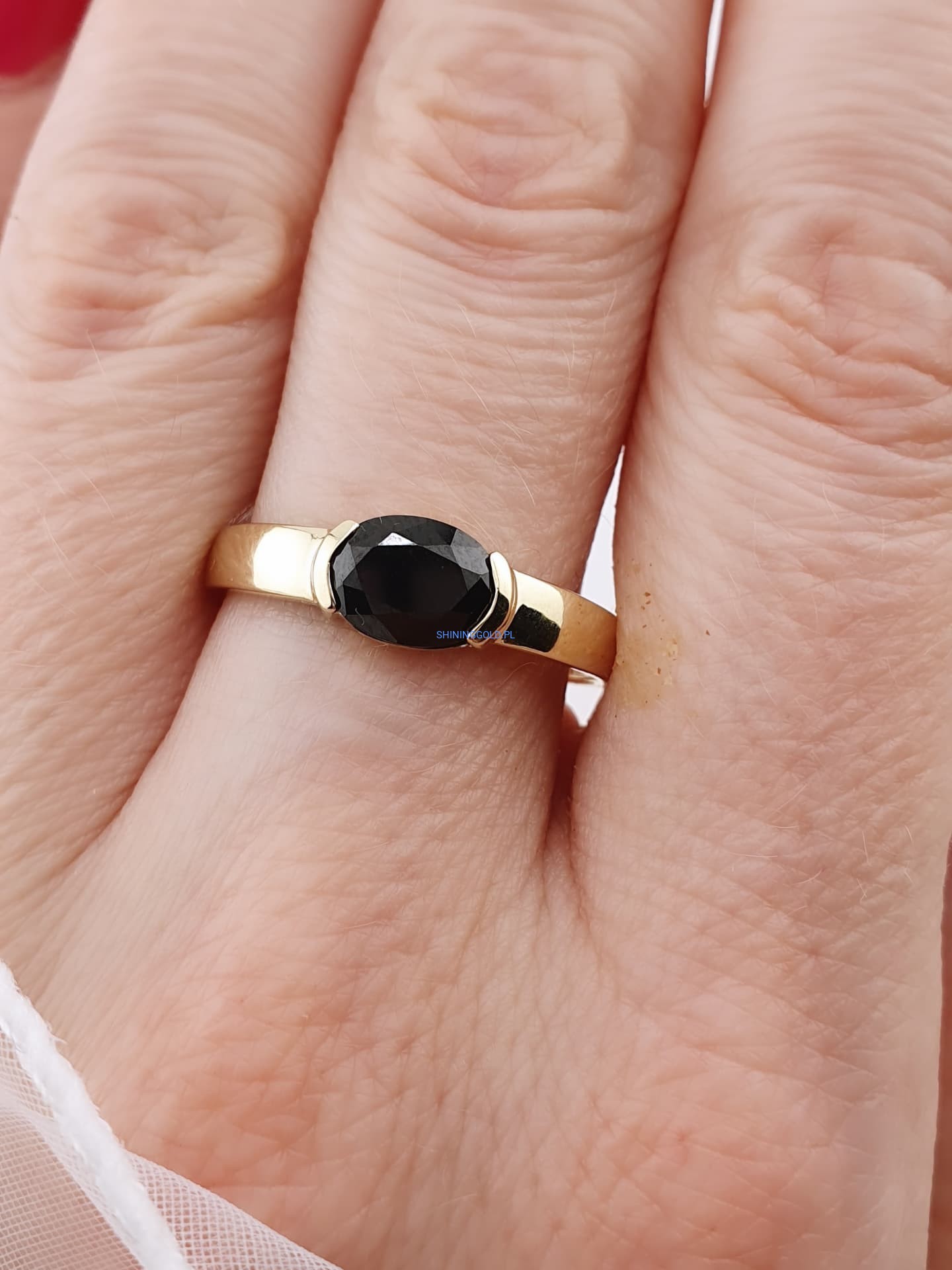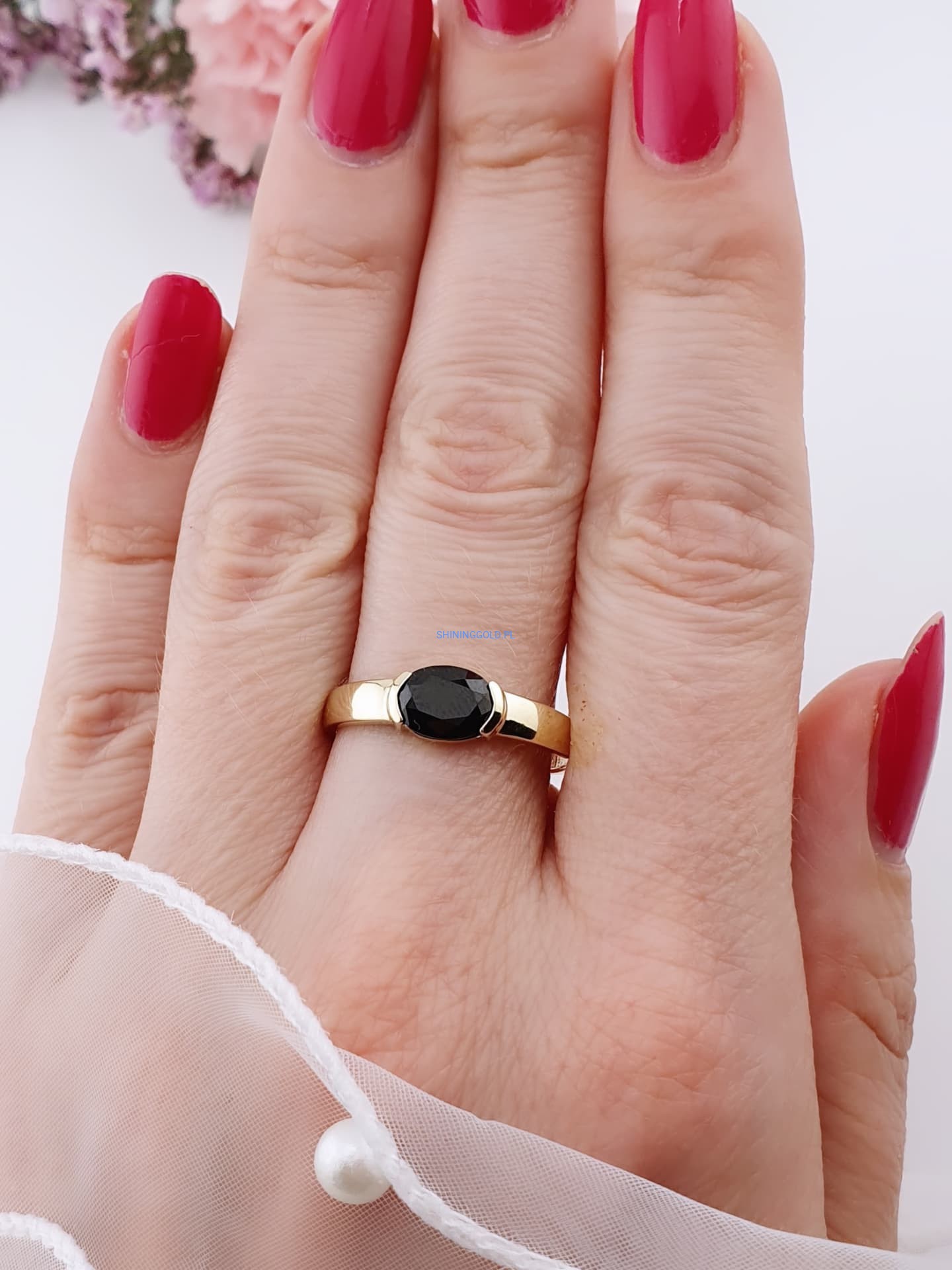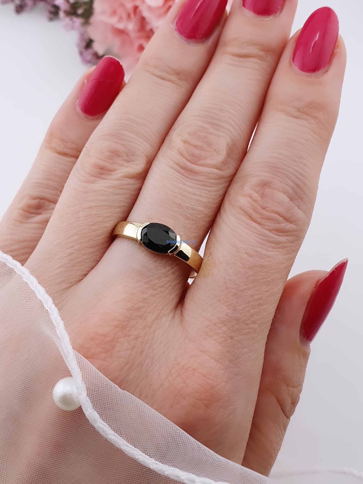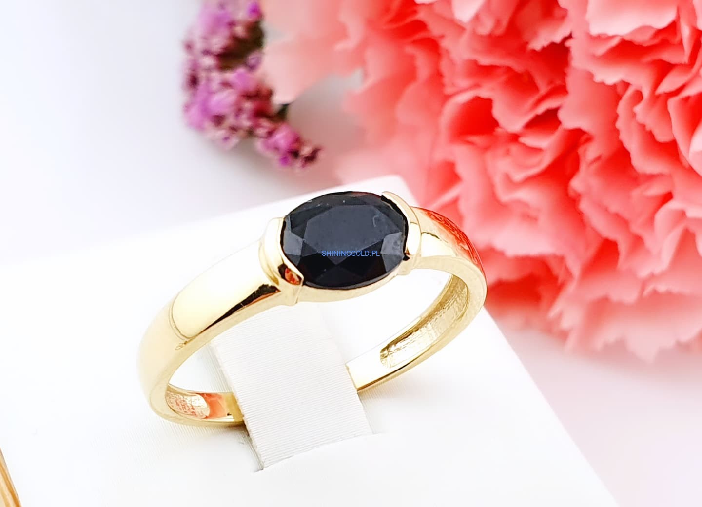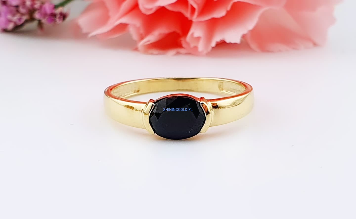 Zakończenie: Złoty pierścionek z onyksem to biżuteria, która łączy w sobie siłę natury i elegancję. Idealny wybór na prezent lub jako doskonały element Twojej kolekcji. Zamów już dziś i poczuj wyjątkowy charakter tej pięknej biżuterii!