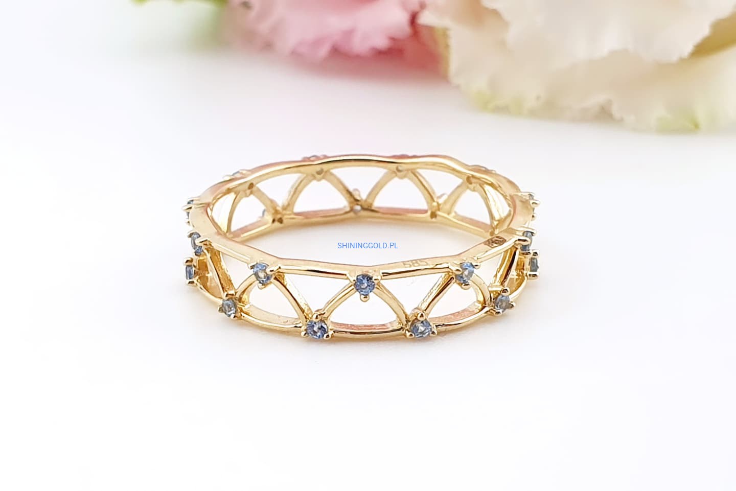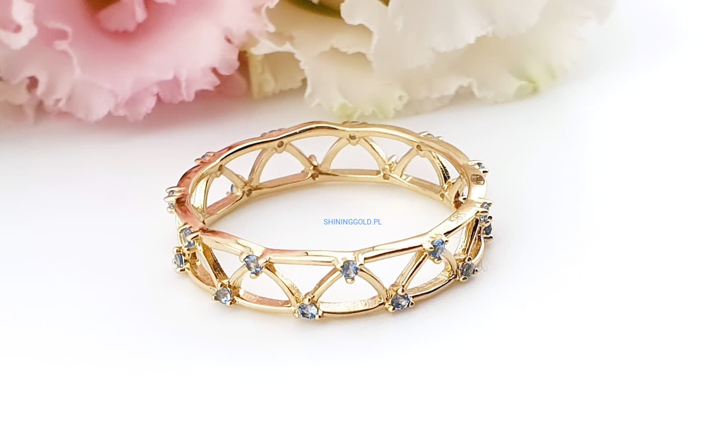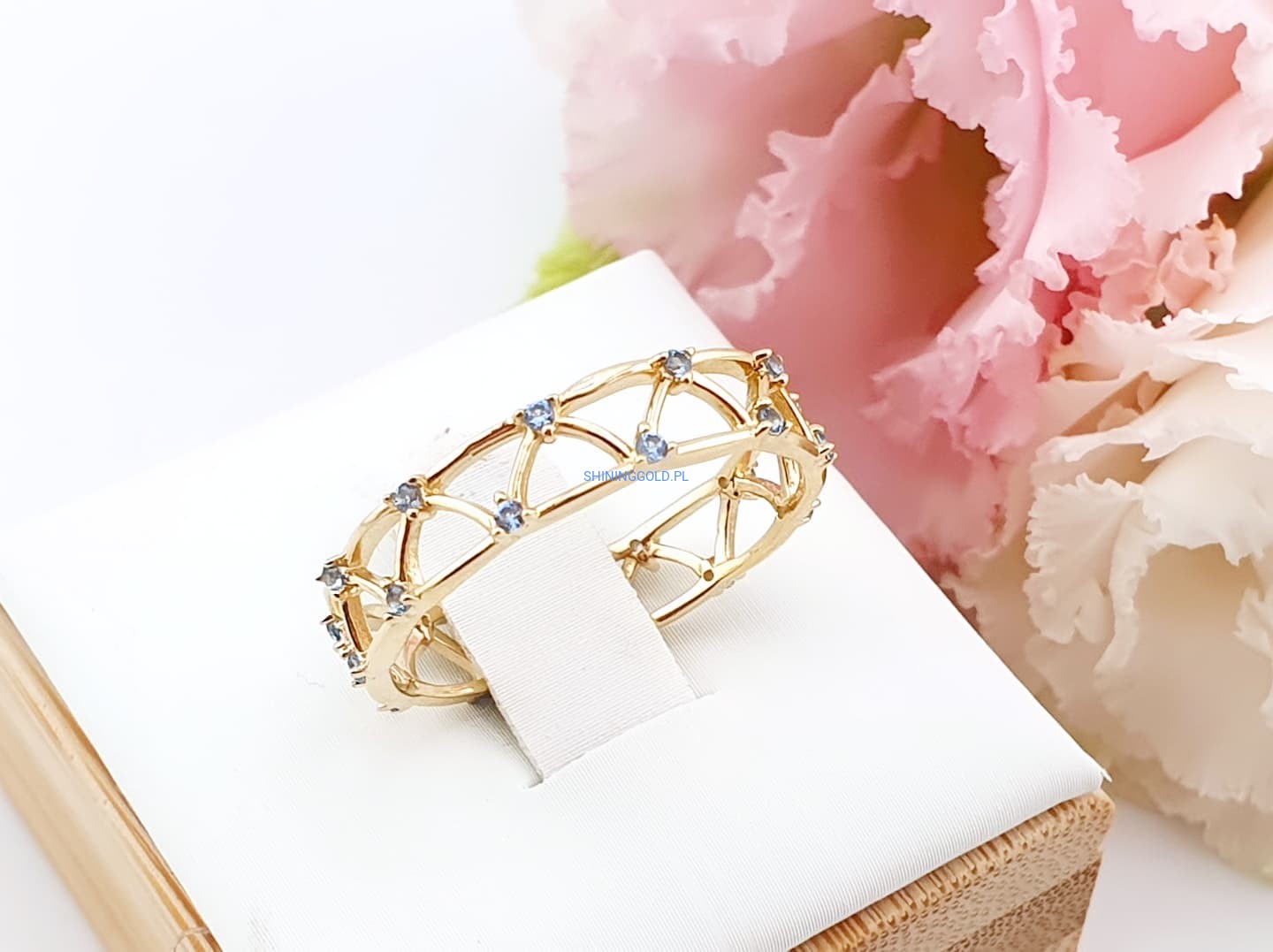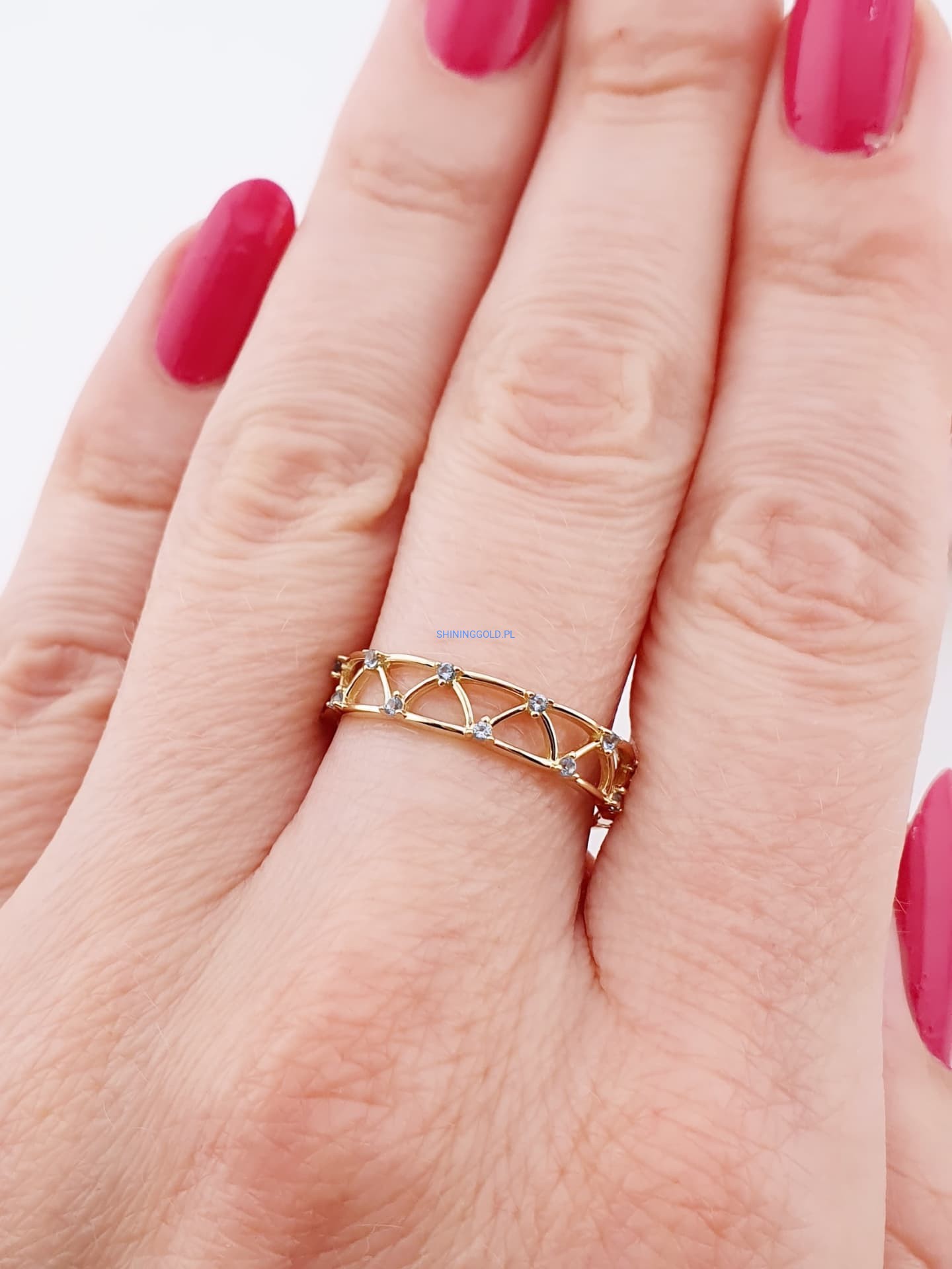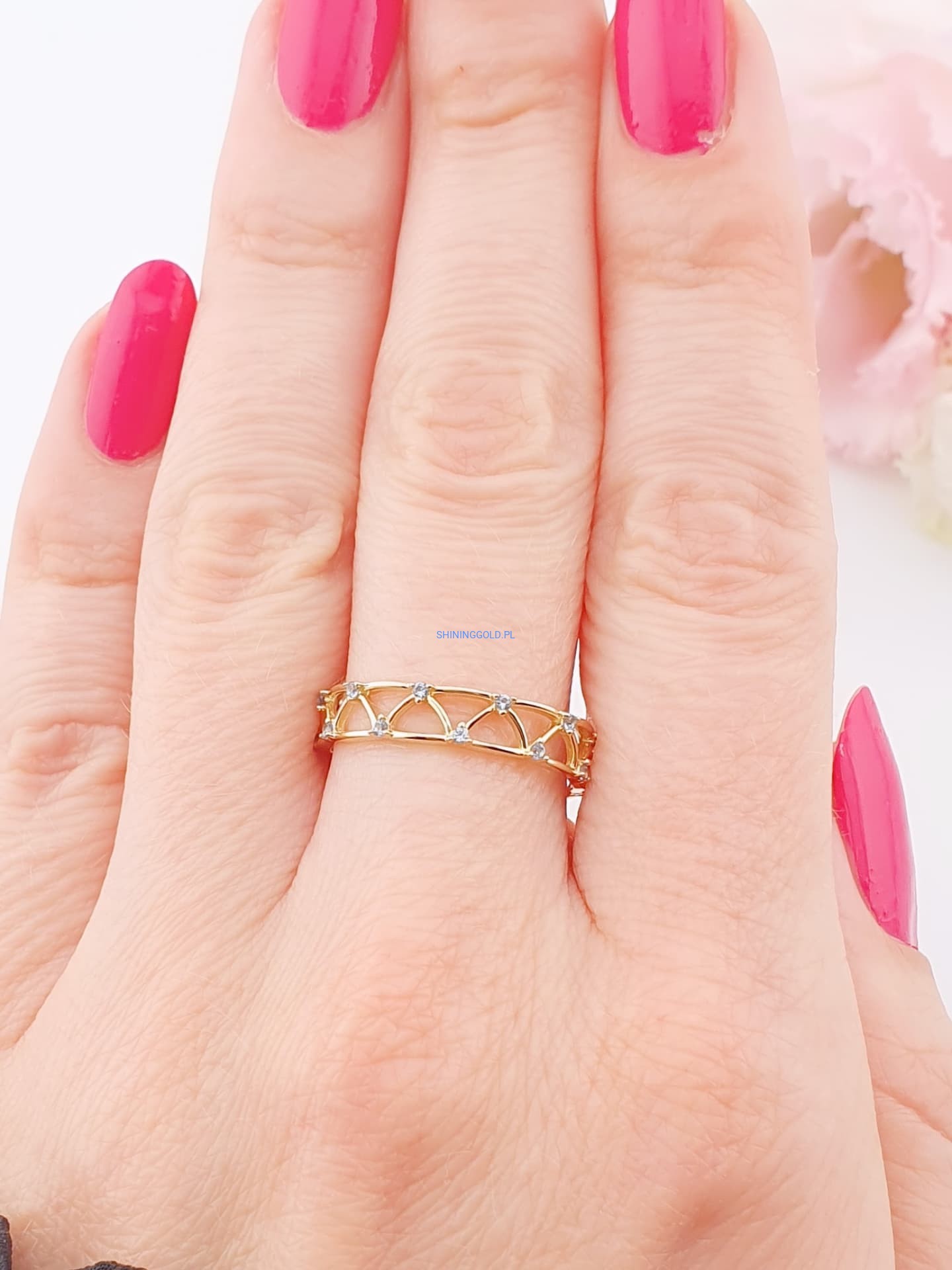 Złoty, nowy pierścionek ażurowy z cyrkoniami (055.ws)