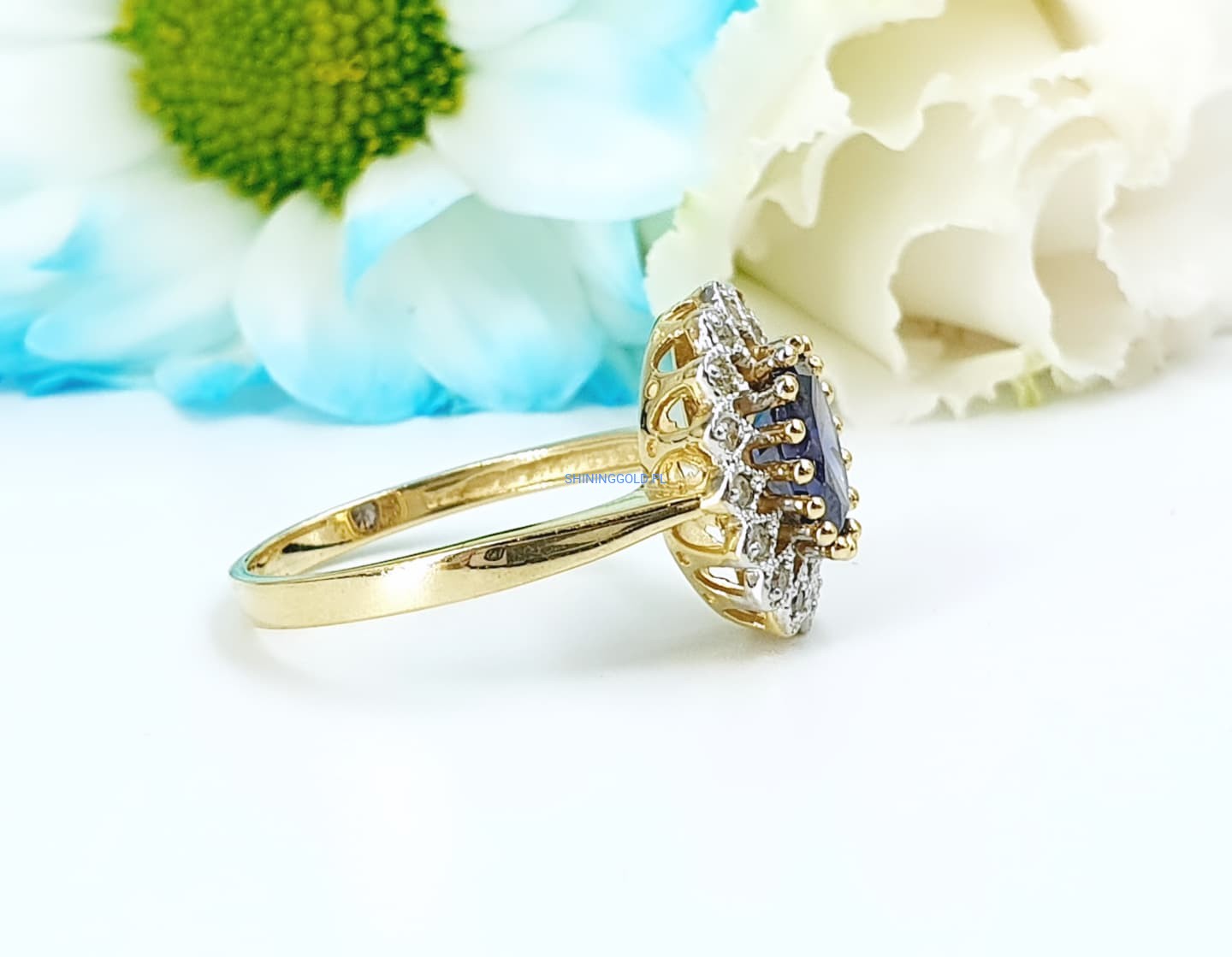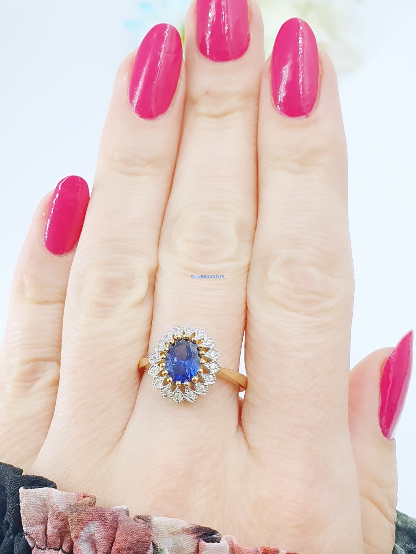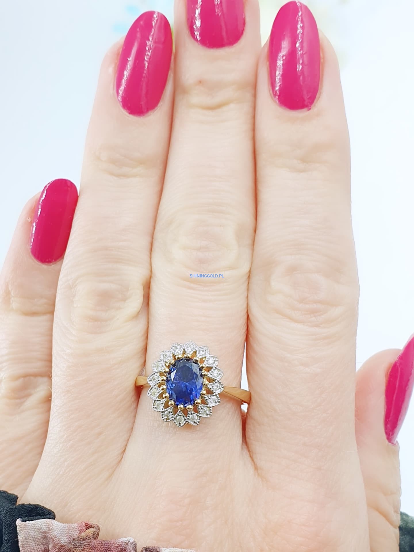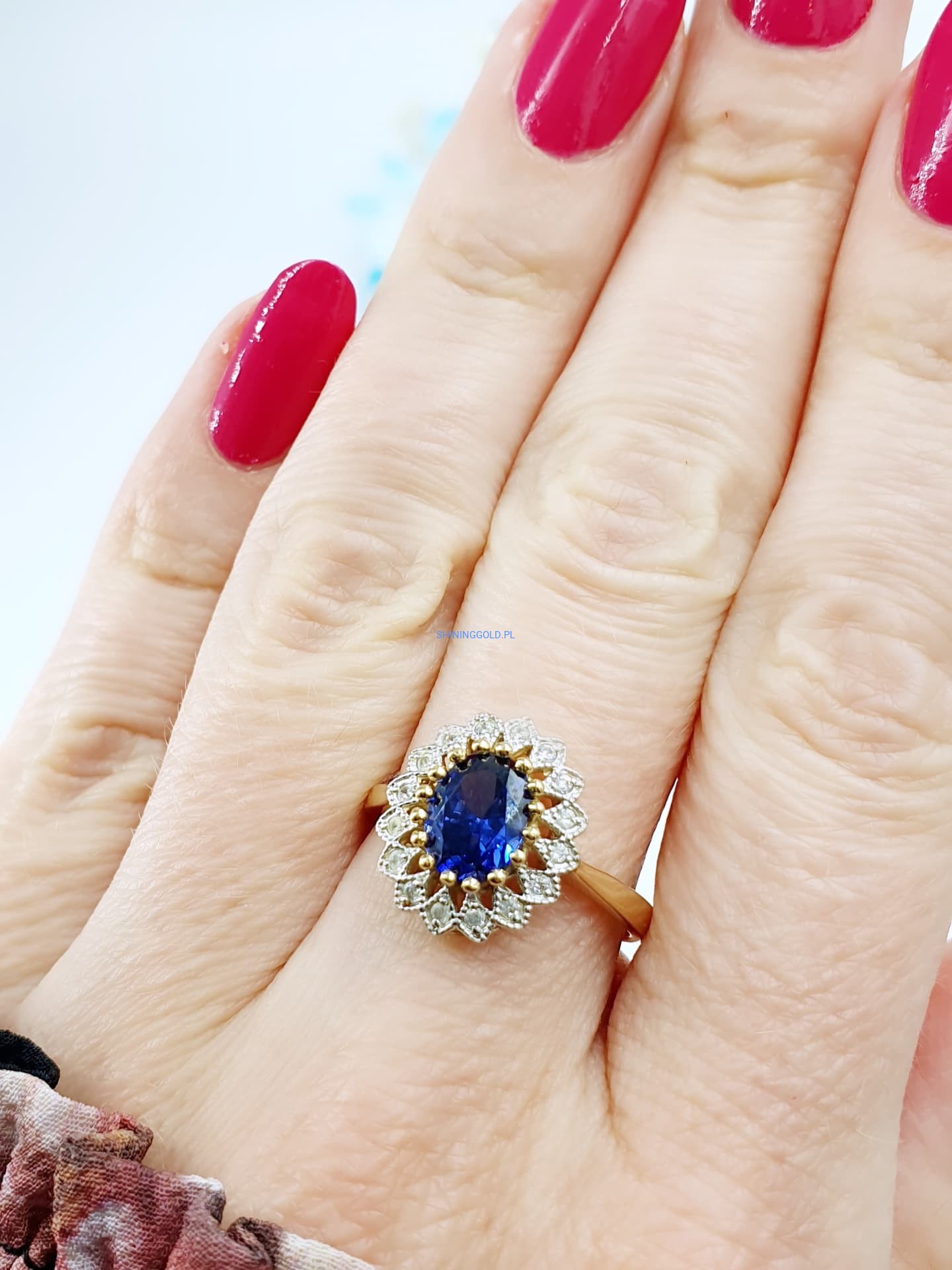 Elegancki i kobiecy pierścionek wykonany z wysokiej jakości złota próby 585. Jego centralnym punktem jest stylowy motyw markizy ozdobiony błyszczącymi cyrkoniami, które pięknie odbijają światło i dodają całości luksusowego charakteru.