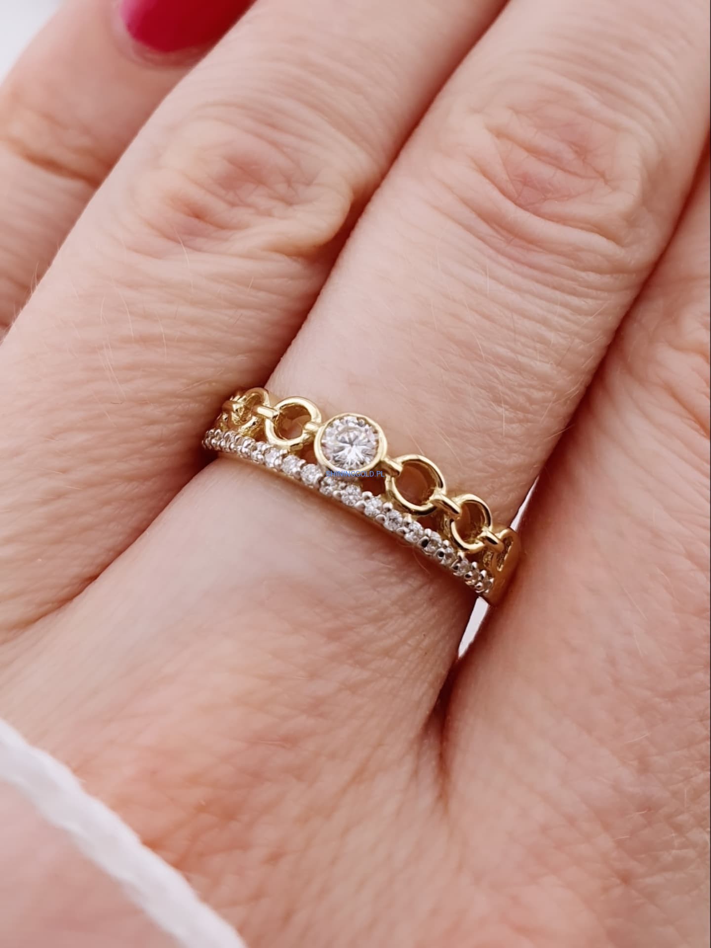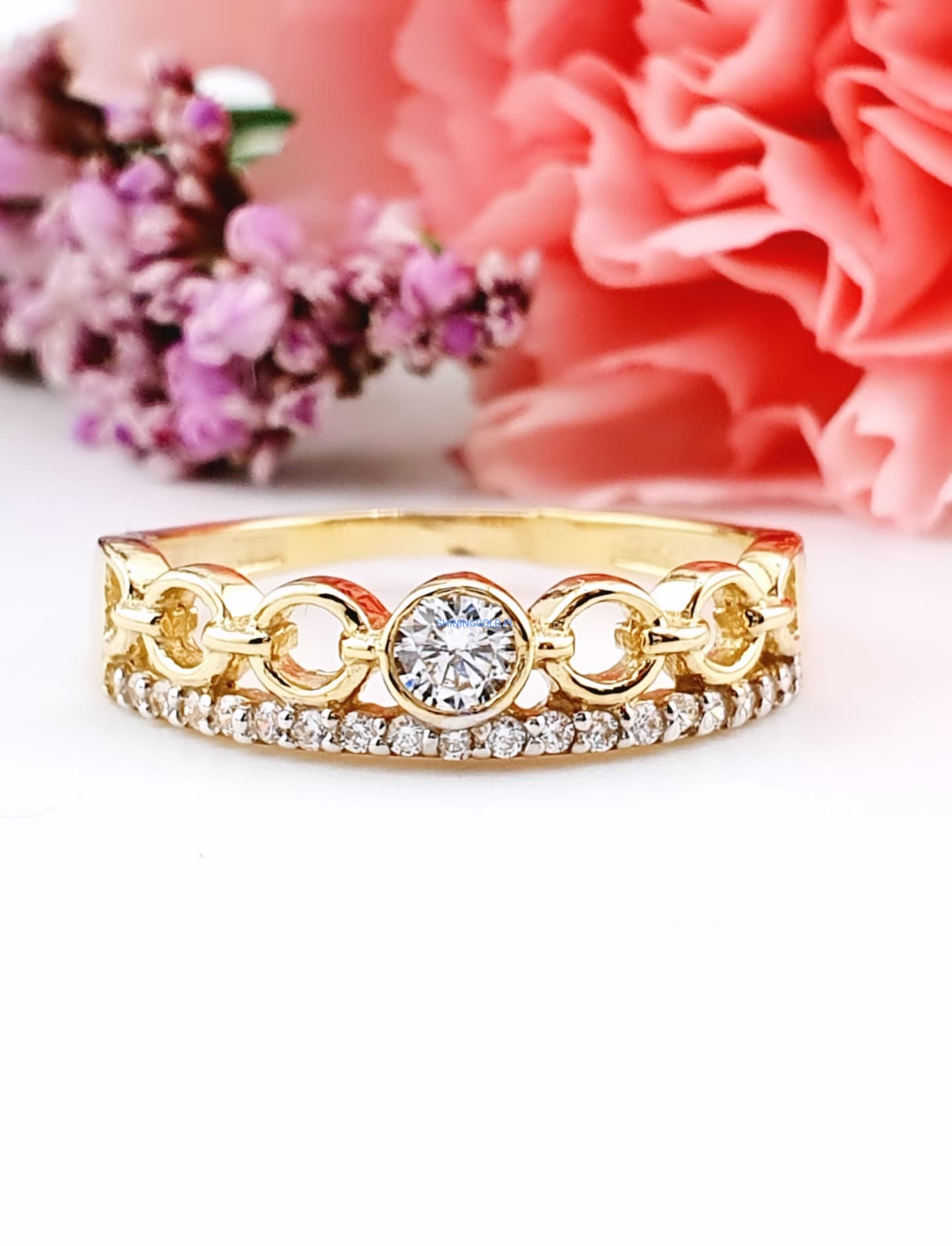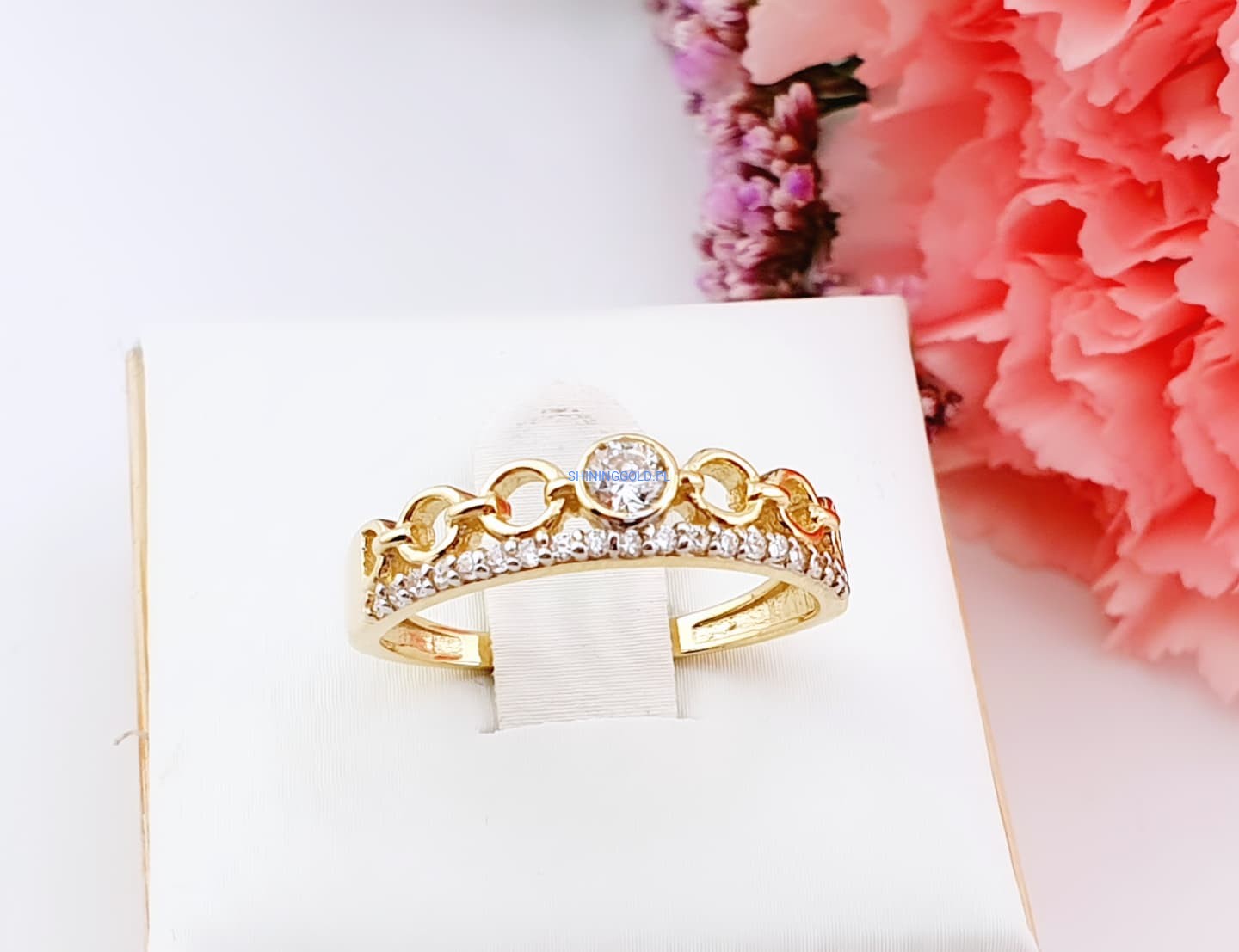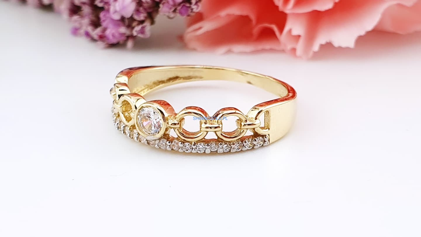 Złoty, nowy pierścionek z cyrkoniami (007WS)