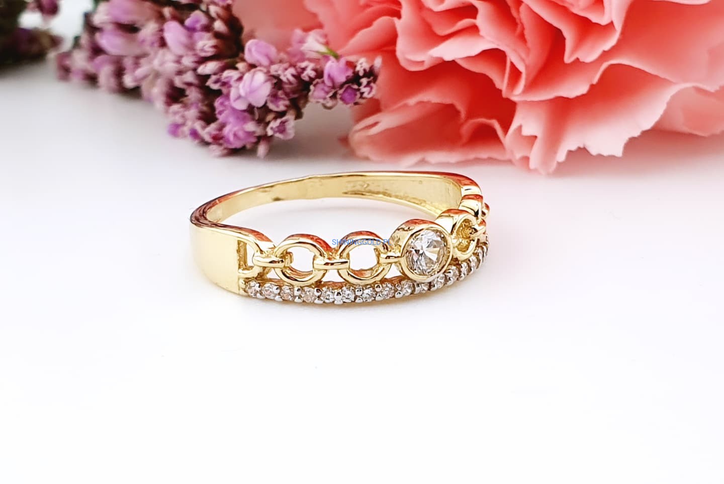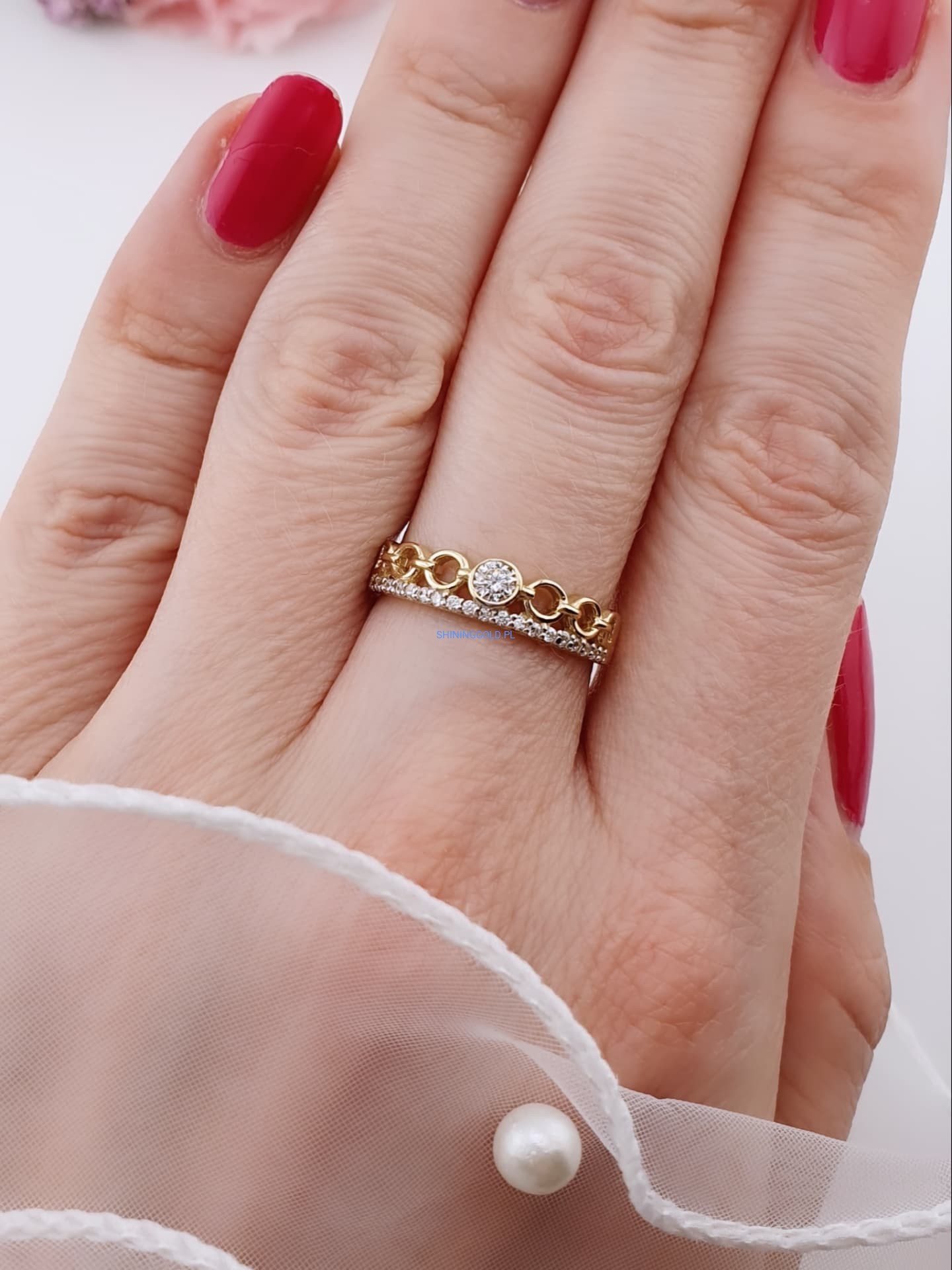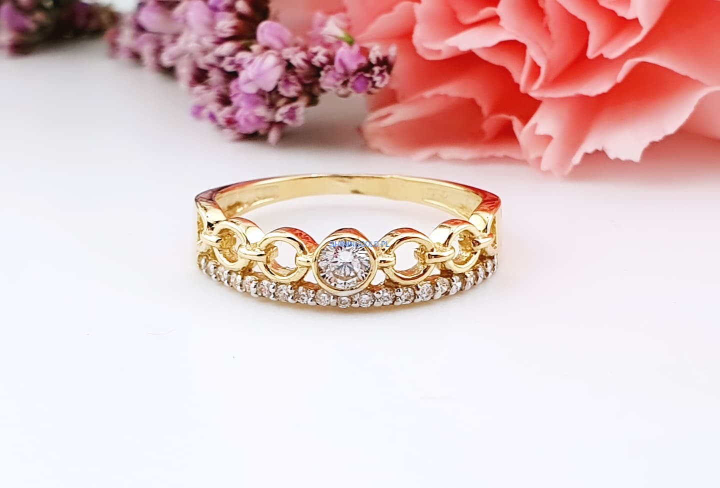 Złoty, nowy pierścionek z cyrkoniami (007WS)