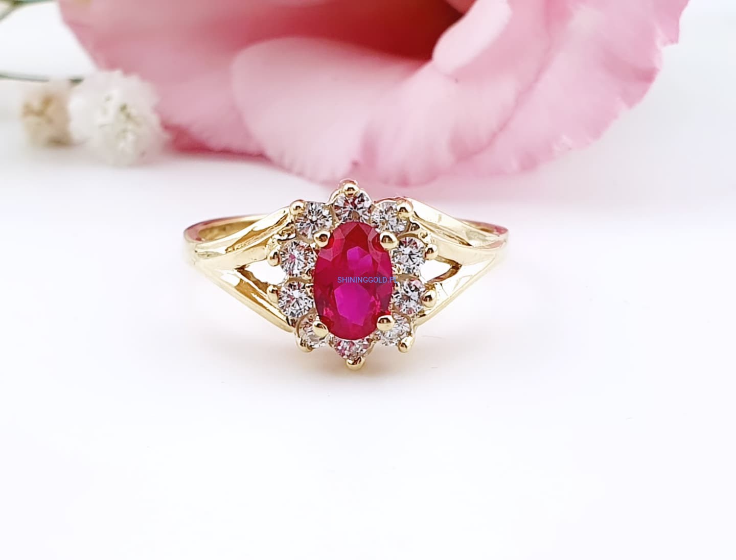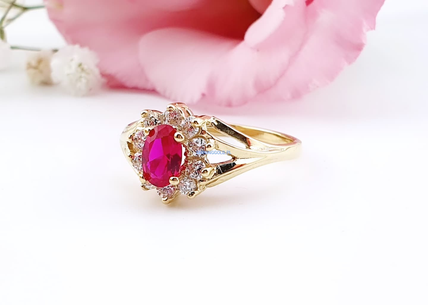 Złoty, nowy pierścionek z czerwonym kamieniem (075.WS)