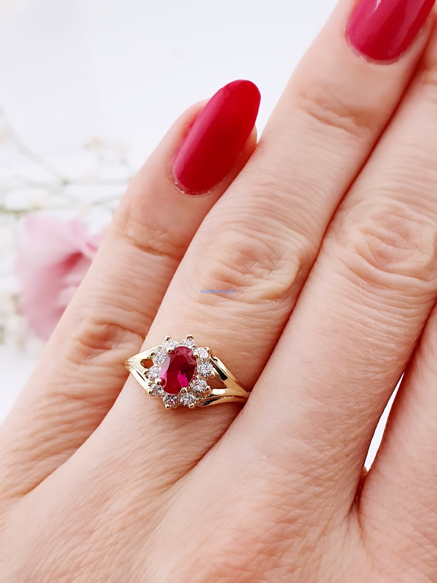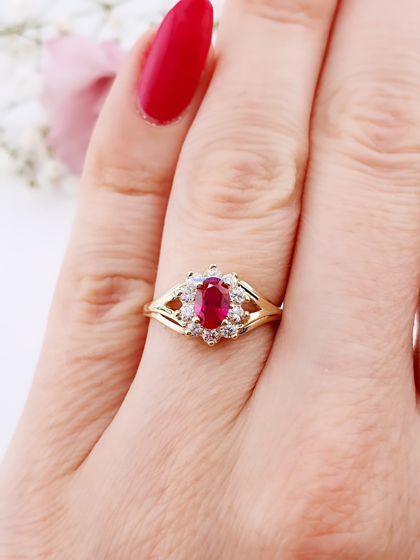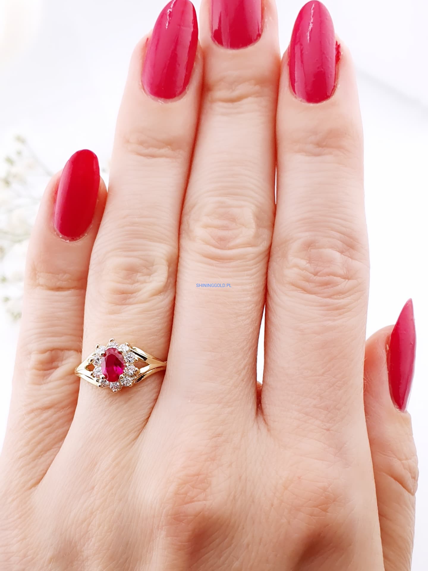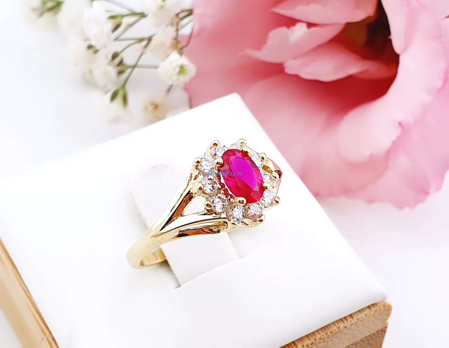 Złoty, nowy pierścionek z czerwonym kamieniem | Próba 375