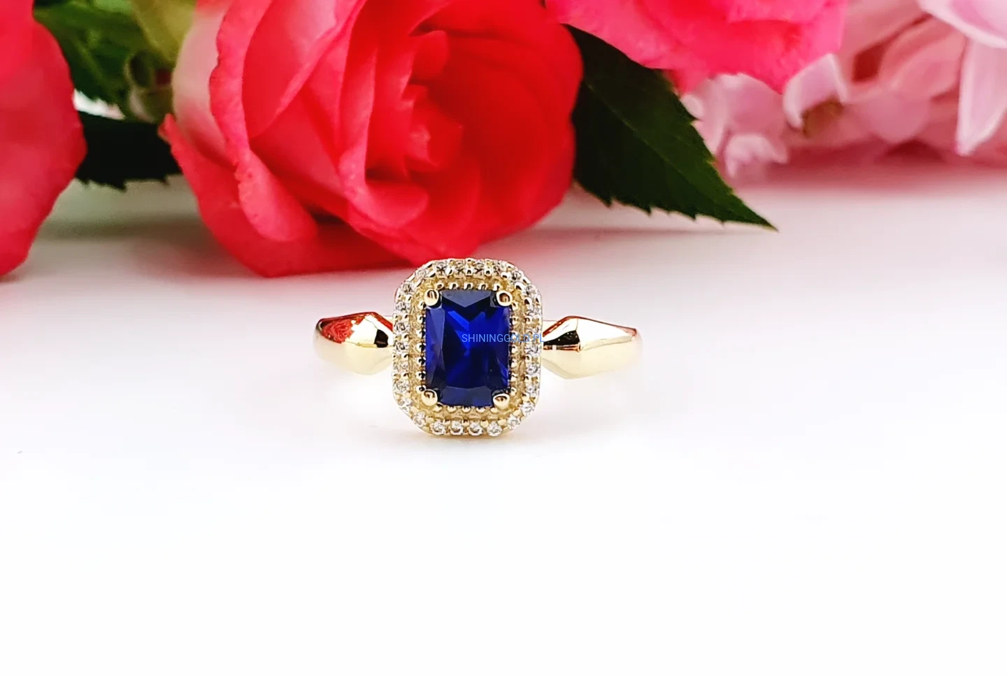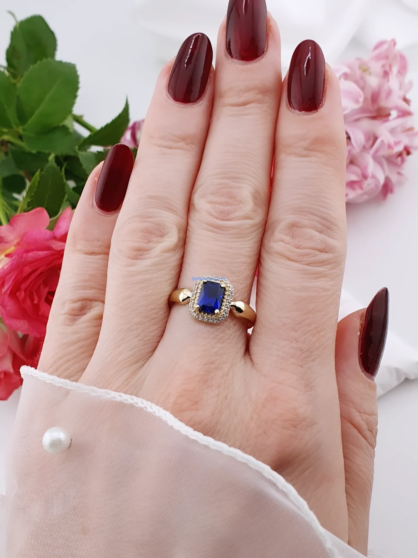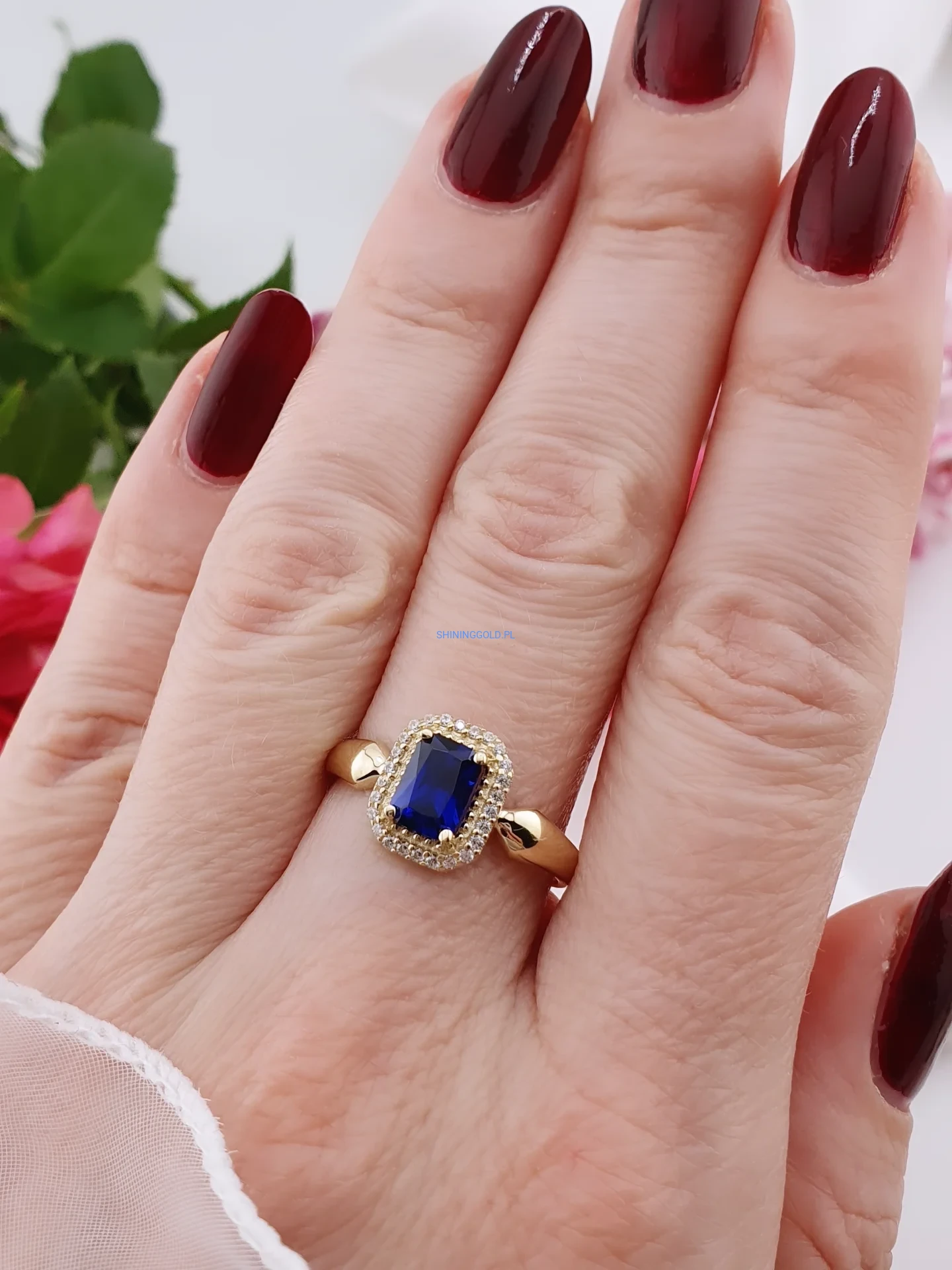 Złoty pierścionek 585 z niebieskim kamieniem – elegancja i blask