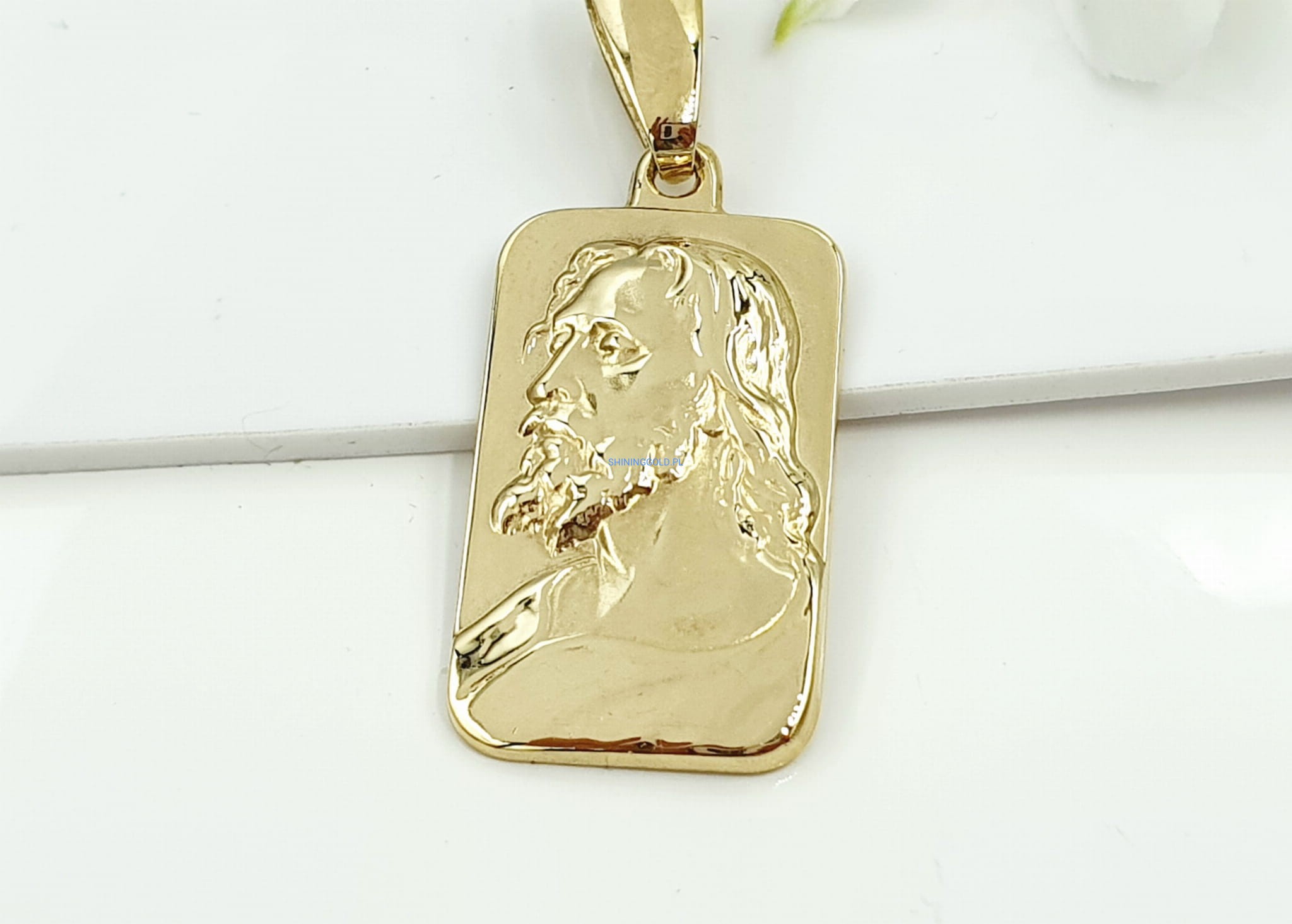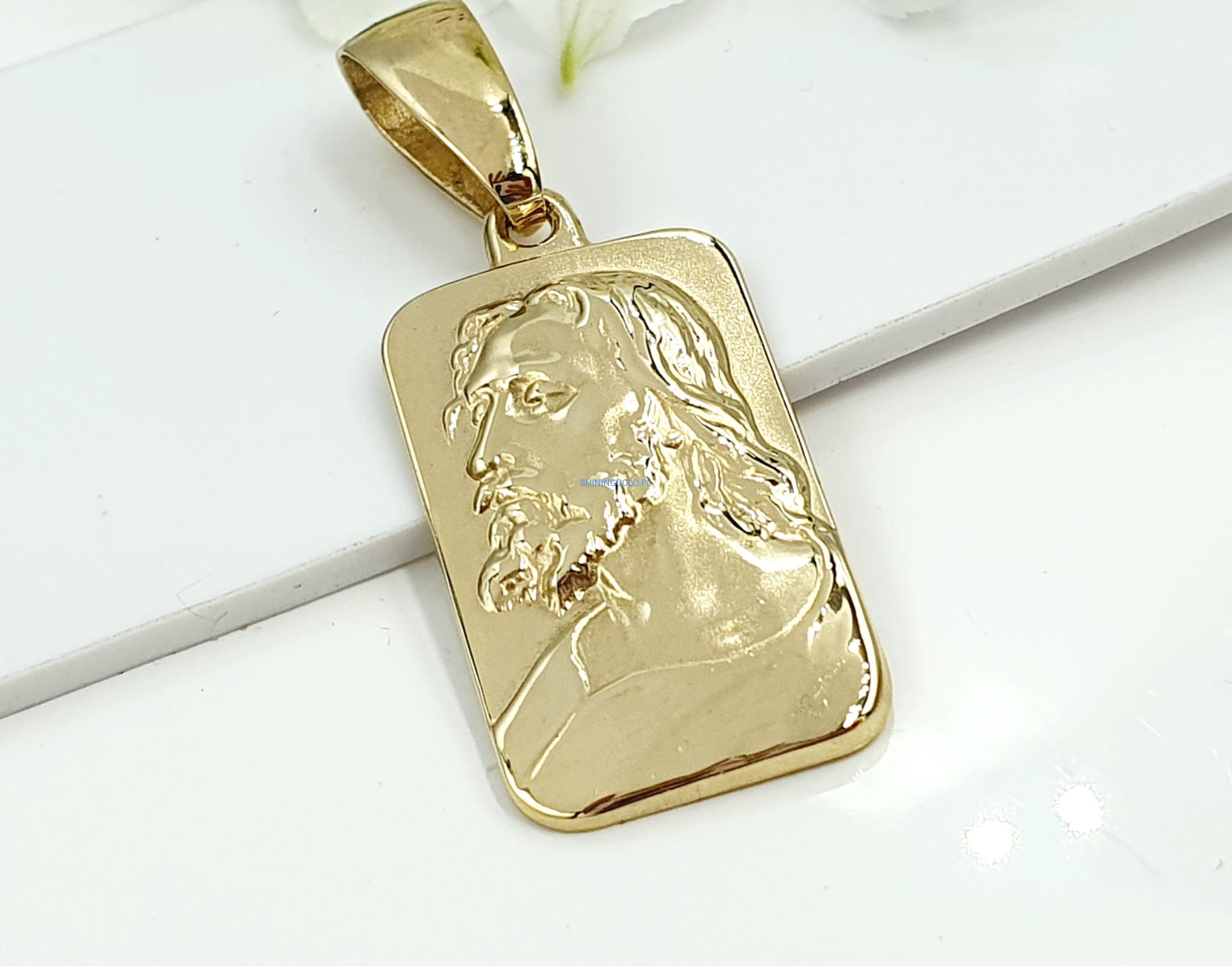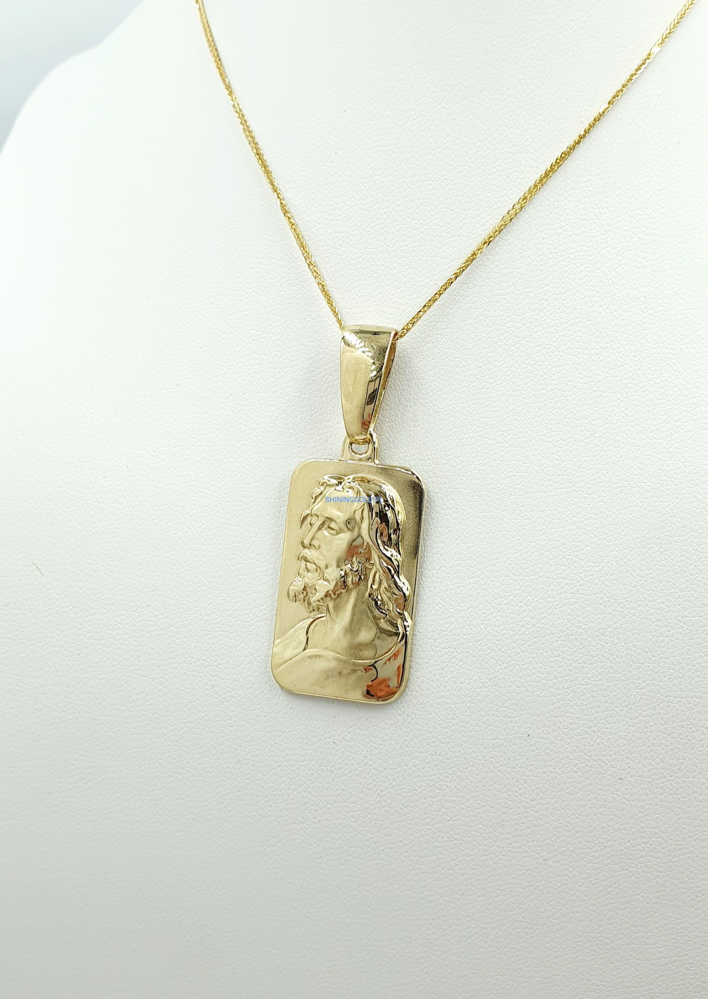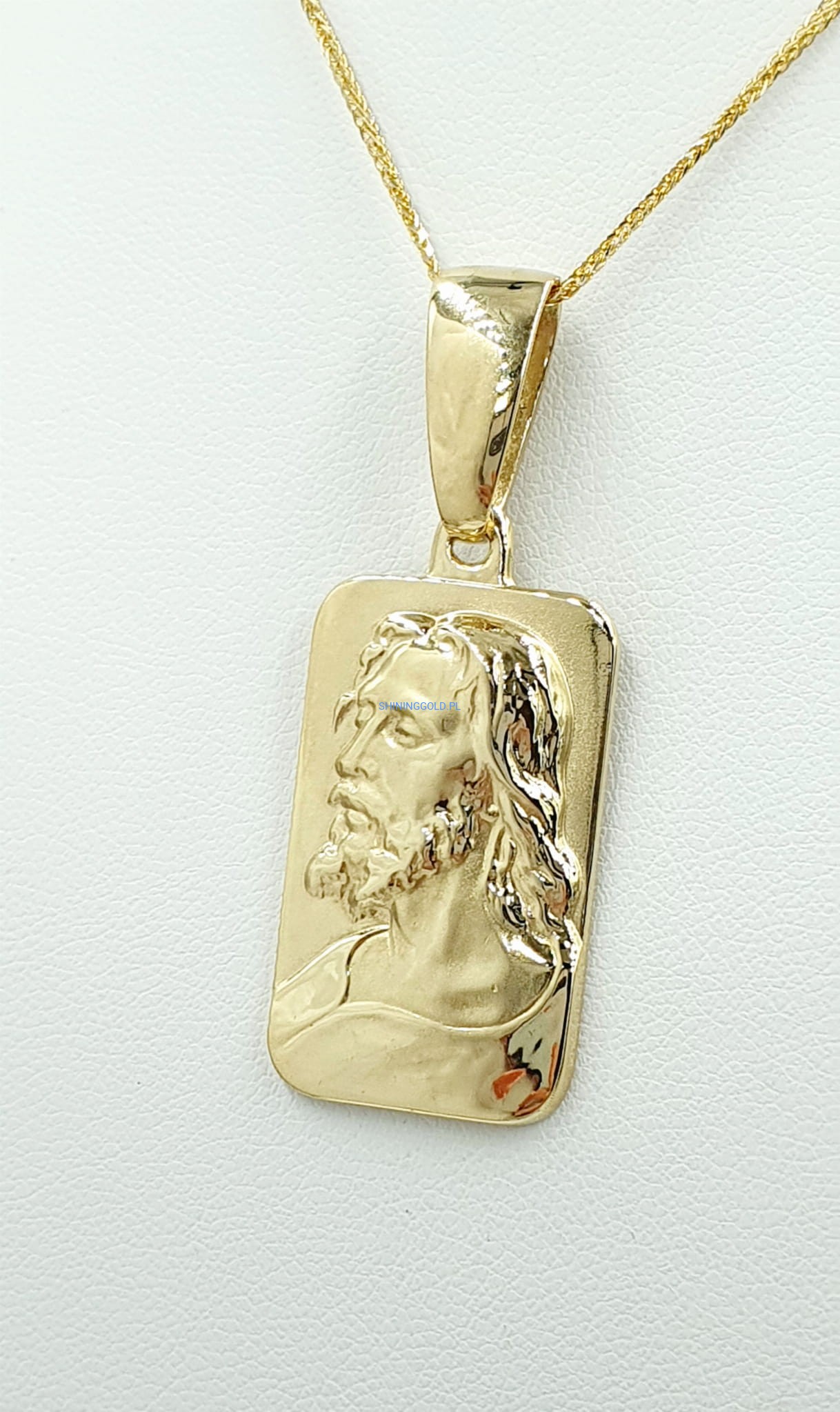 Opis: Ten imponujący złoty medalik z wizerunkiem Jezusa to wyjątkowy symbol wiary i duchowości, stworzony z wysokiej jakości złota próby 585. Jego pełna forma oraz starannie wykonane detale nadają mu majestatyczny i elegancki charakter. Medalik, dzięki swoim dużym wymiarom, idealnie nadaje się jako centralny element każdej biżuterii, emanując duchowym pięknem.