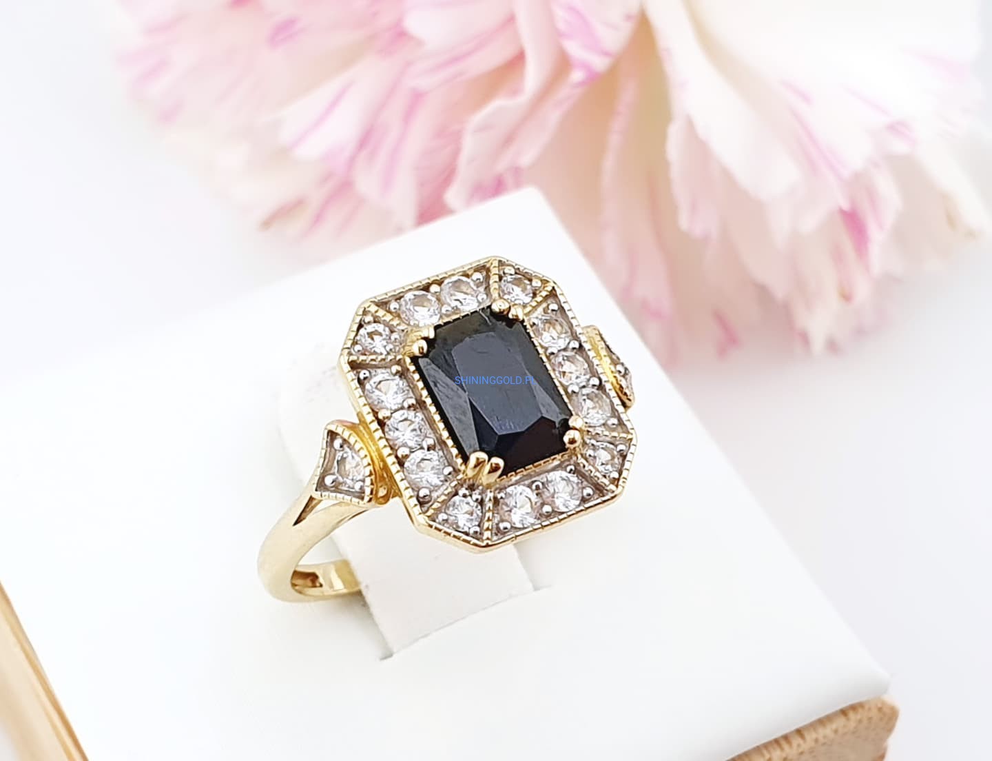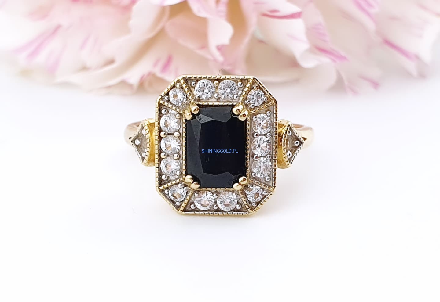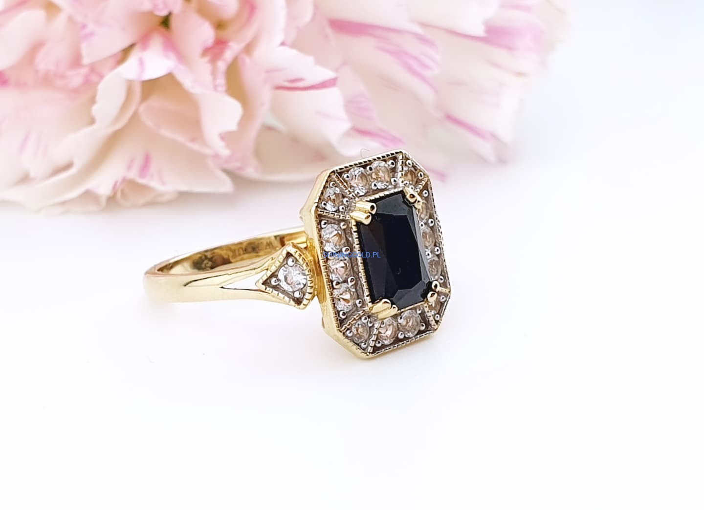 Złoty Pierścionek z Onyksem i Cyrkoniami – Próba 585