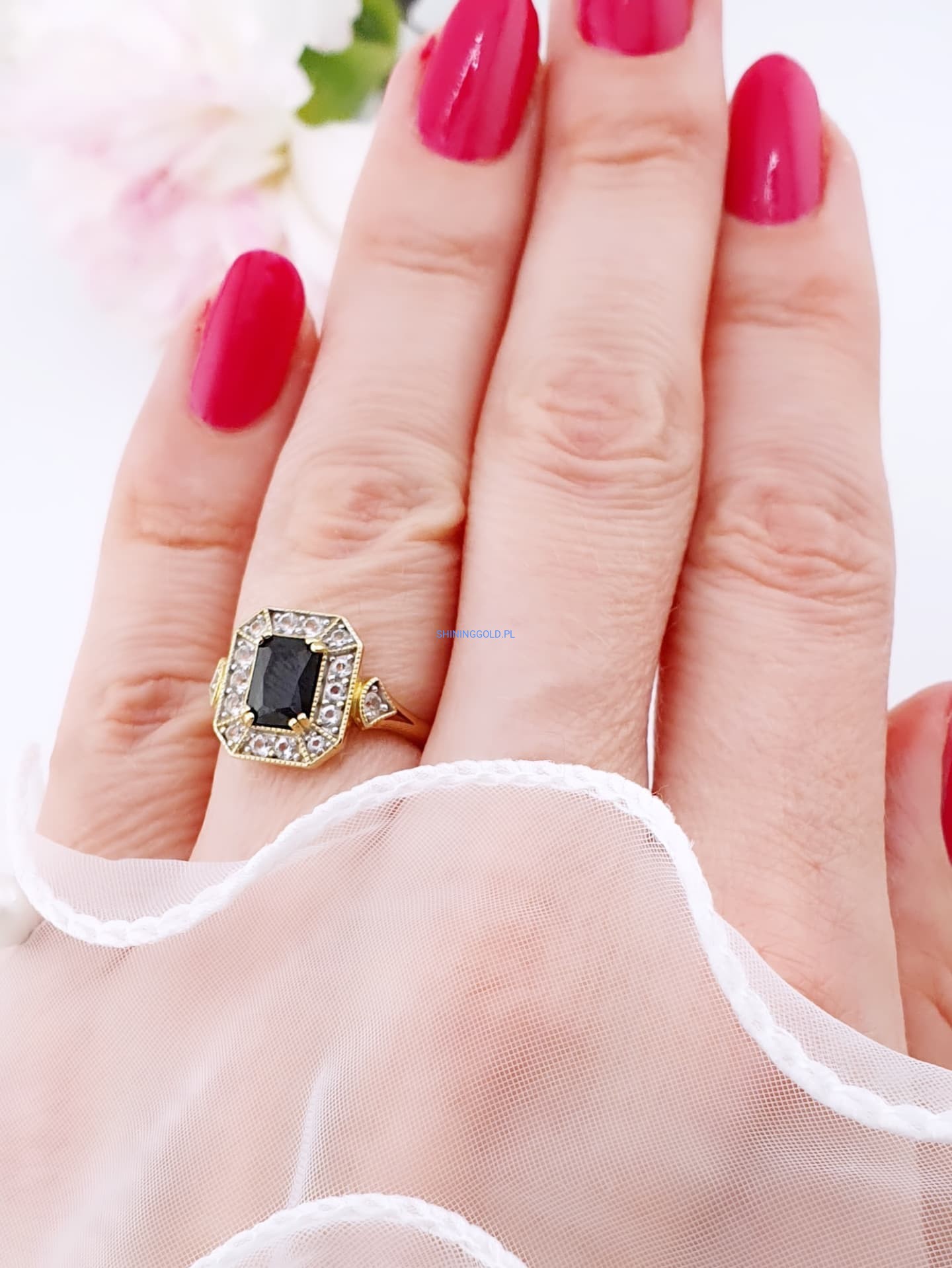 Złoty Pierścionek z Onyksem i Cyrkoniami(006.P)