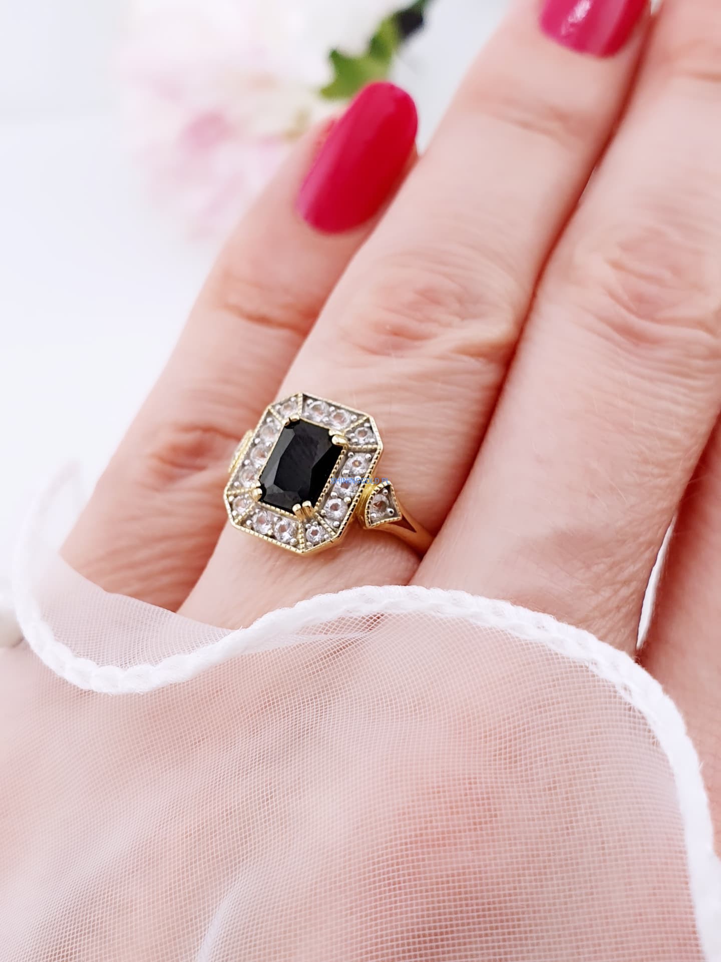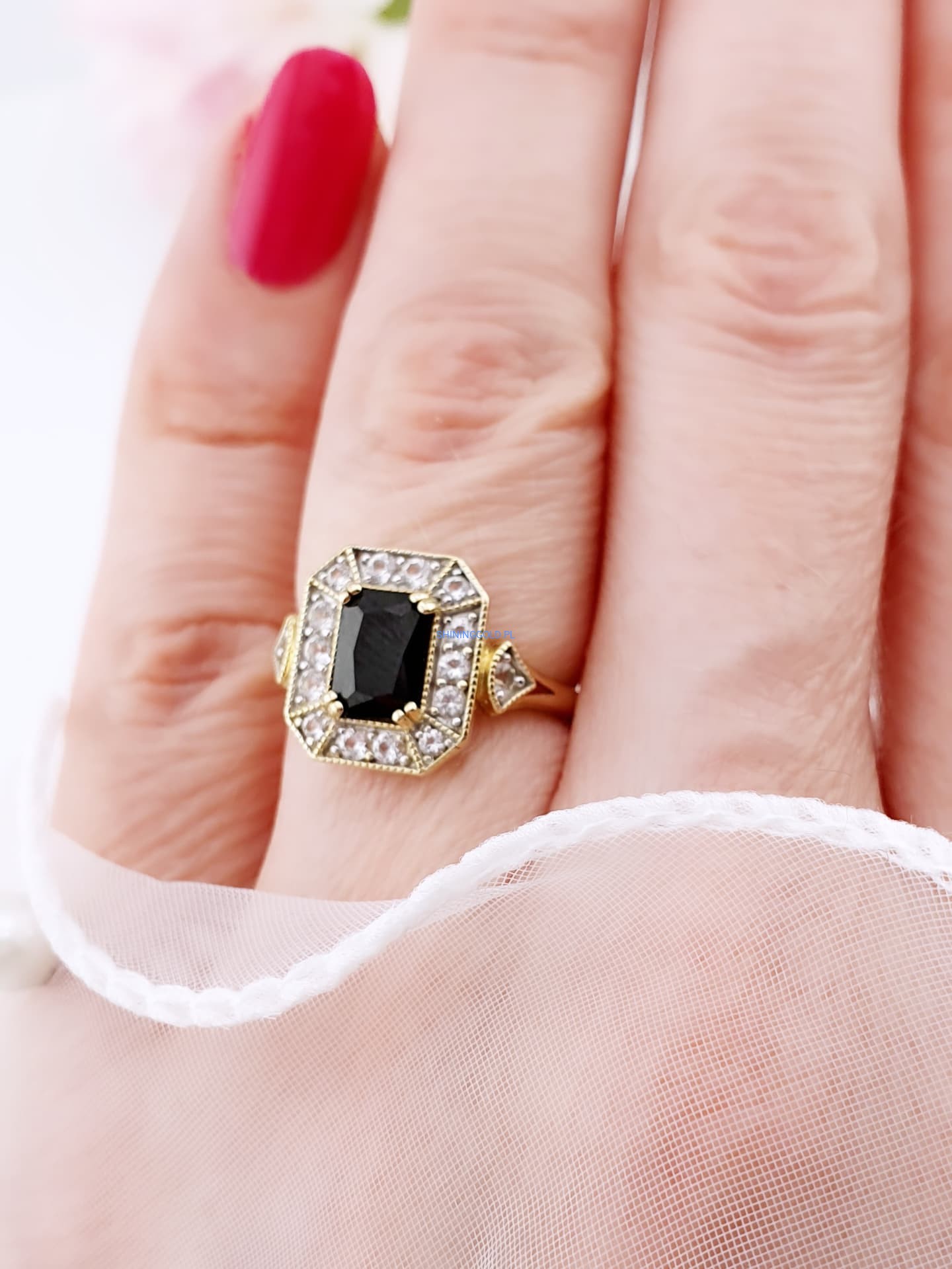 Zakończenie: Pierścionek z Onyksem i cyrkoniami to biżuteria, która łączy elegancję z subtelnym luksusem. Idealny wybór na prezent lub jako dopełnienie Twojej kolekcji biżuterii. Zamów już teraz, aby poczuć wyjątkowość, jaką daje ten niezwykły pierścionek!