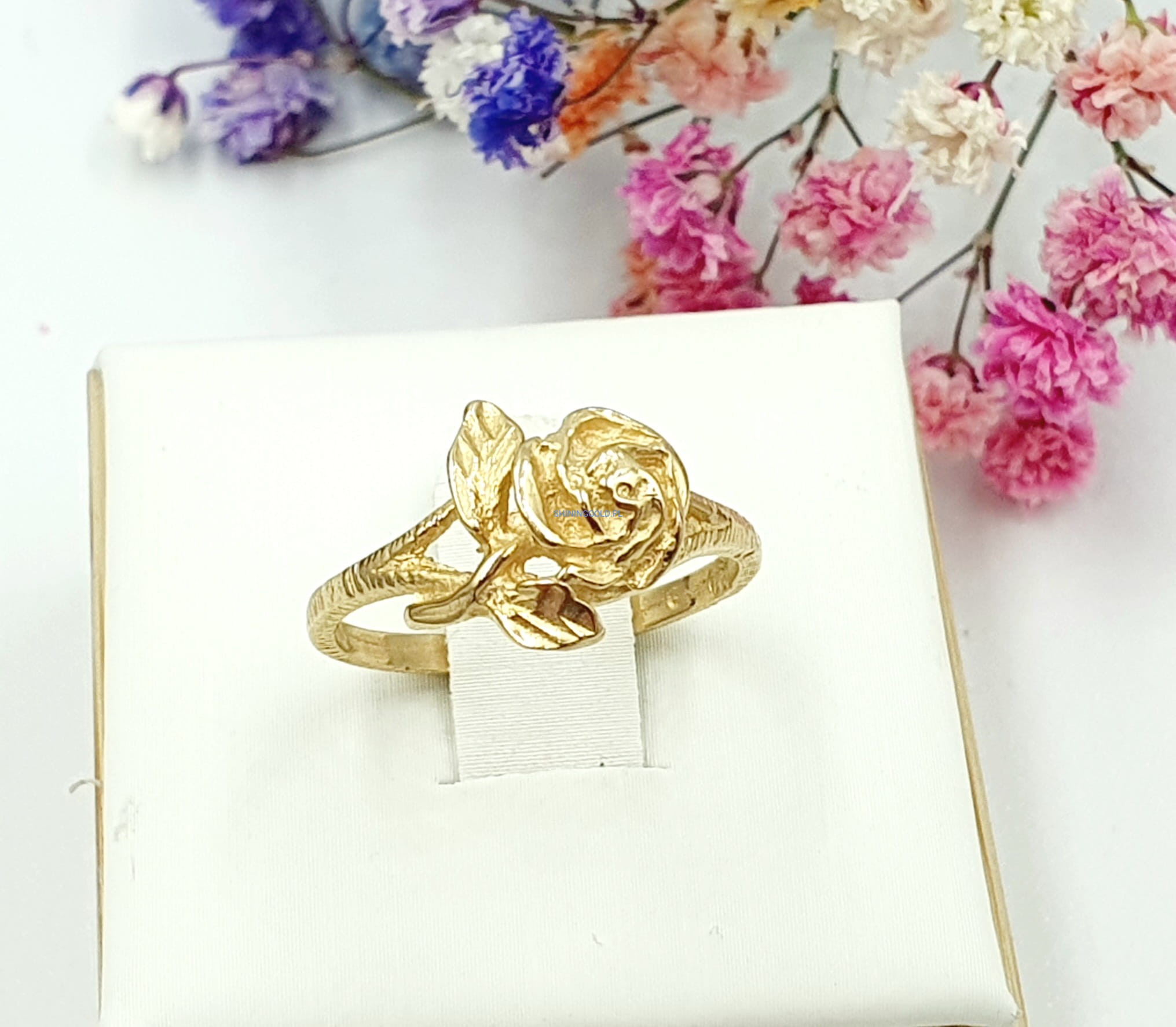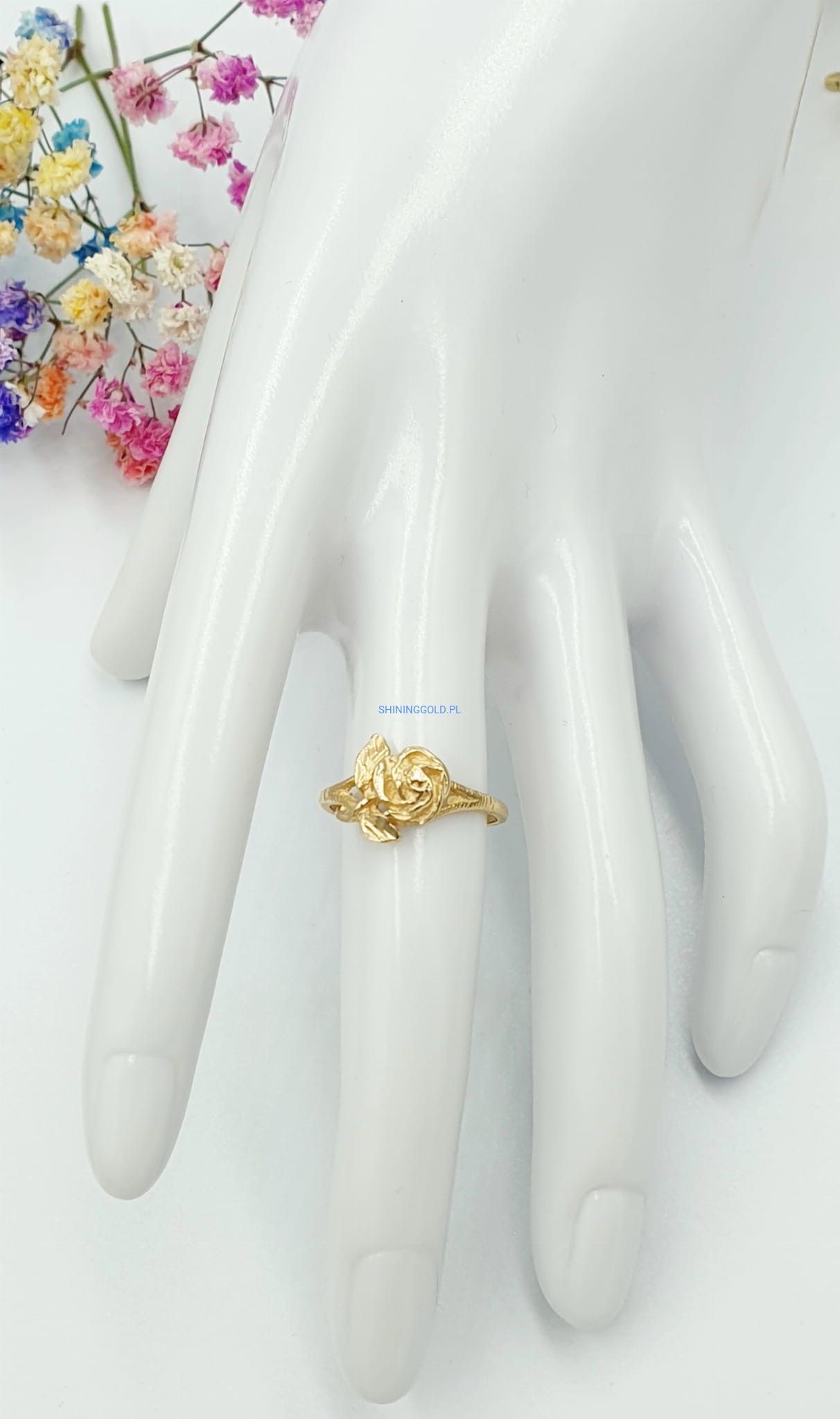 Złoty nowy pierścionek Róża (039P)