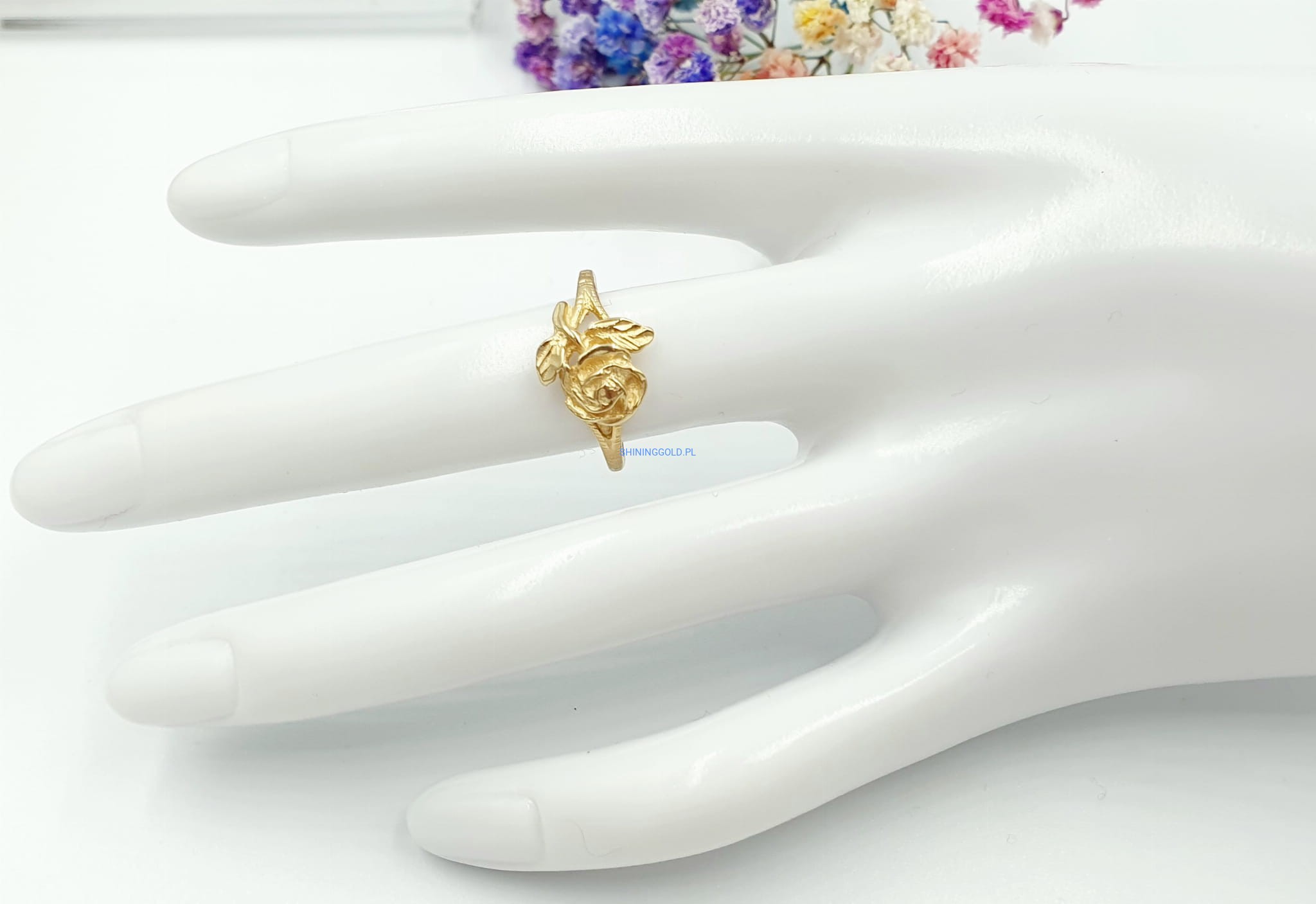 Złoty pierścionek Róża – subtelna elegancja w kwiatowym wydaniu