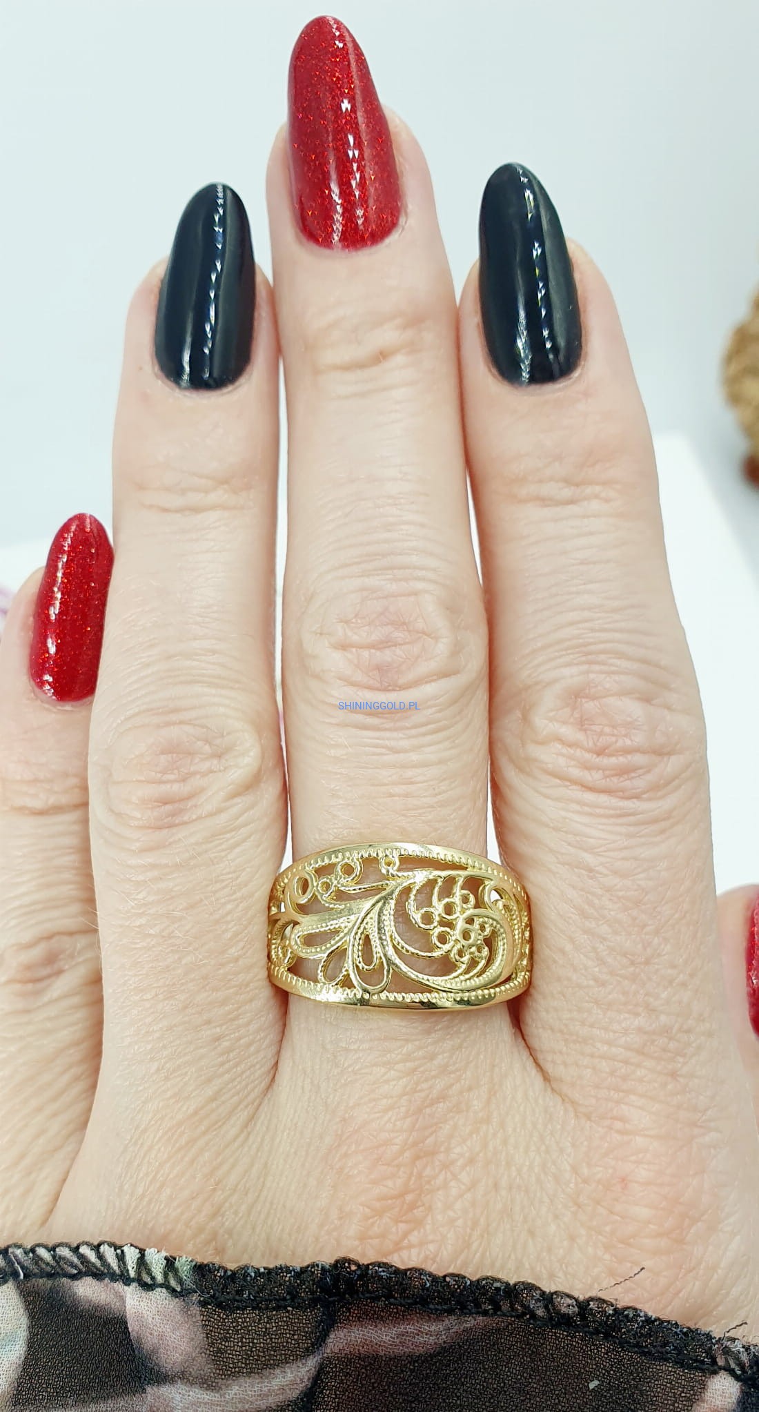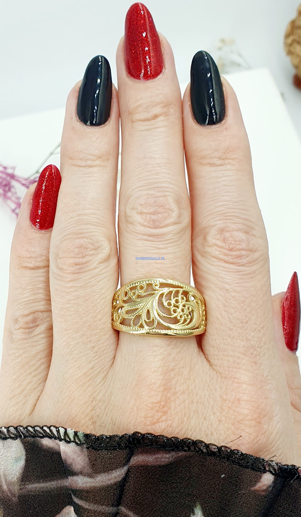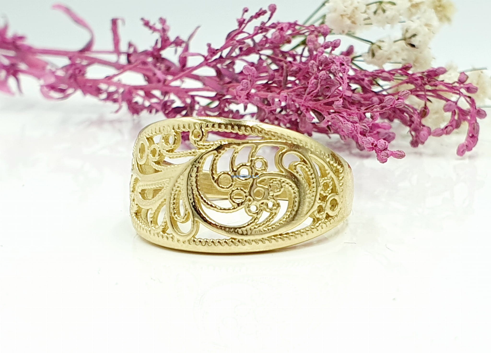 Złoty, nowy ażurowy pierścionek