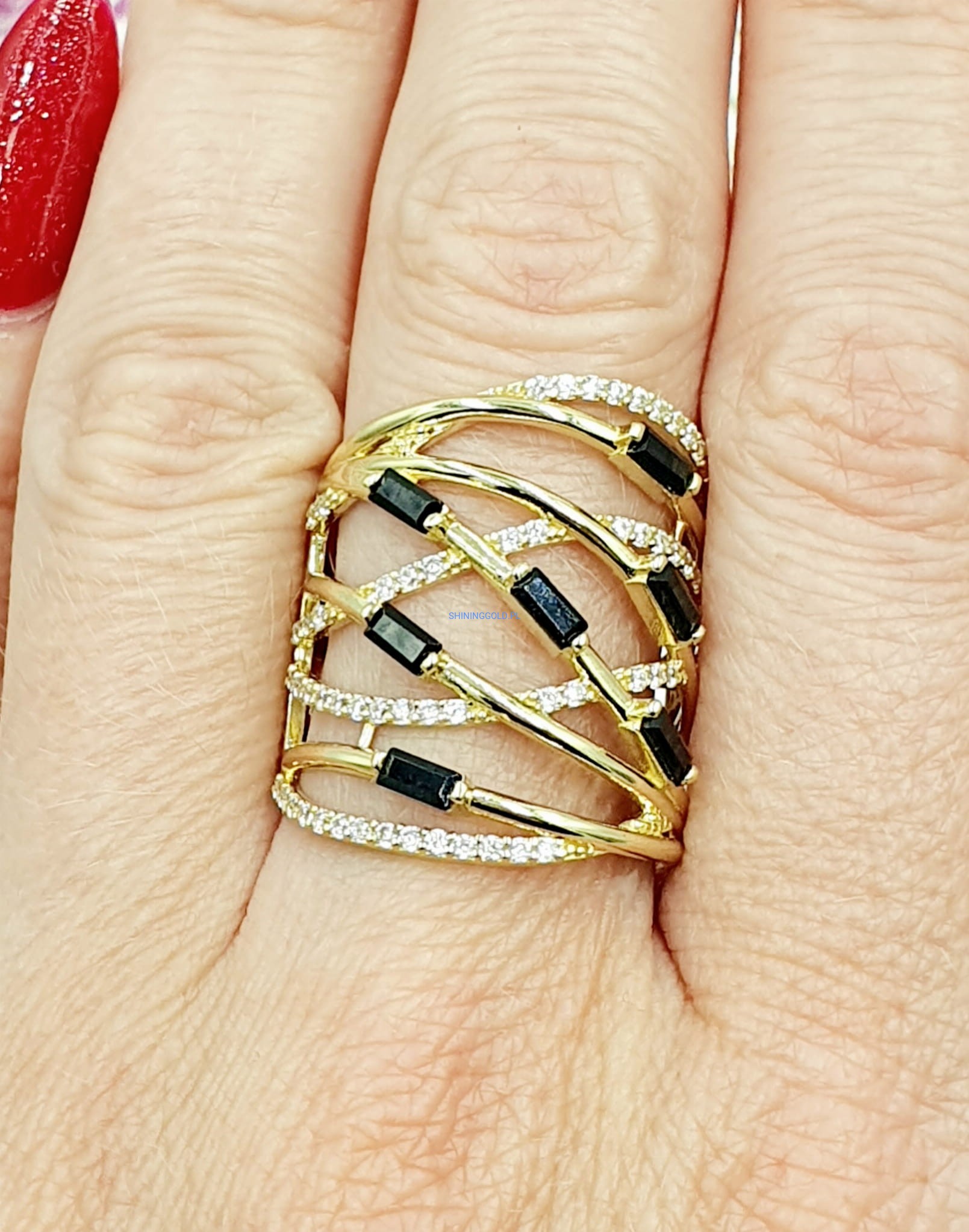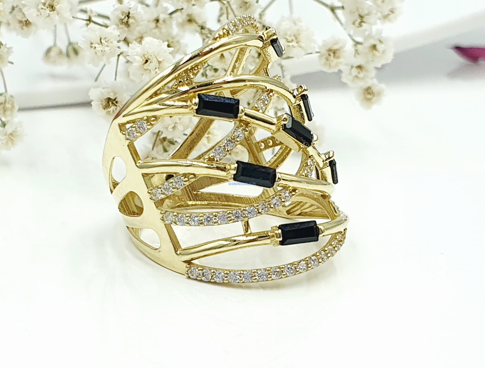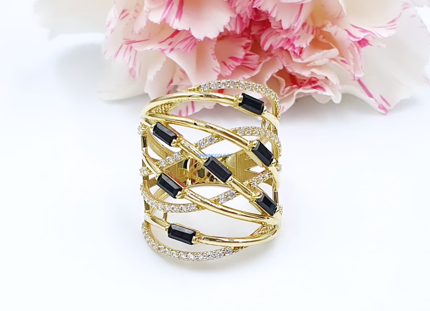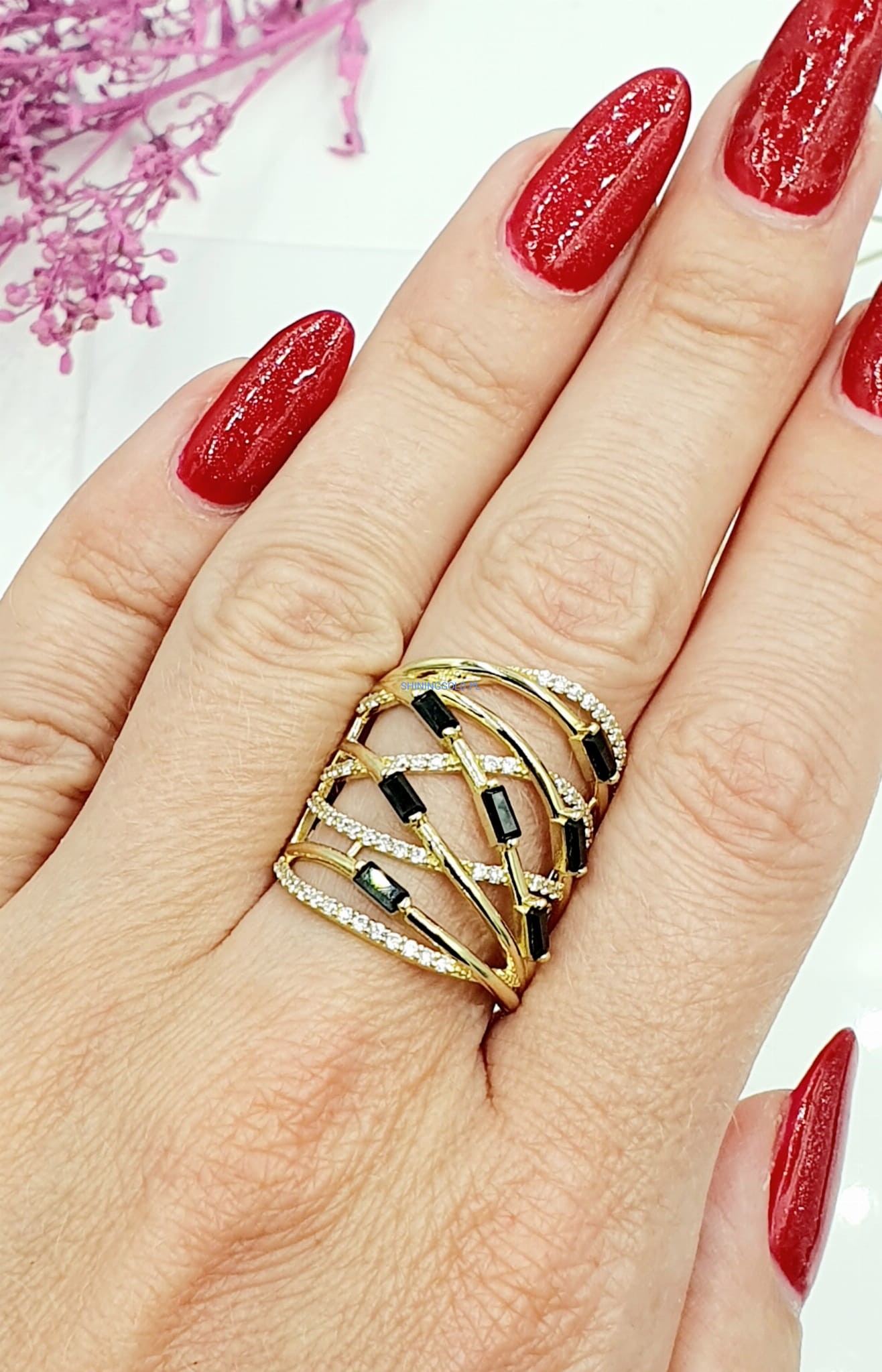 - Czarne onyksy: Kamienie te dodają pierścionkowi wyrafinowanego, eleganckiego stylu.