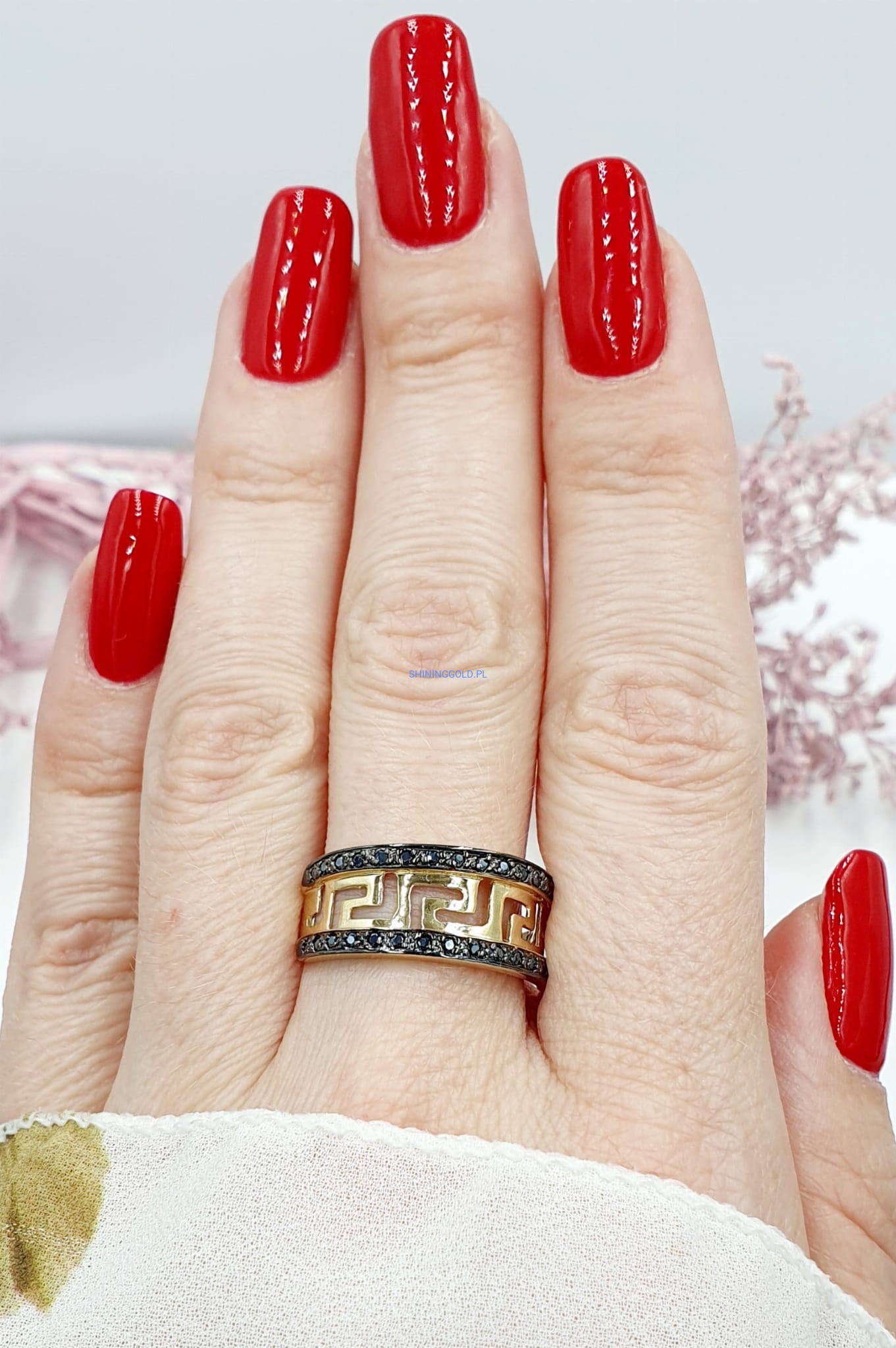 Ten elegancki pierścionek wykonany ze złota próby 585 zdobią czarne cyrkonie, które nadają mu wyjątkowy charakter. Wzór grecki dodaje klasycznego uroku i sprawia, że pierścionek wyróżnia się spośród innych. Waga pierścionka wynosi 4,06g, a jego rozmiar to 22, z możliwością zmiany rozmiaru, aby idealnie pasował na Twój palec. Idealny wybór na wyjątkowe okazje, który doda wyrafinowanego blasku Twojej stylizacji.