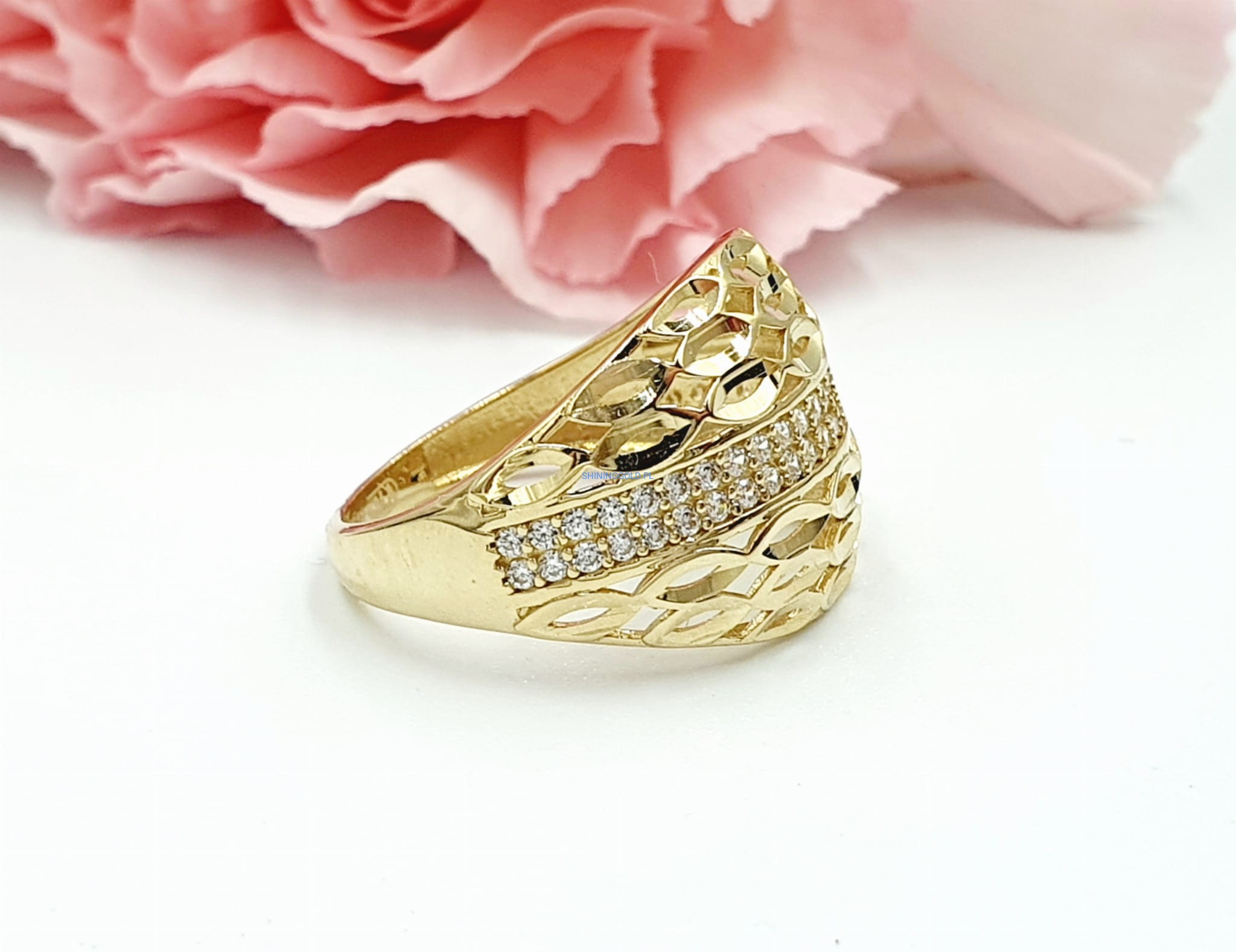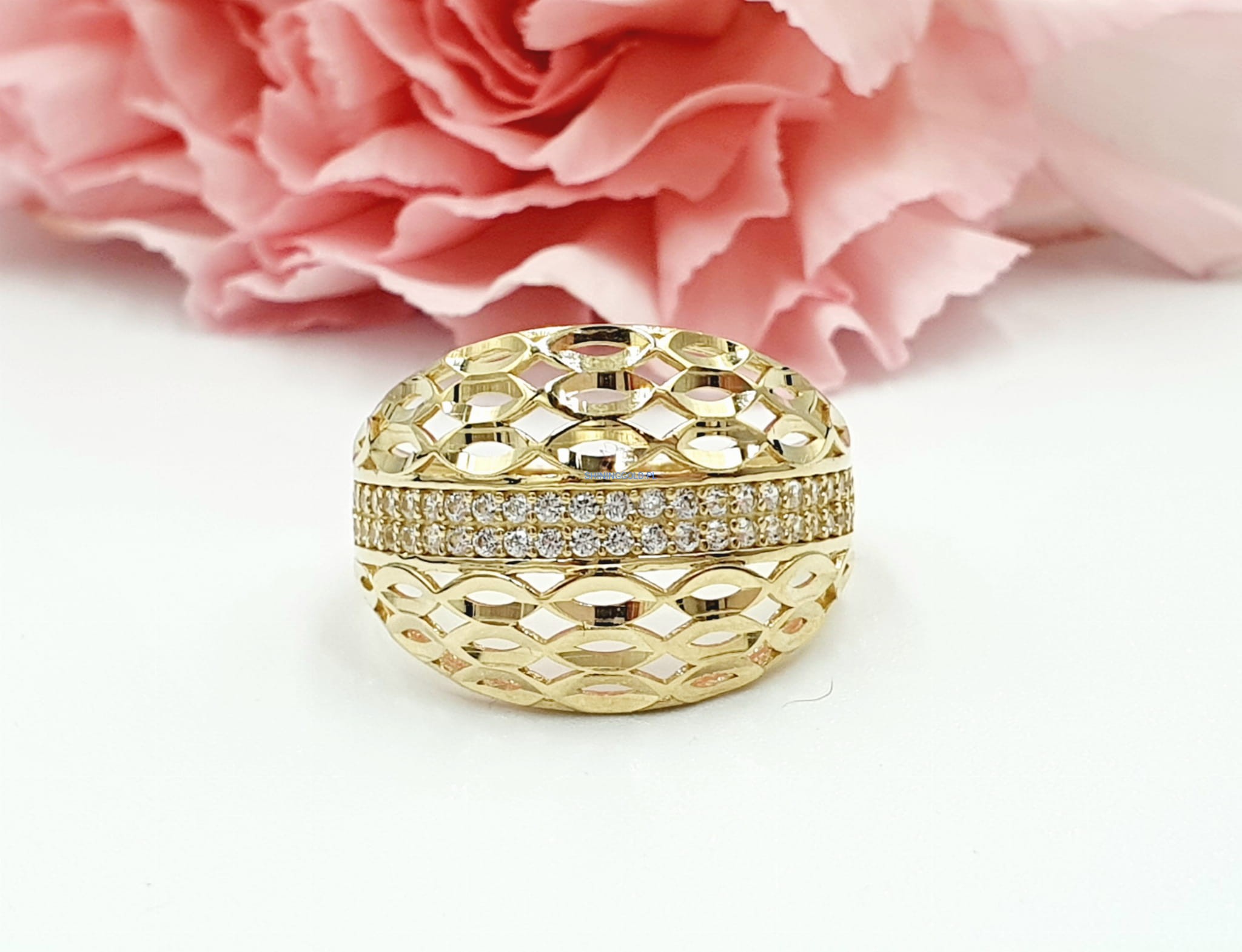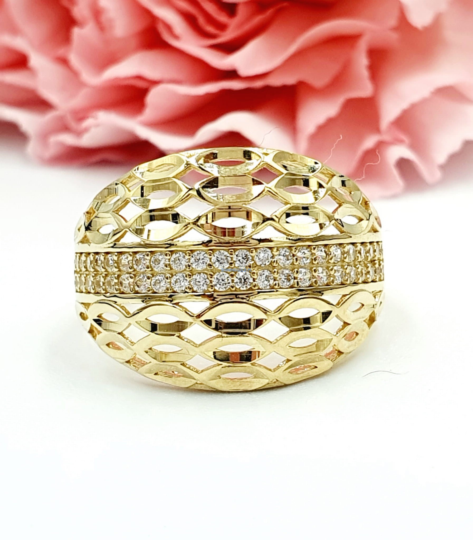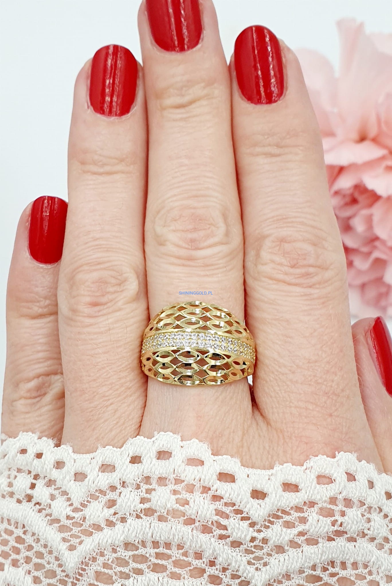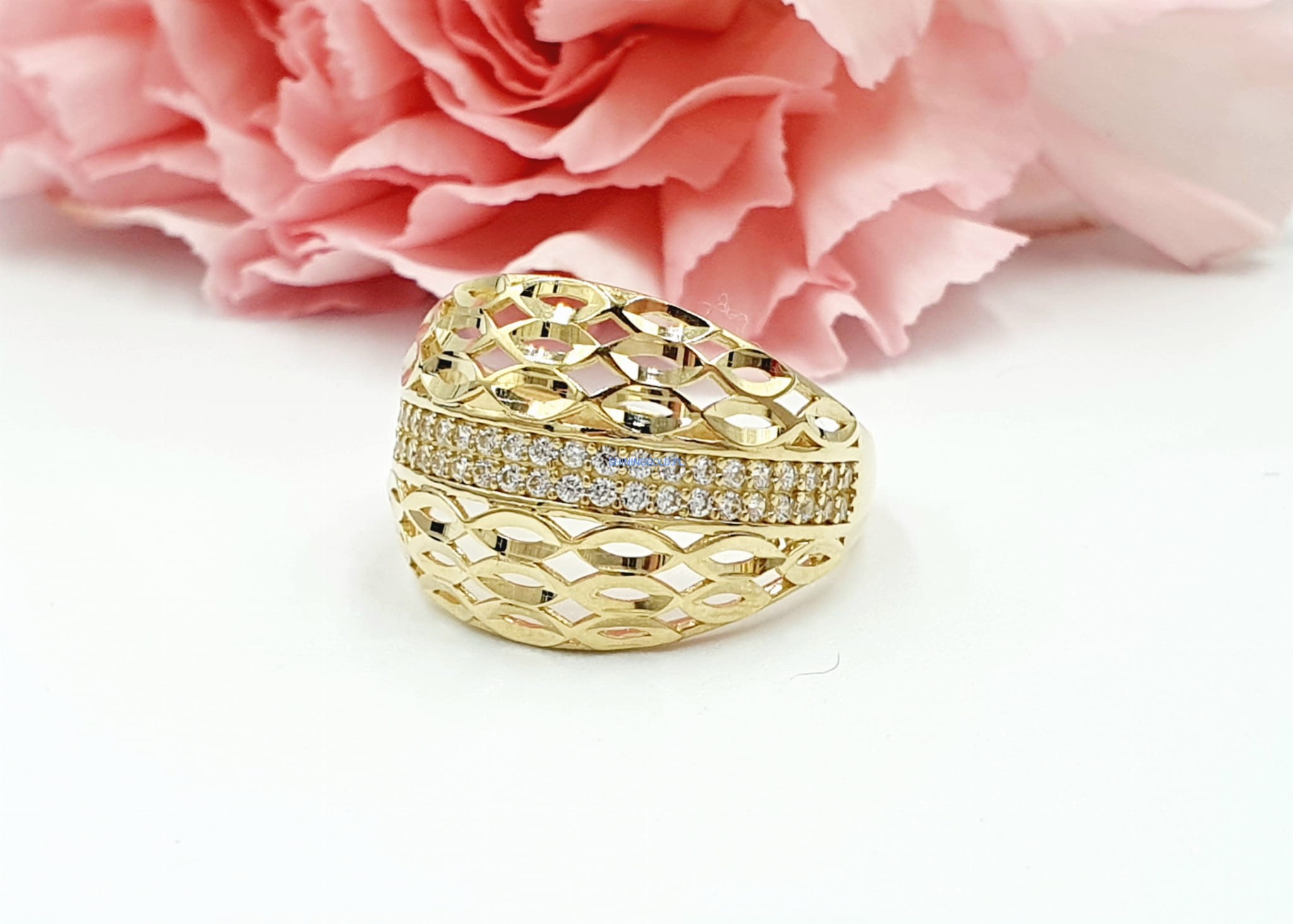Doskonały Prezent dla Wyjątkowej Osoby: Poszukujesz idealnego prezentu dla bliskiej osoby? Ten złoty pierścień ażurowy z cyrkoniami to niezwykły gest, który z pewnością wywoła uśmiech na twarzy każdej eleganckiej kobiety.