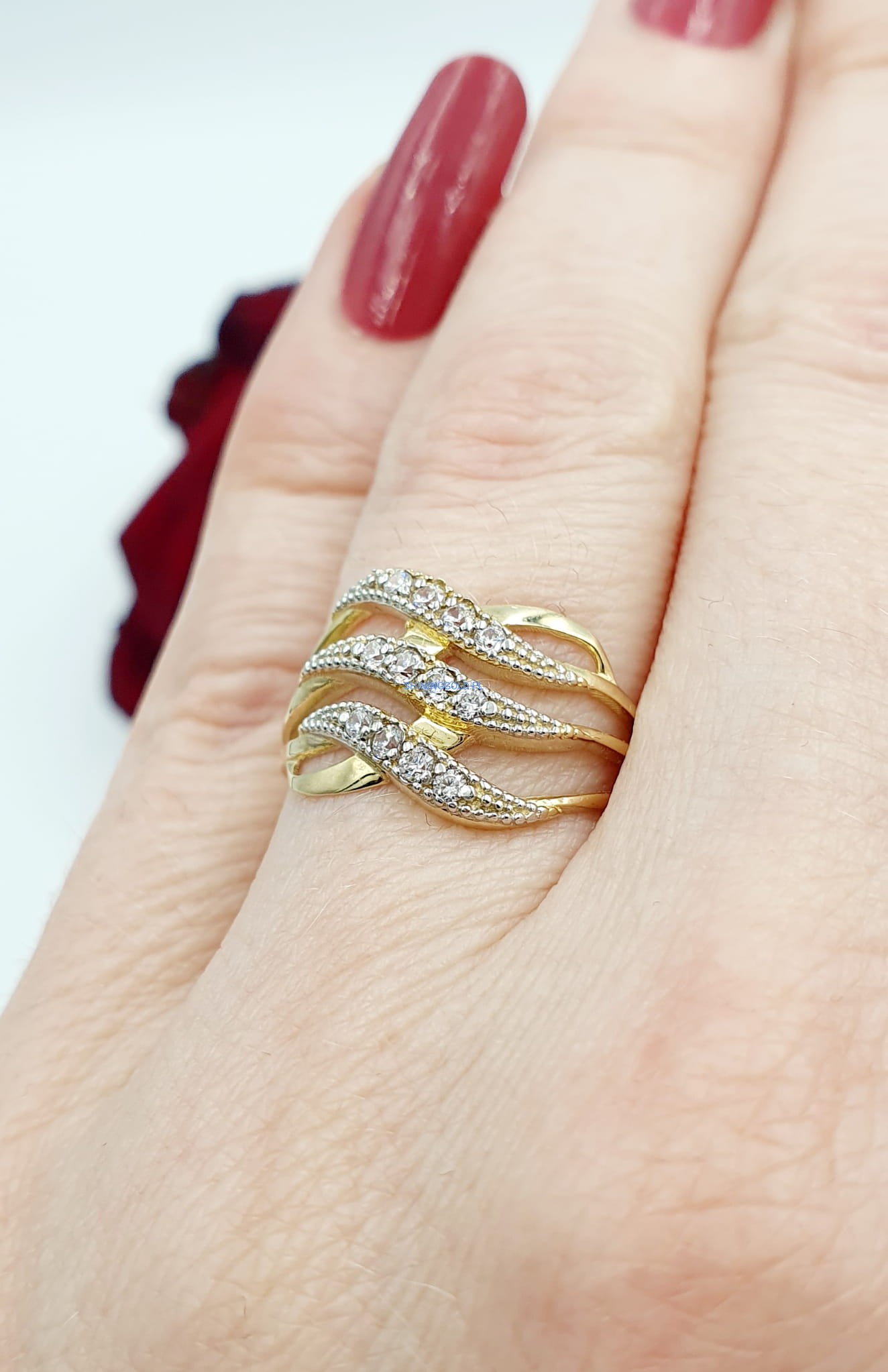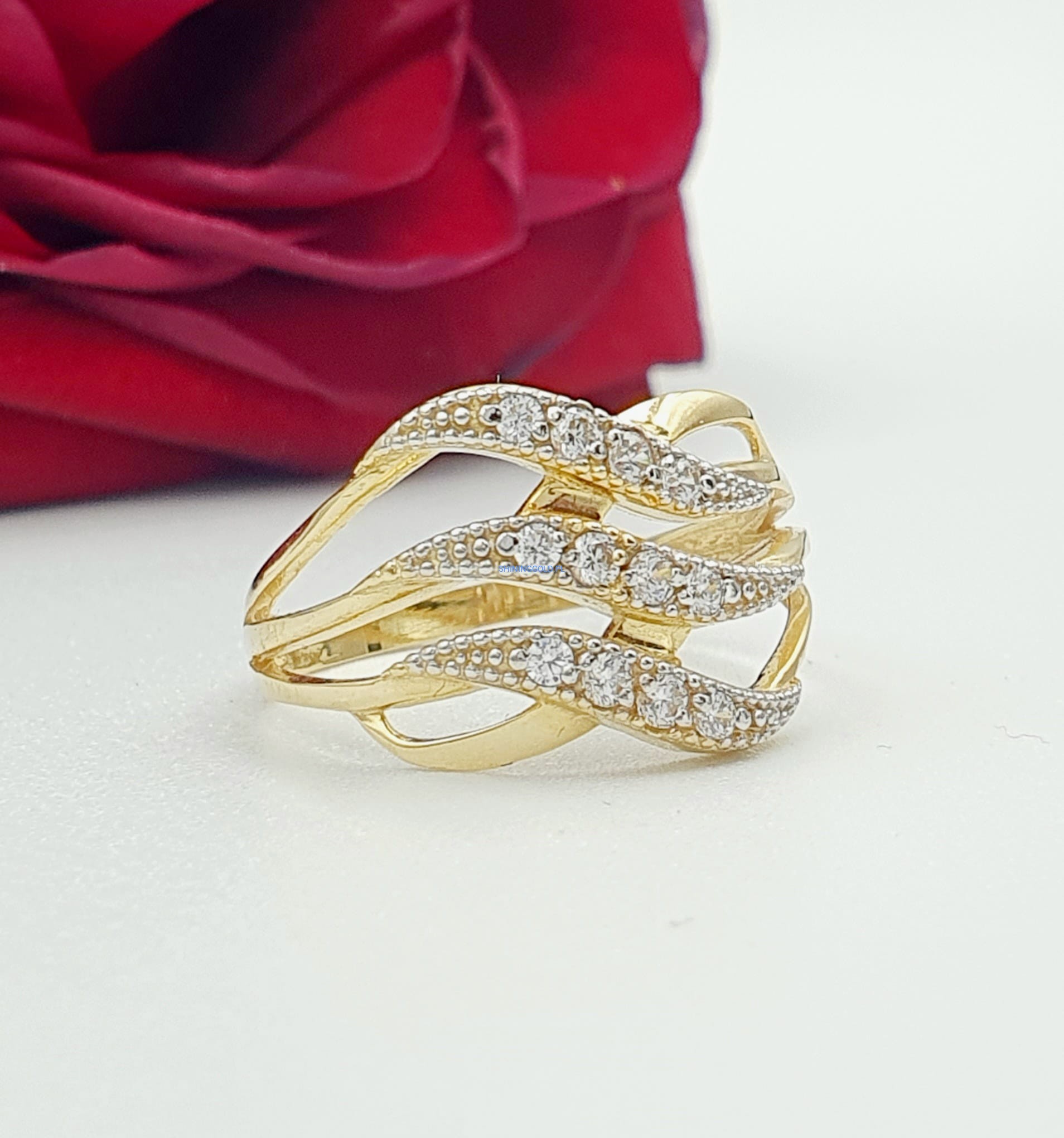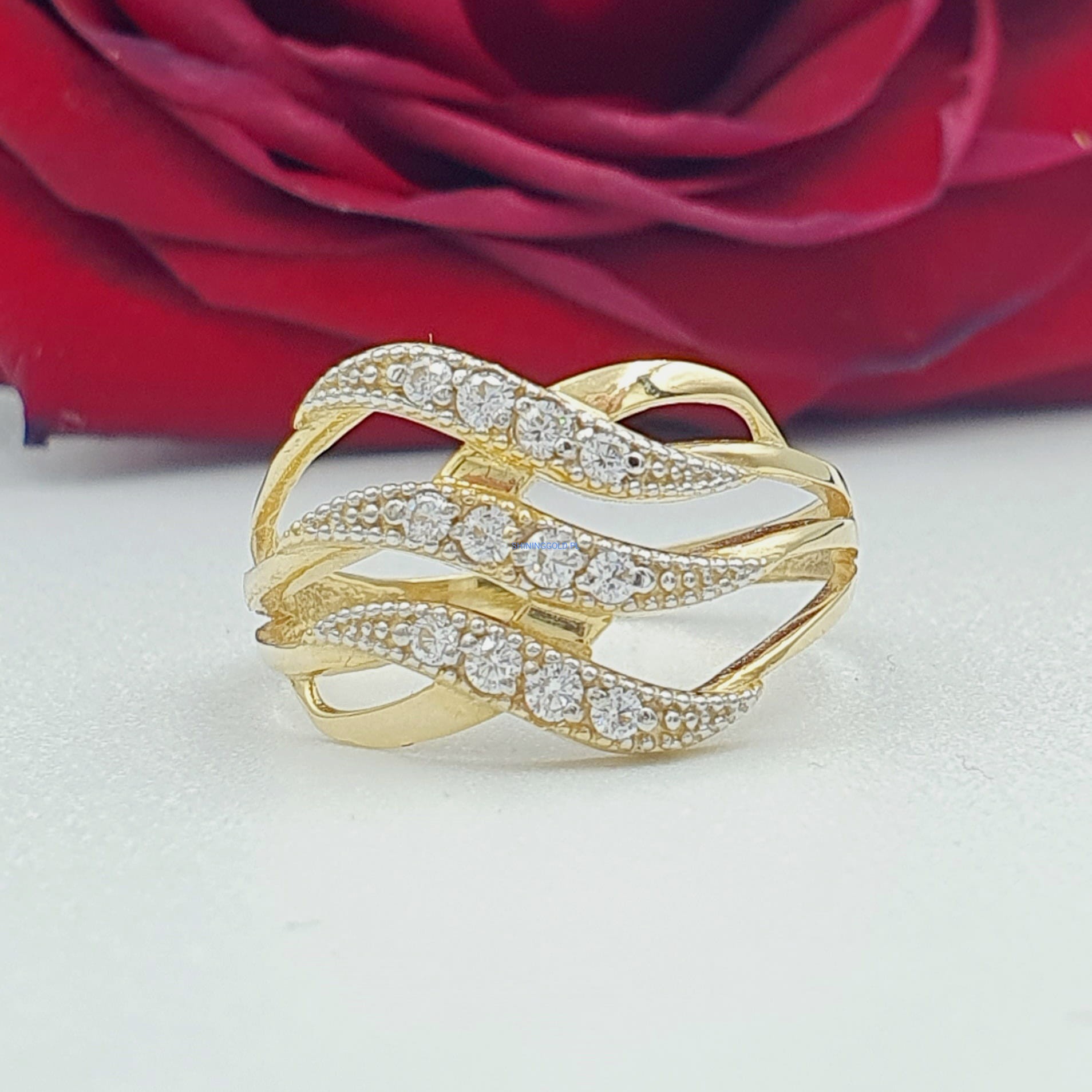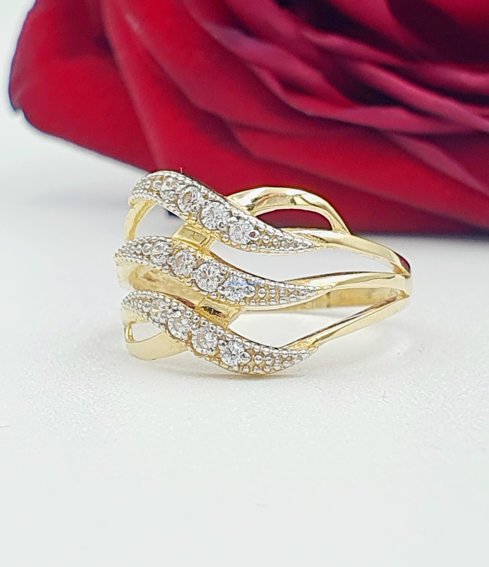 Dodaj odrobinę blasku do swojej kolekcji biżuterii za pomocą naszego nowego złotego pierścionka z cyrkoniami. Ten elegancki pierścień emanuje klasyką i subtelnością, doskonale podkreślając Twój wyjątkowy styl.