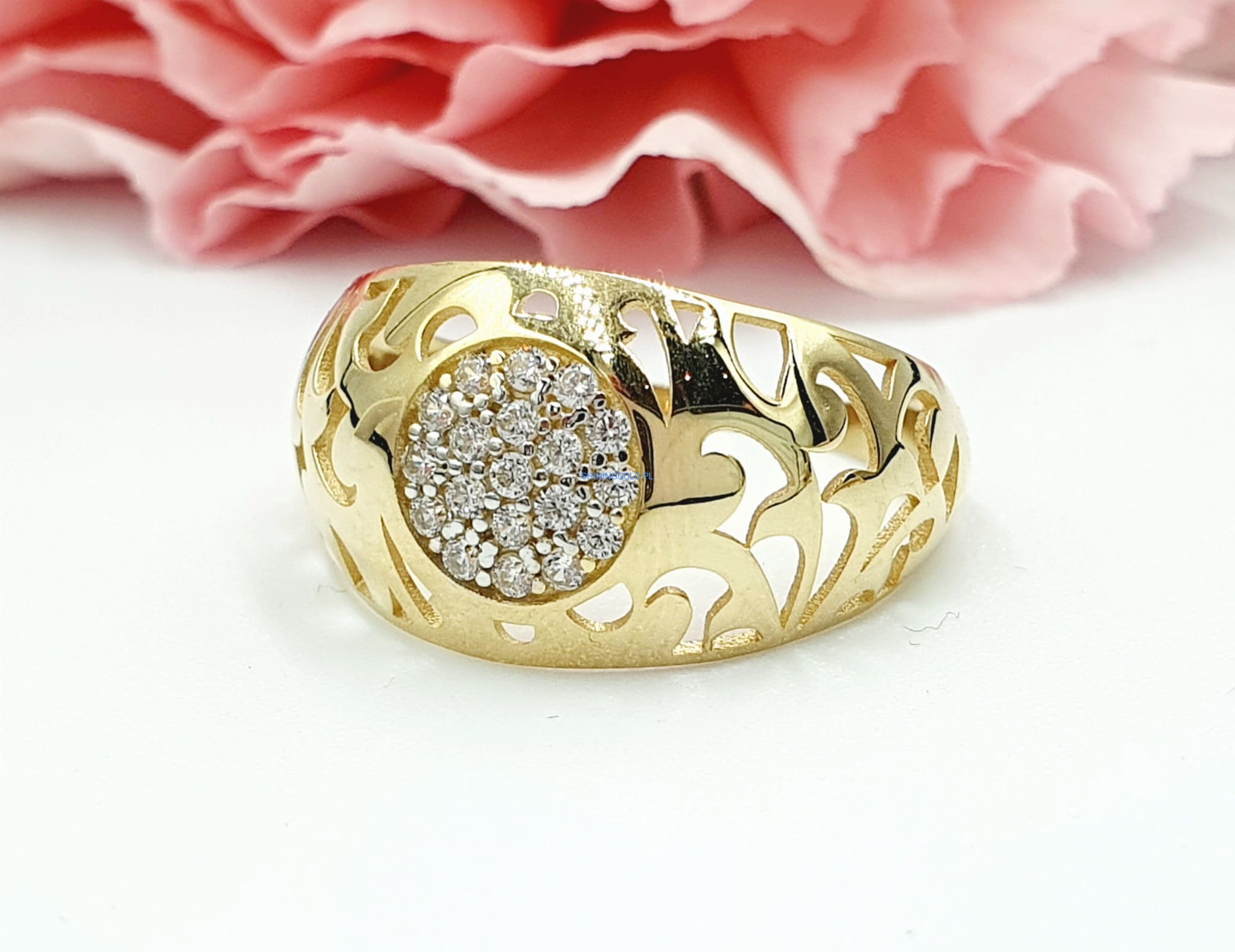 Doskonała Jakość: Złoto o wysokiej próbie gwarantuje trwałość i odporność na czynniki zewnętrzne. Cyrkonia została starannie osadzona, aby pięknie lśnić i doskonale komponować się z delikatnym wzorem pierścionka.
