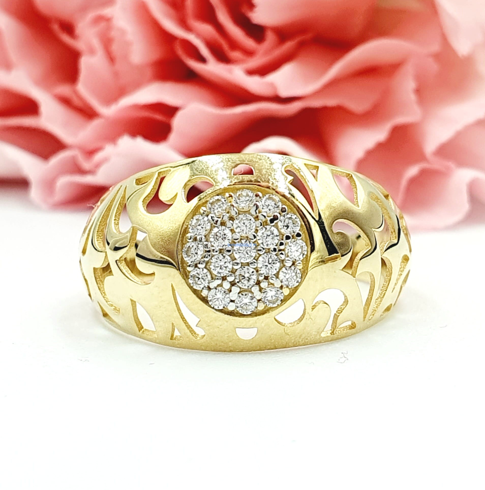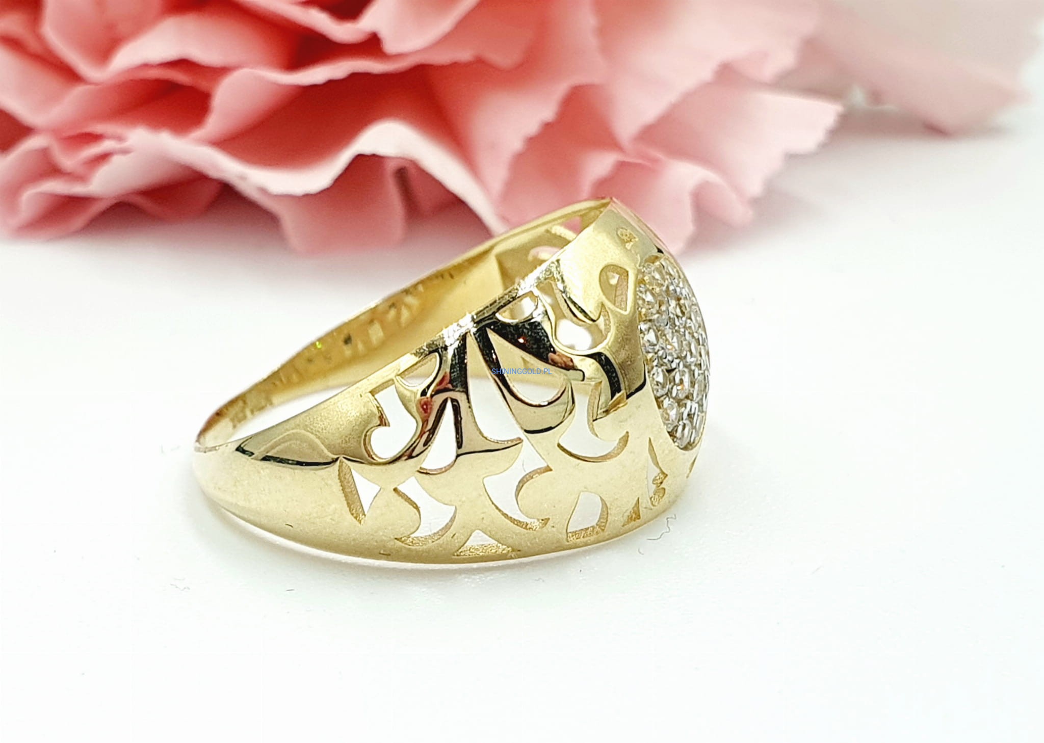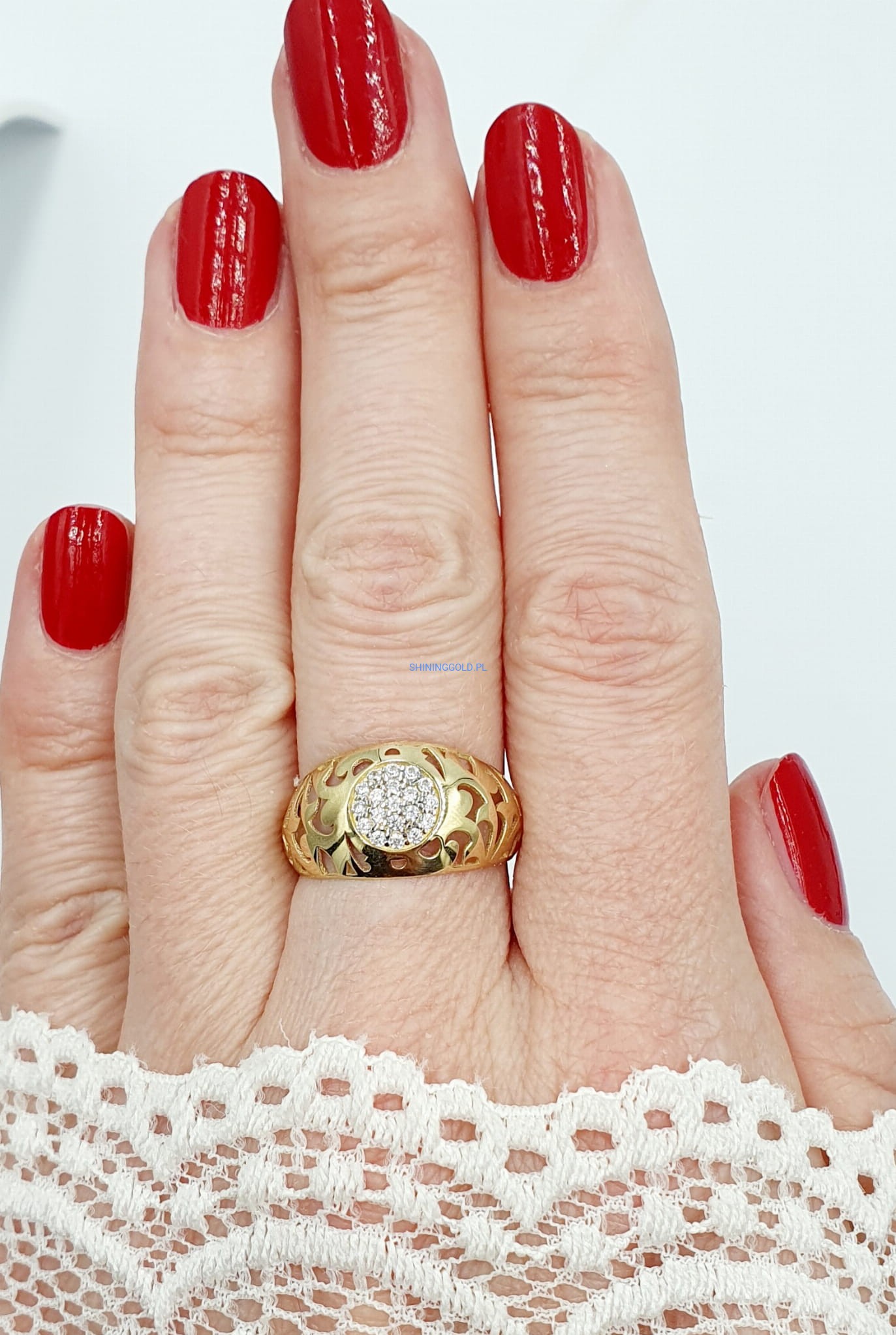 Ten uroczy złoty pierścionek to połączenie klasyki i nowoczesnego wzornictwa. Wykonany ze złota o próbie 585, jest nie tylko piękny, ale także trwały i solidny.