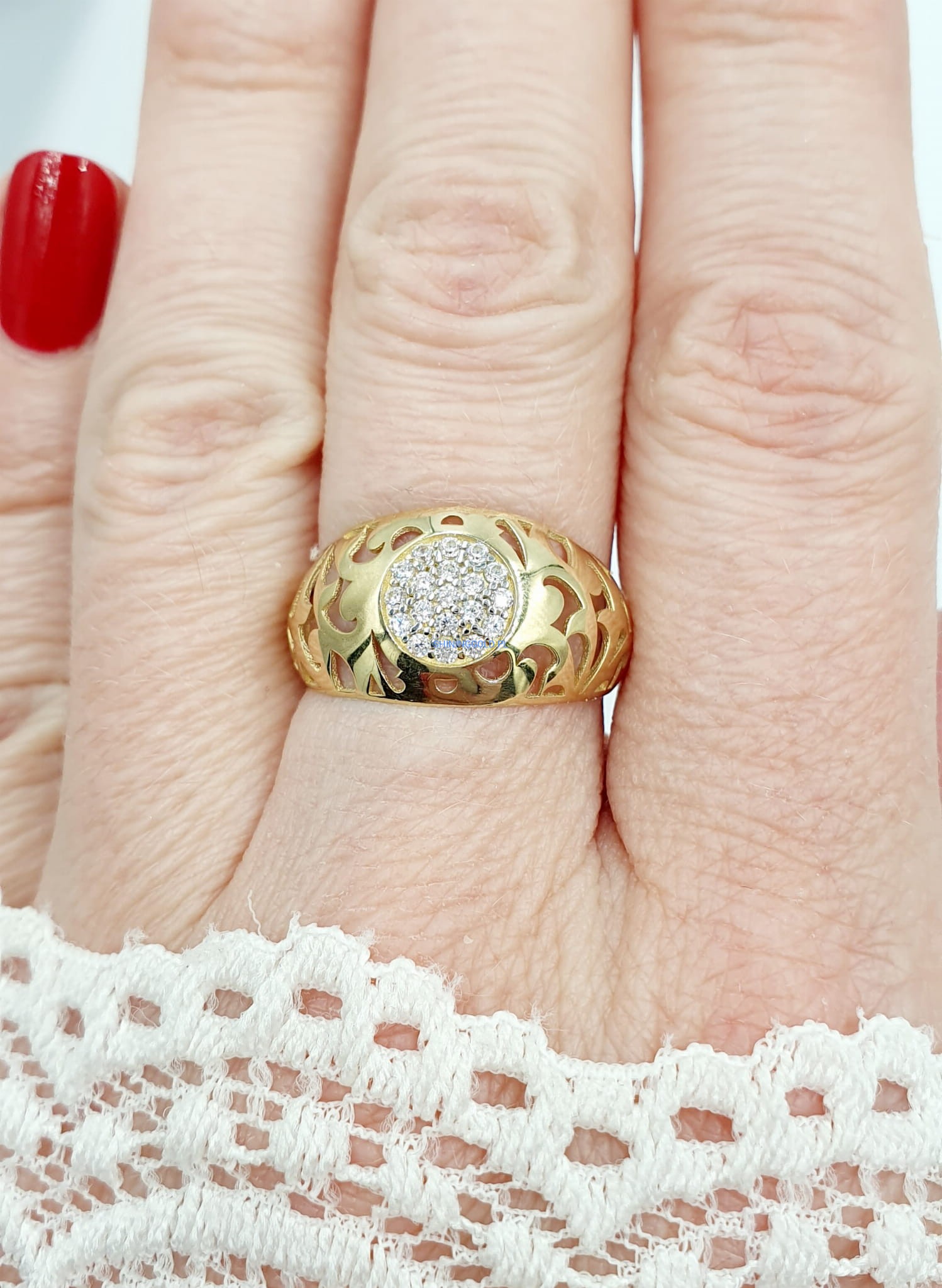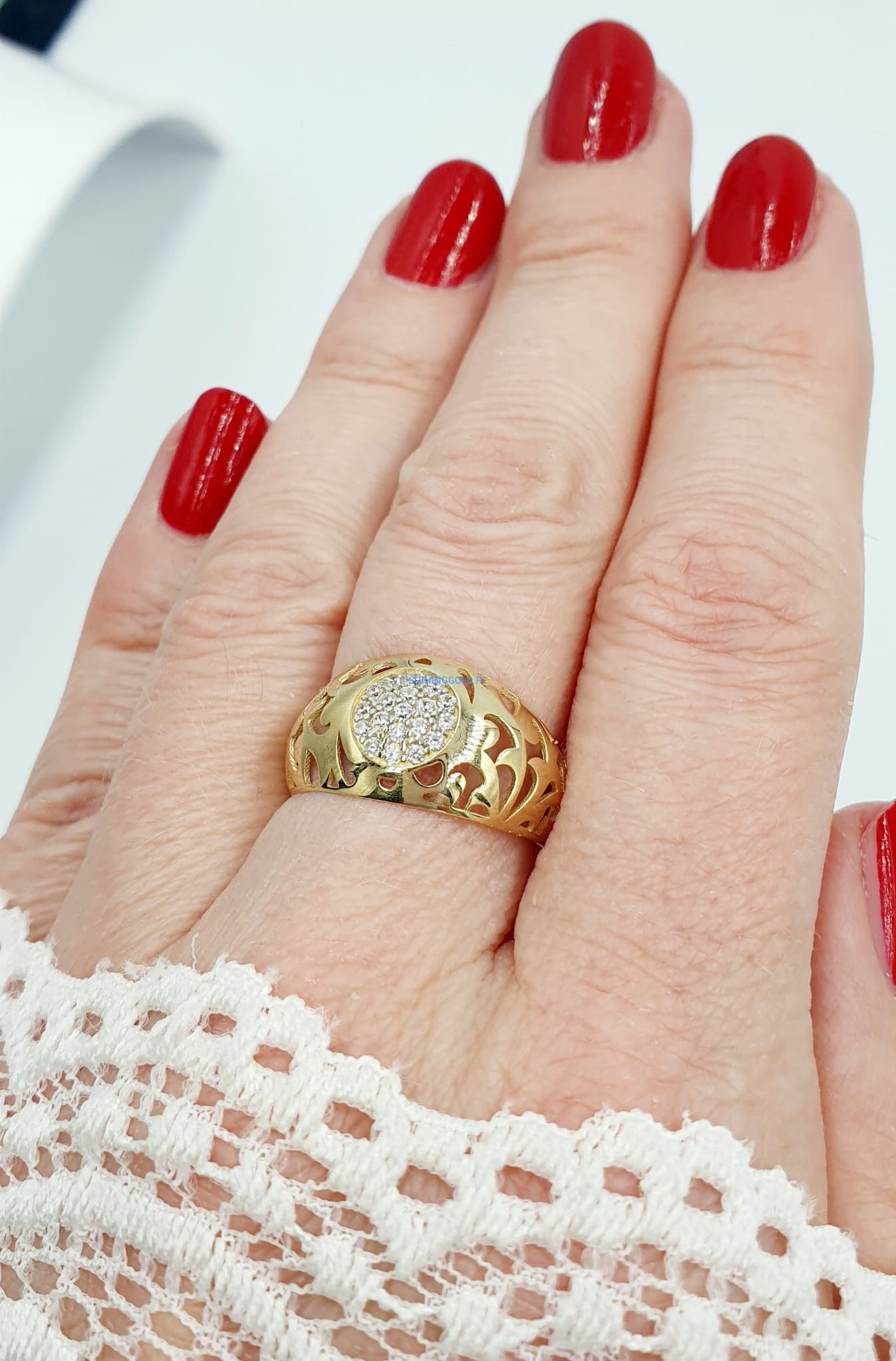 Doskonały Prezent dla Wyjątkowej Osoby: Szukasz idealnego prezentu dla bliskiej osoby? Ten złoty pierścień z cyrkoniami to niezwykły gest, który wywoła uśmiech na twarzy każdej eleganckiej kobiety.