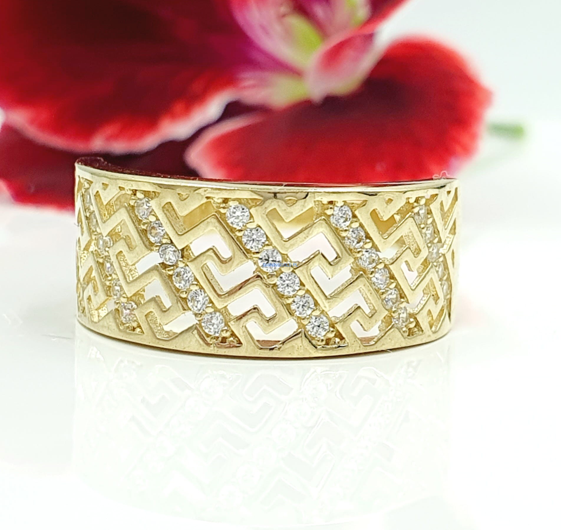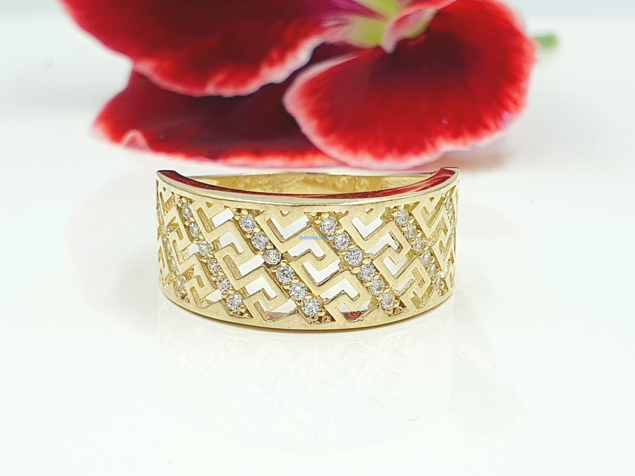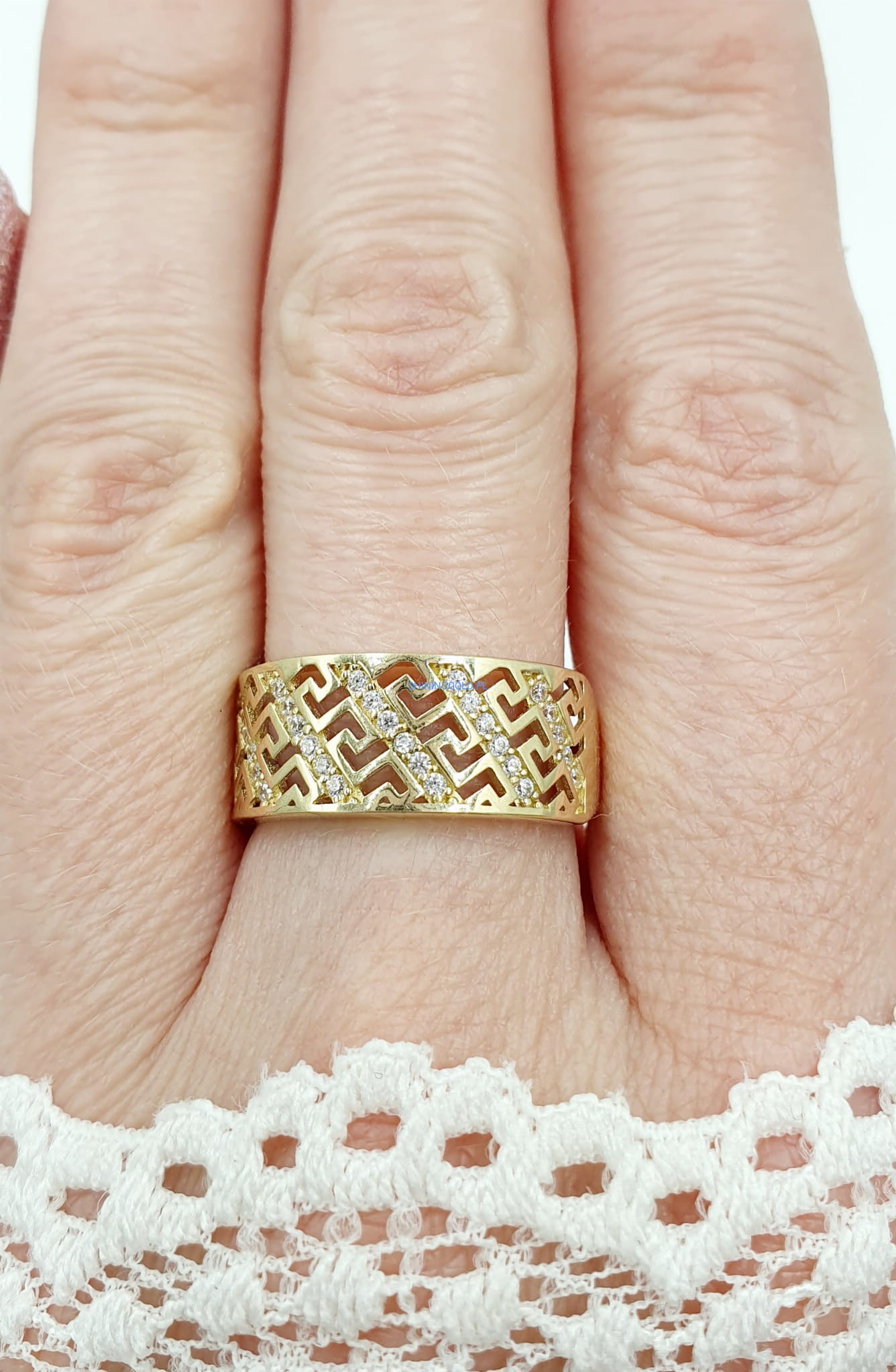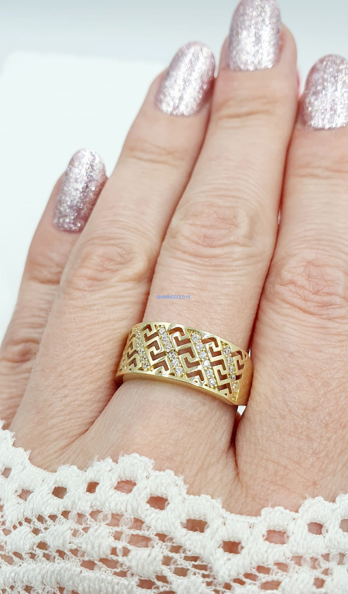 Piękny, nowy pierścionek z cyrkoniami wykonany ze złota próby 585