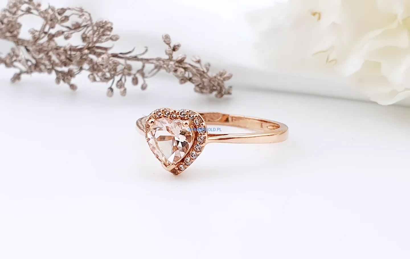 Złoty pierścionek 585 serce z cyrkonią – różowe złoto (075P)