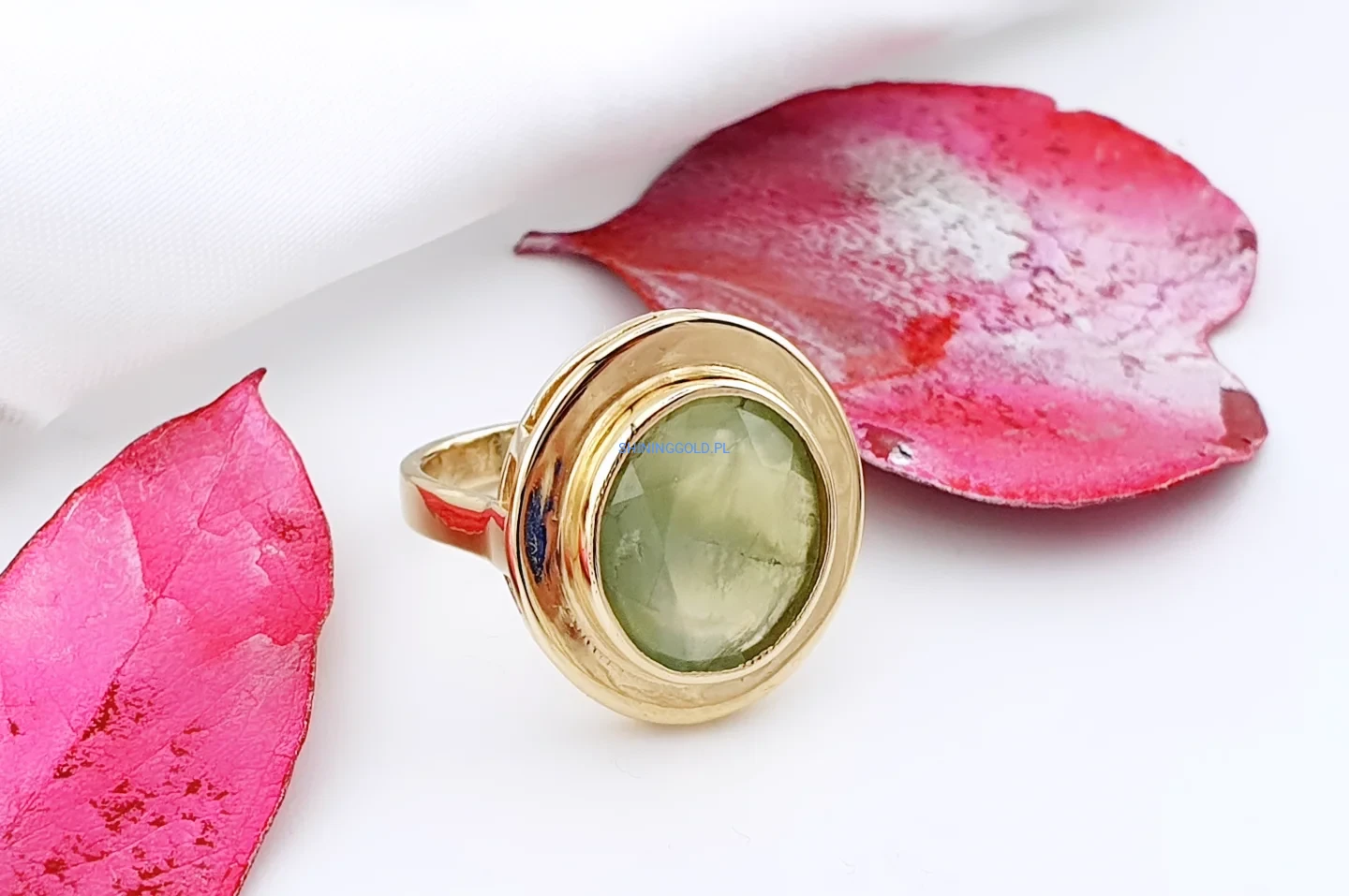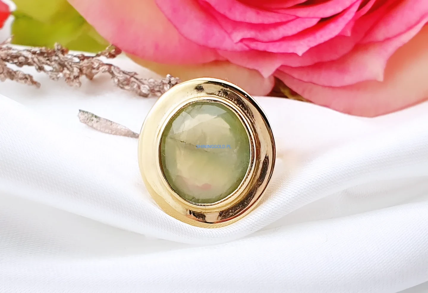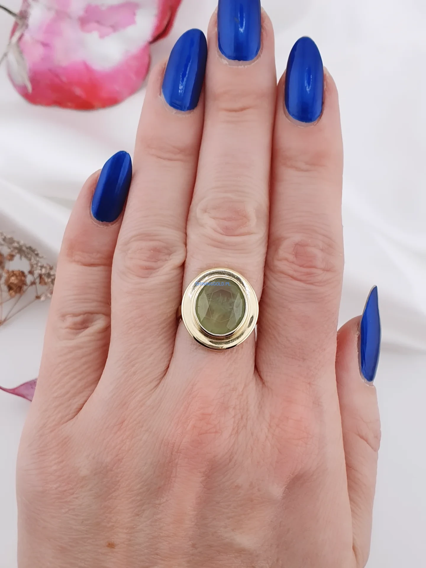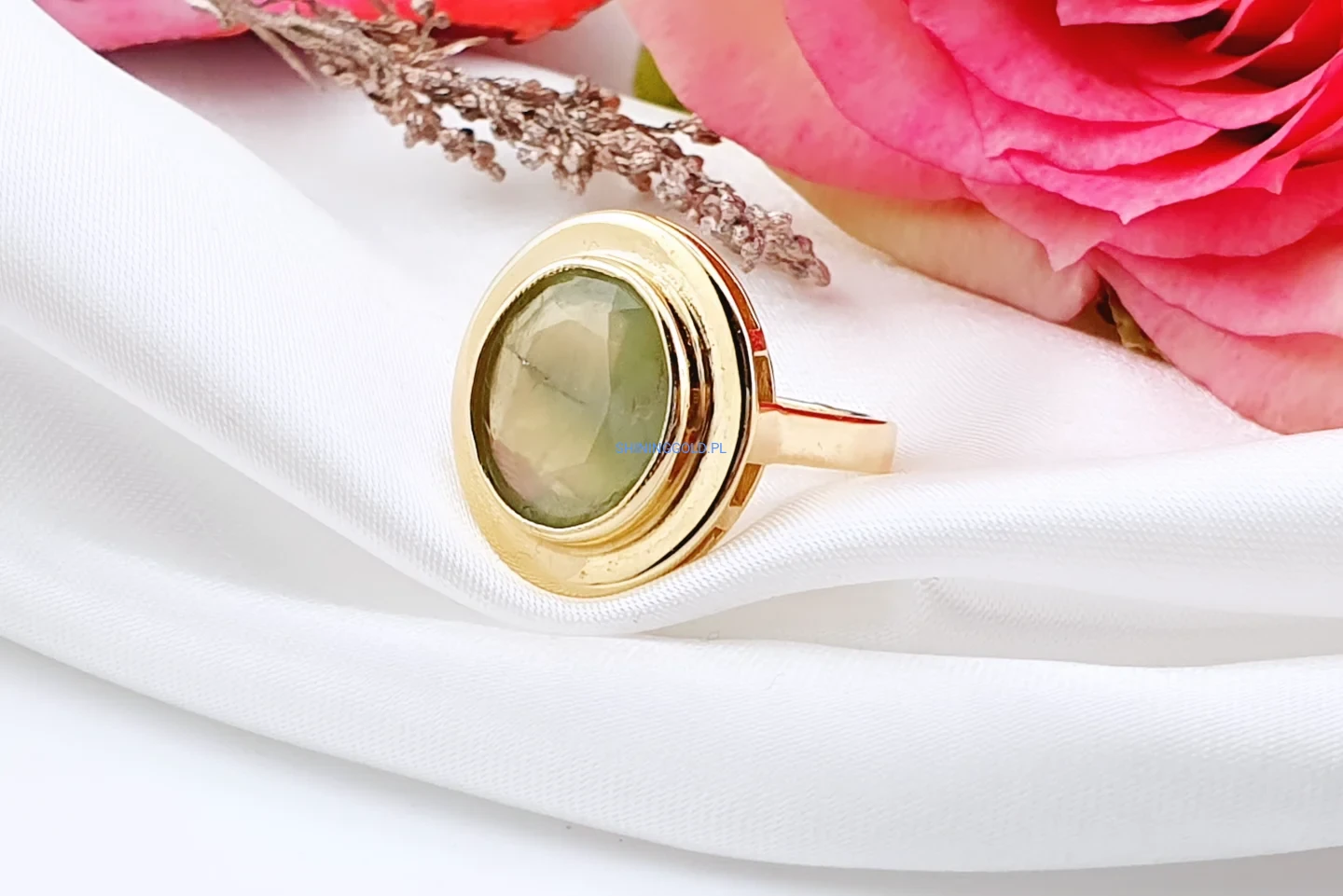 Złoty pierścionek 585 z naturalnym oliwinem – wyrazista forma i naturalne piękno