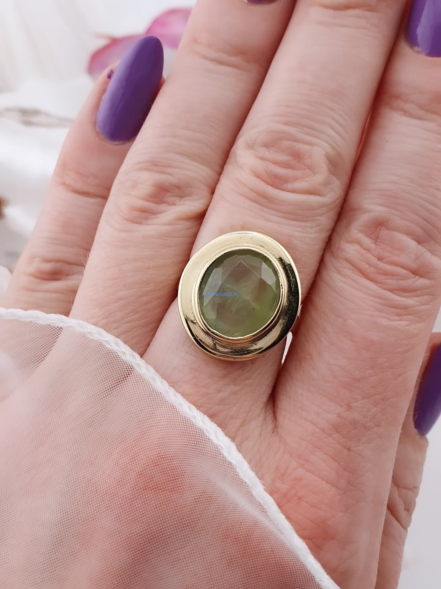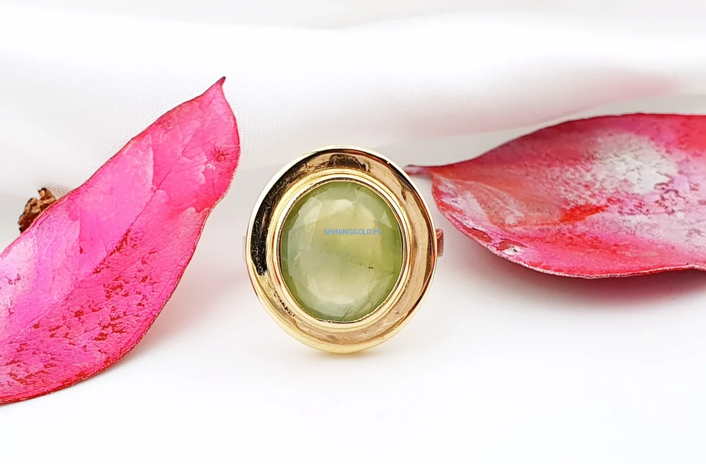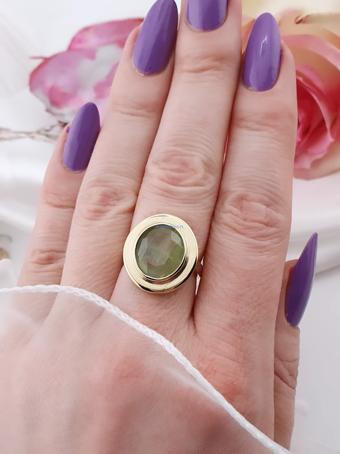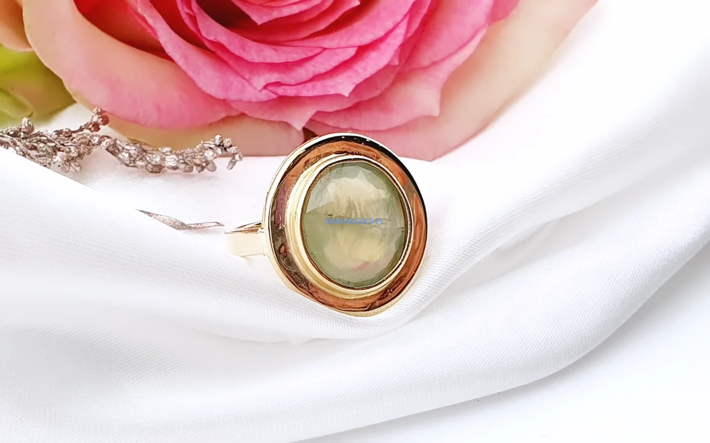 Złoty pierścionek 585 z naturalnym oliwinem – wyrazista forma i naturalne piękno
