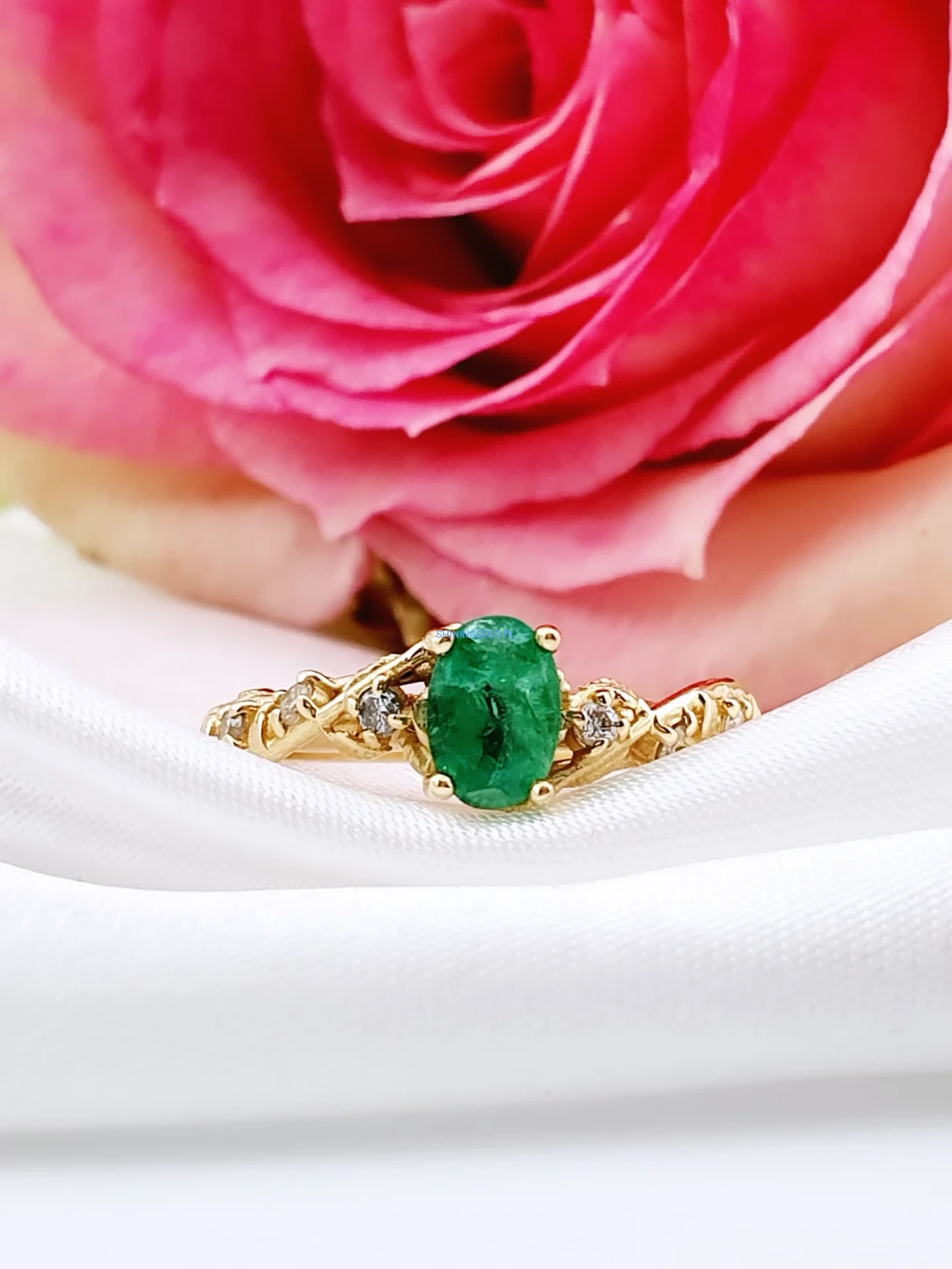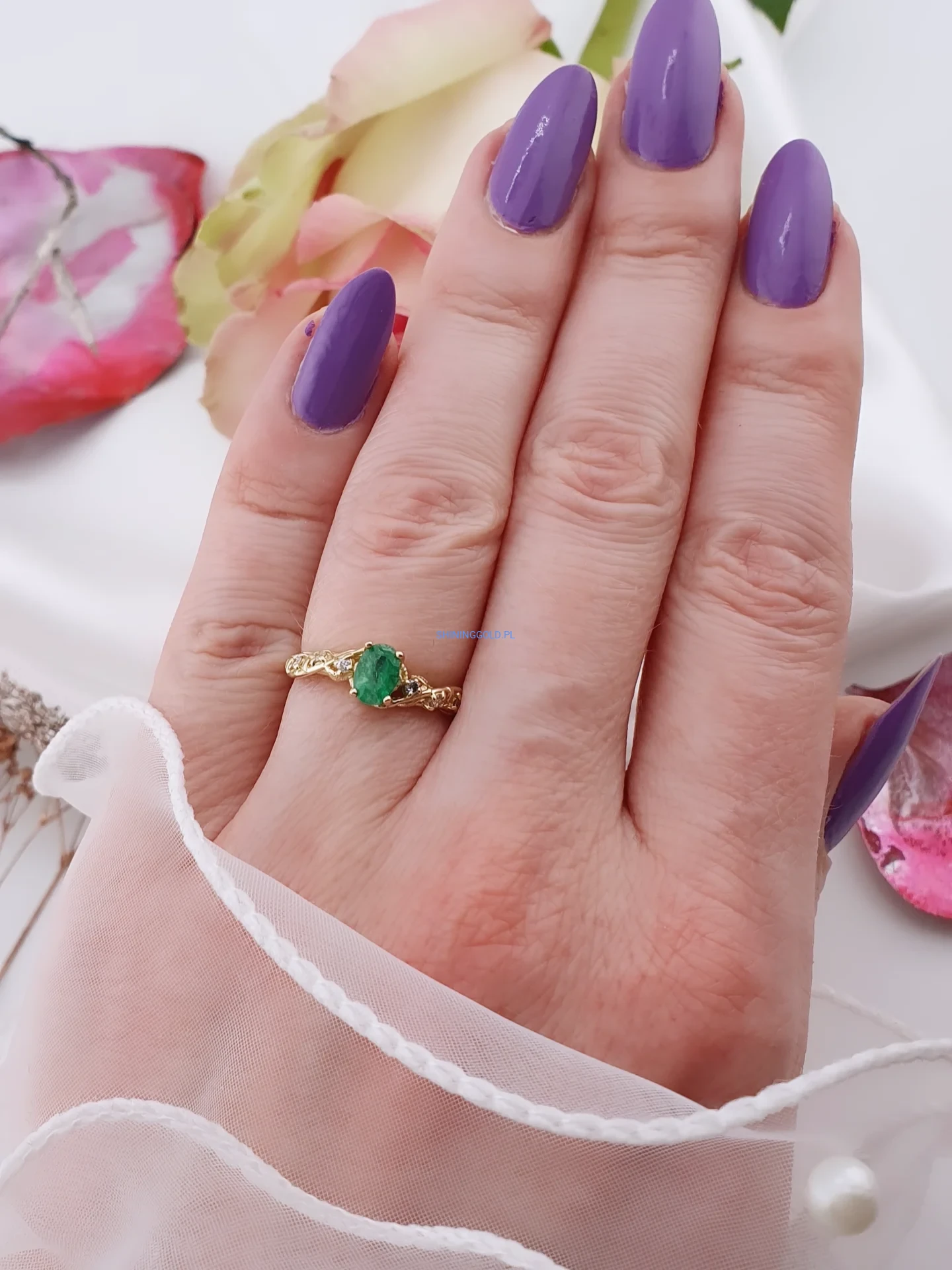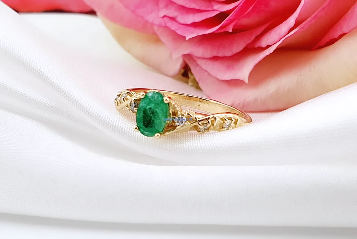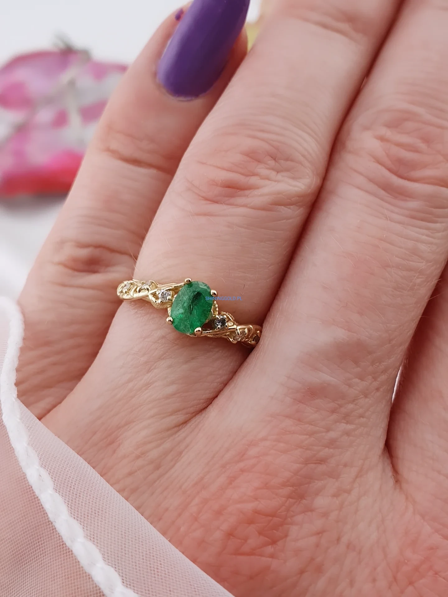 Złoty pierścionek 585 z naturalnym szmaragdem i diamentami – elegancja z nutą luksusu