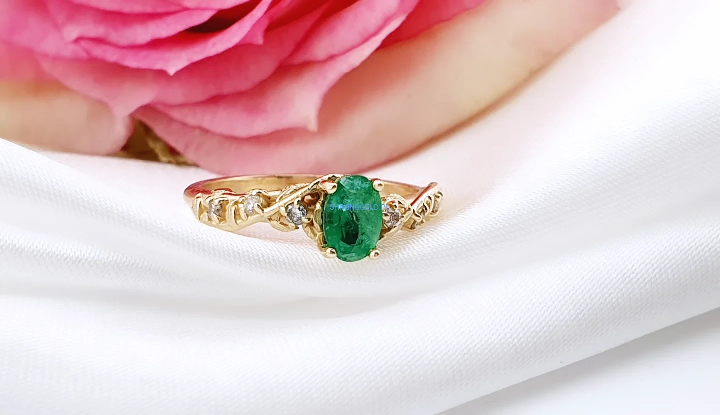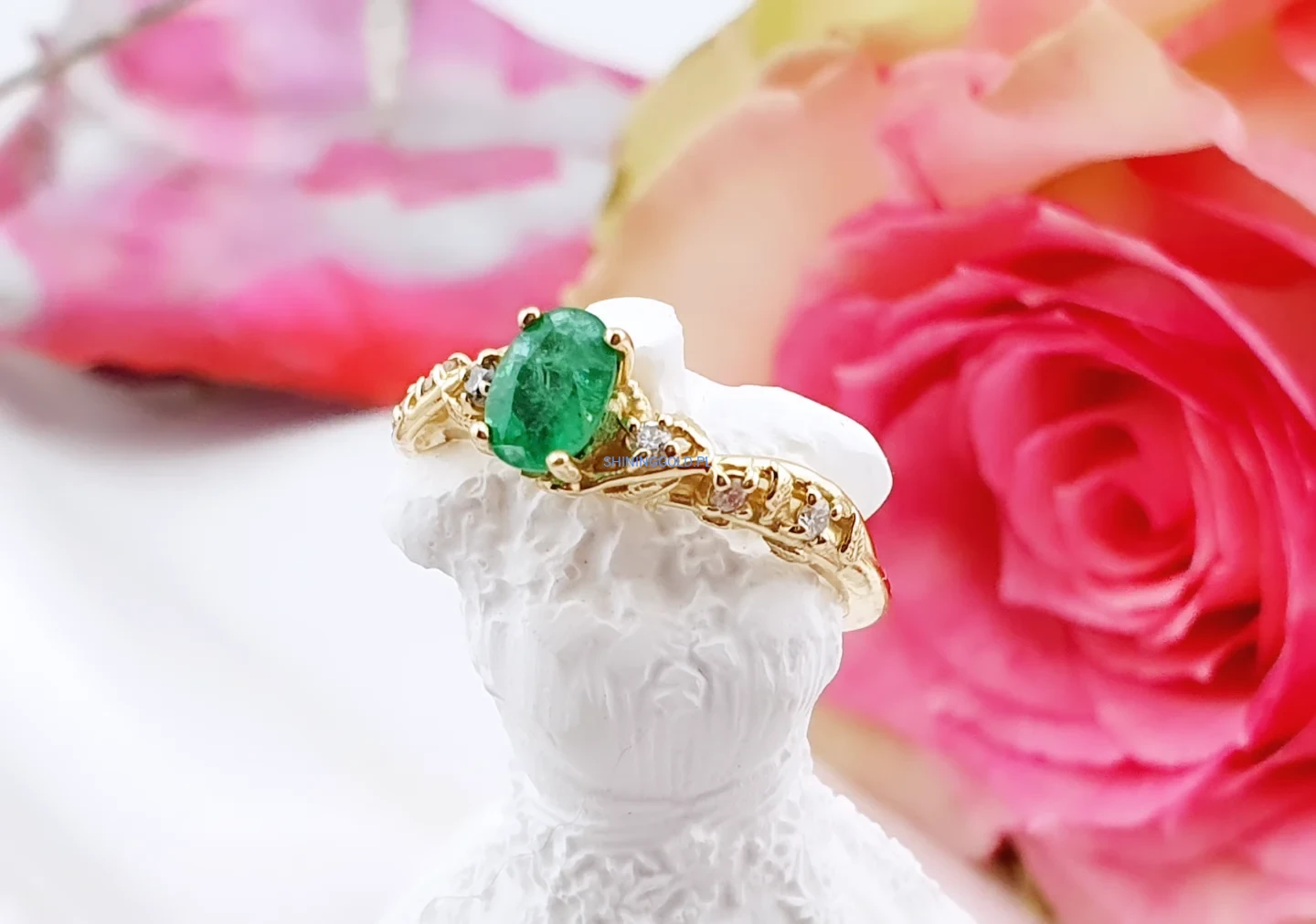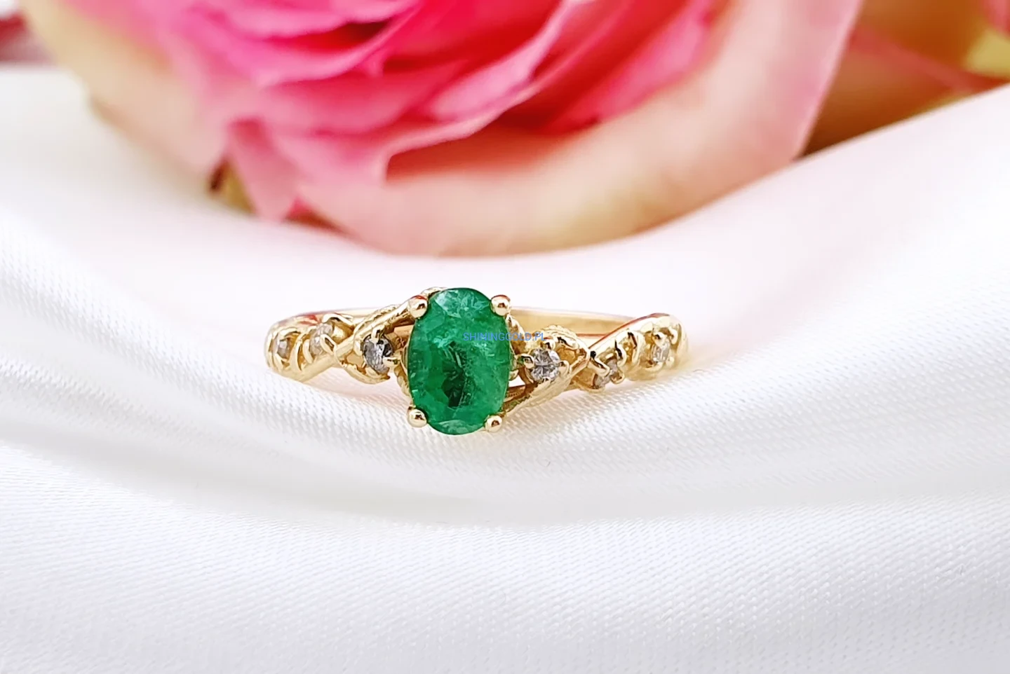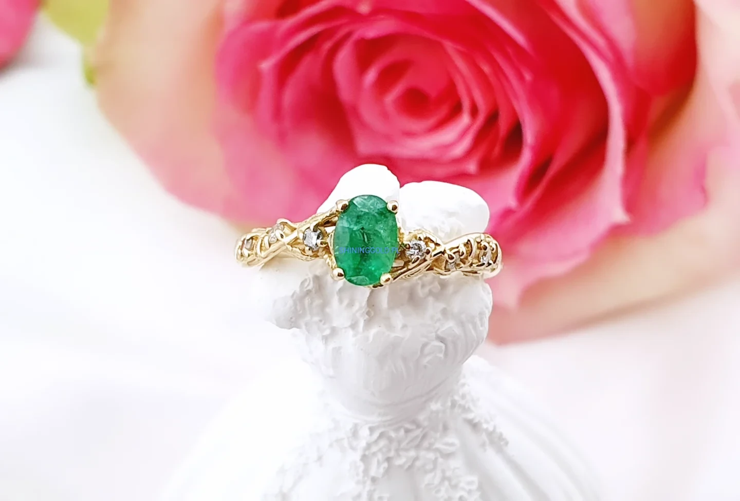 Złoty pierścionek 585 z naturalnym szmaragdem i diamentami – elegancja z nutą luksusu