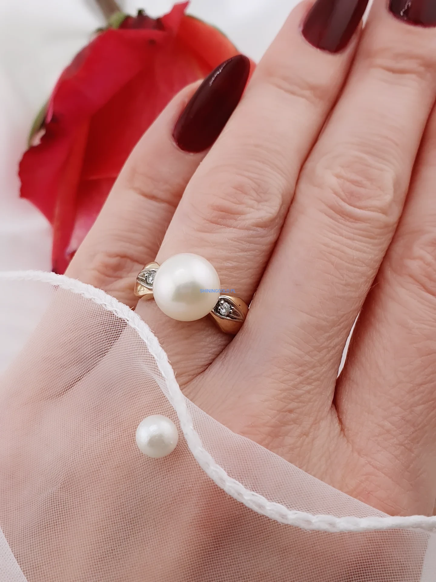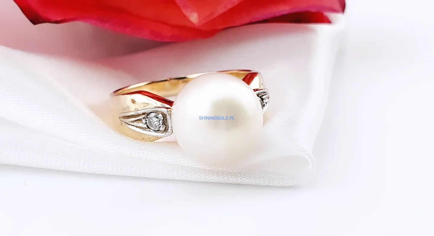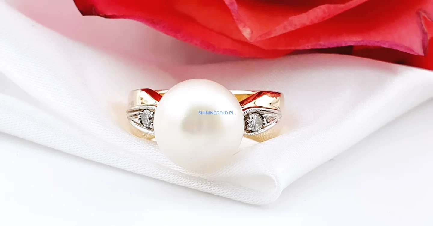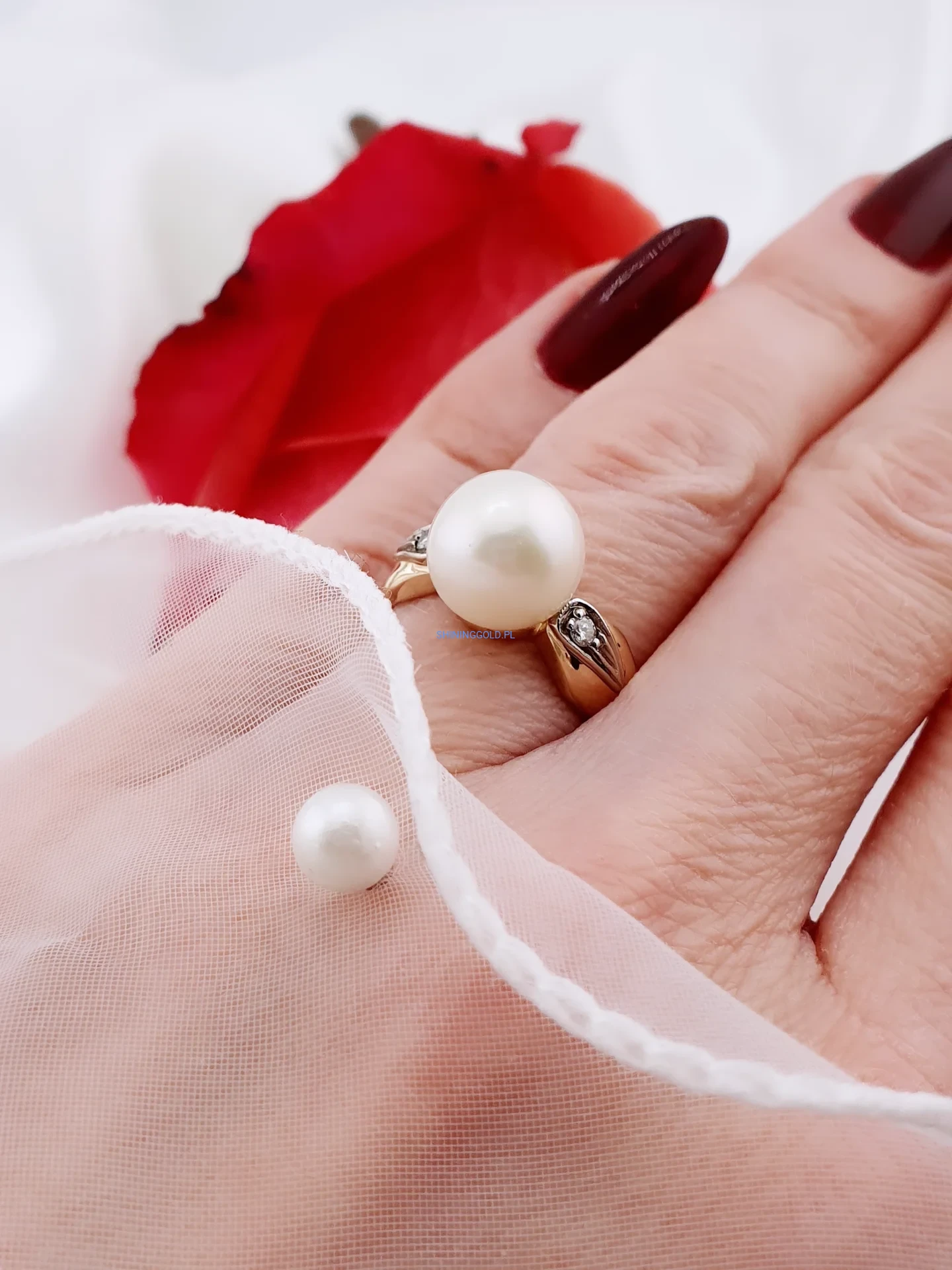 Złoty pierścionek 585 z perłą hodowlaną i diamentami (1128WS)