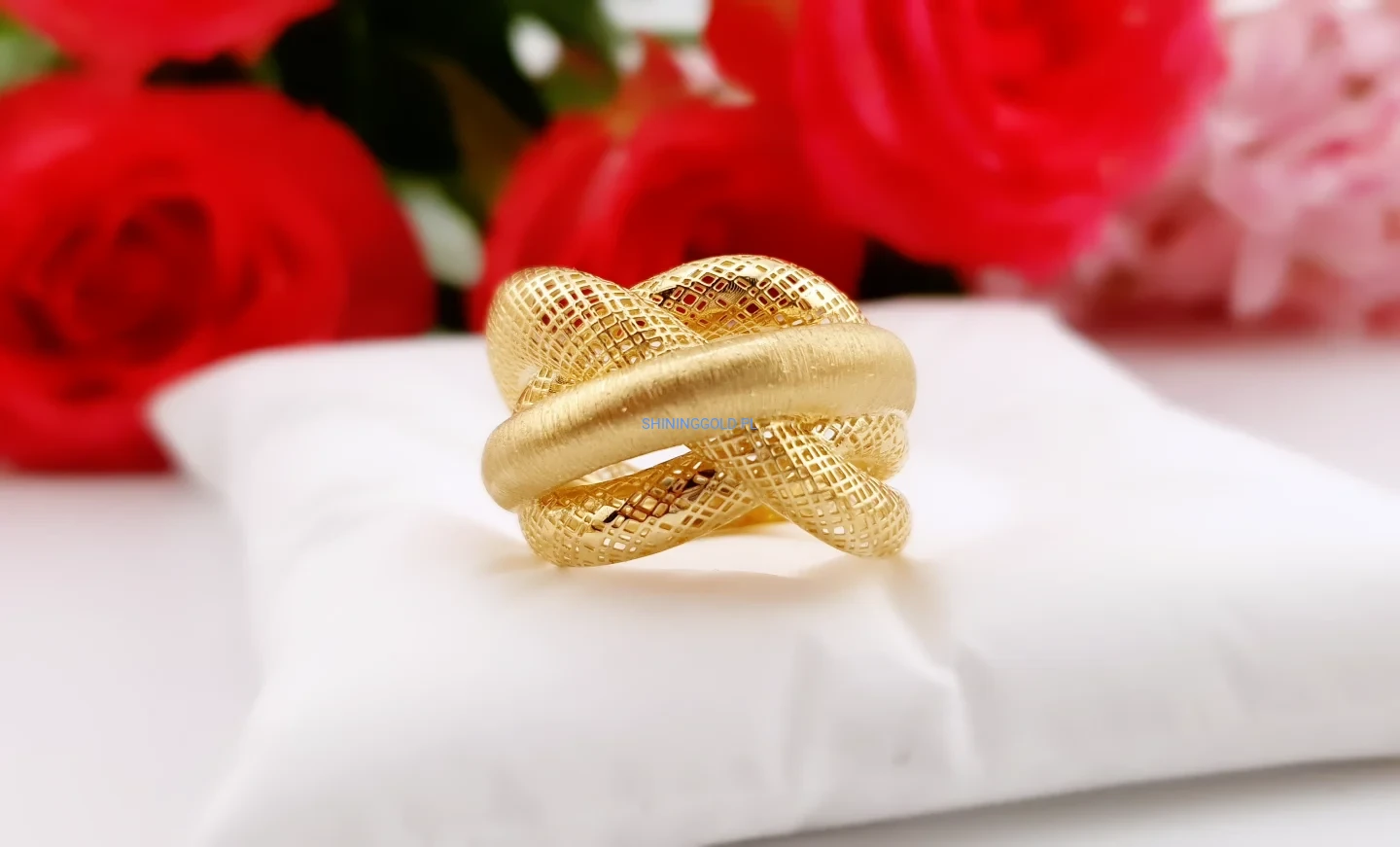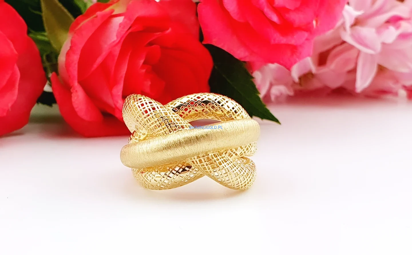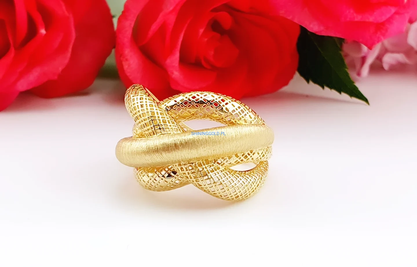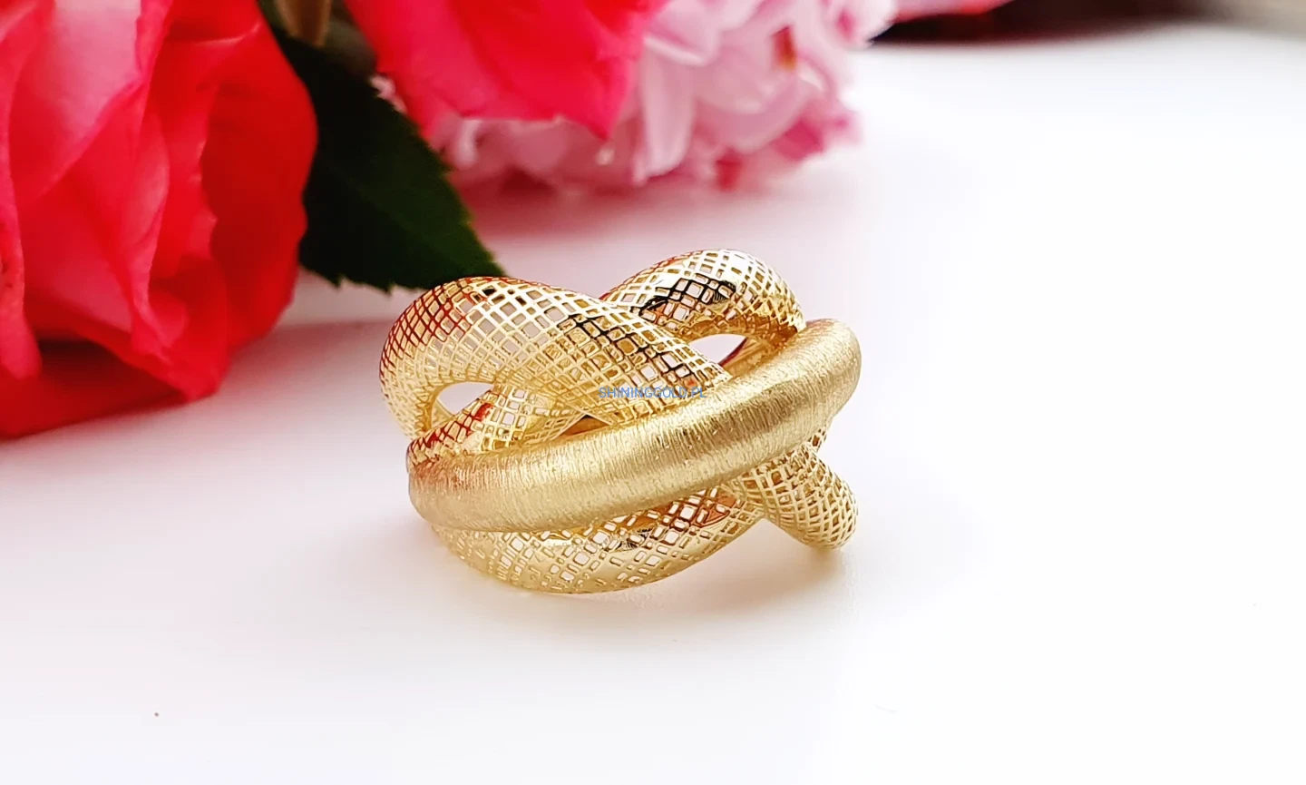 Złoty pierścionek – pleciony, elegancki wzór (028A)