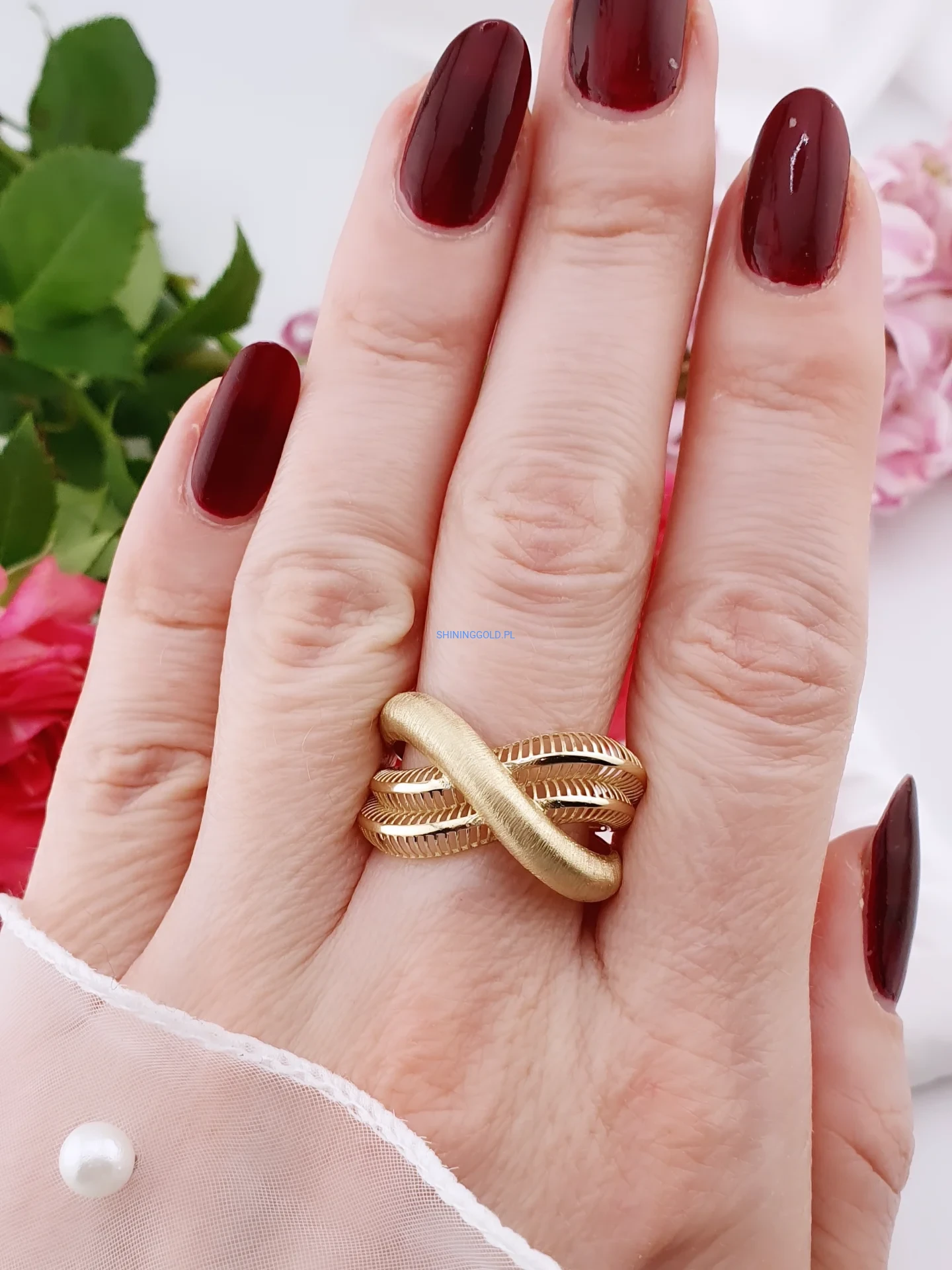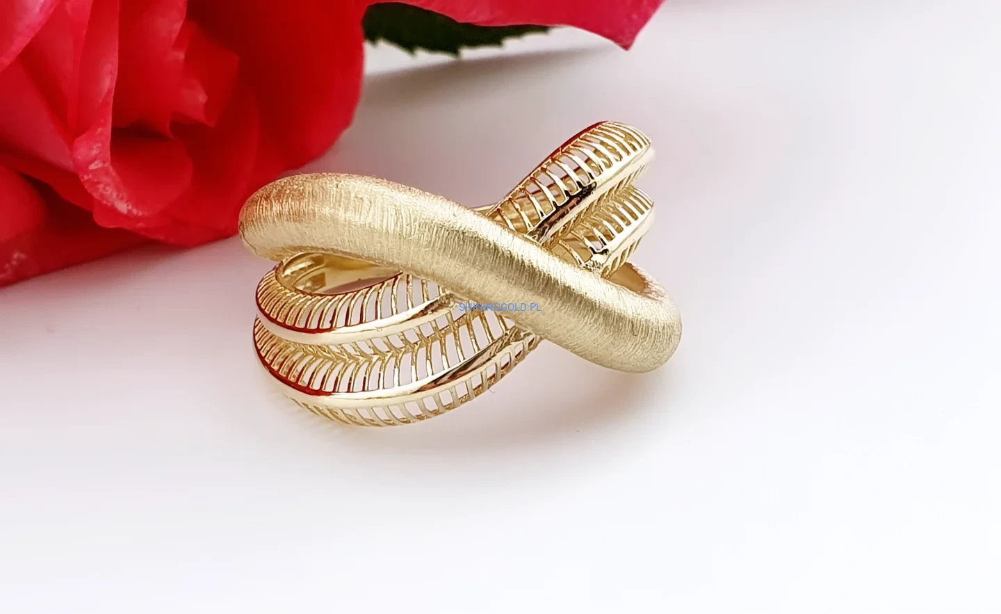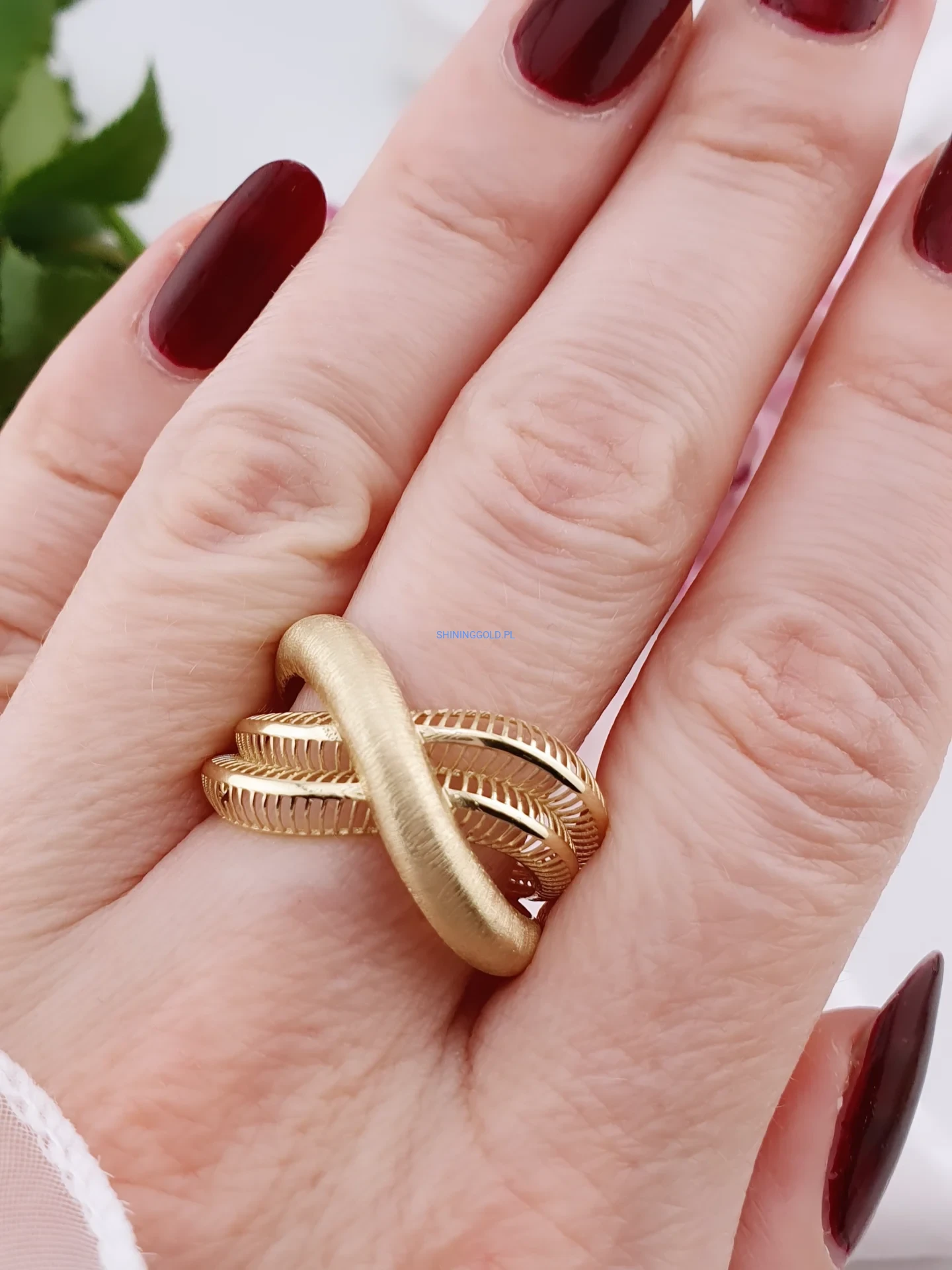 Złoty pierścionek przeplatany matowy ażurowy (040A)