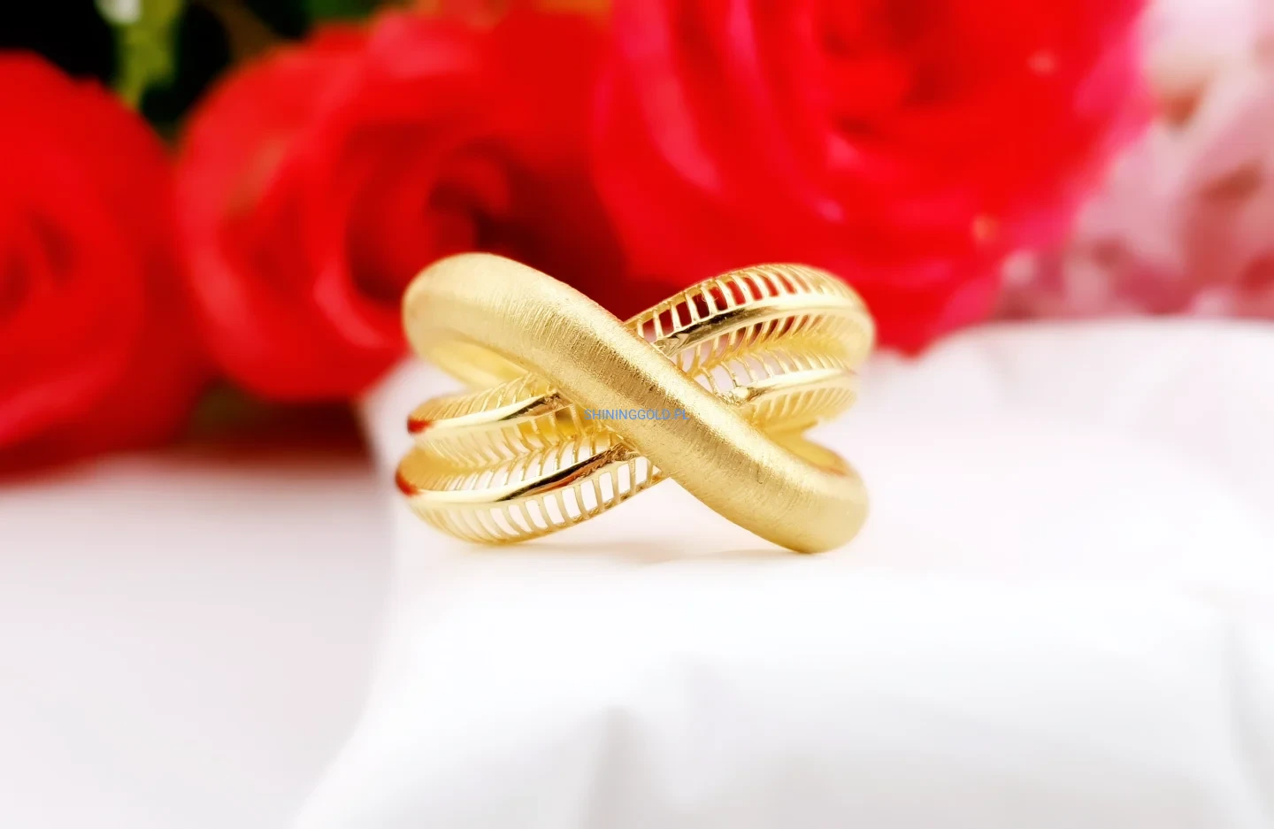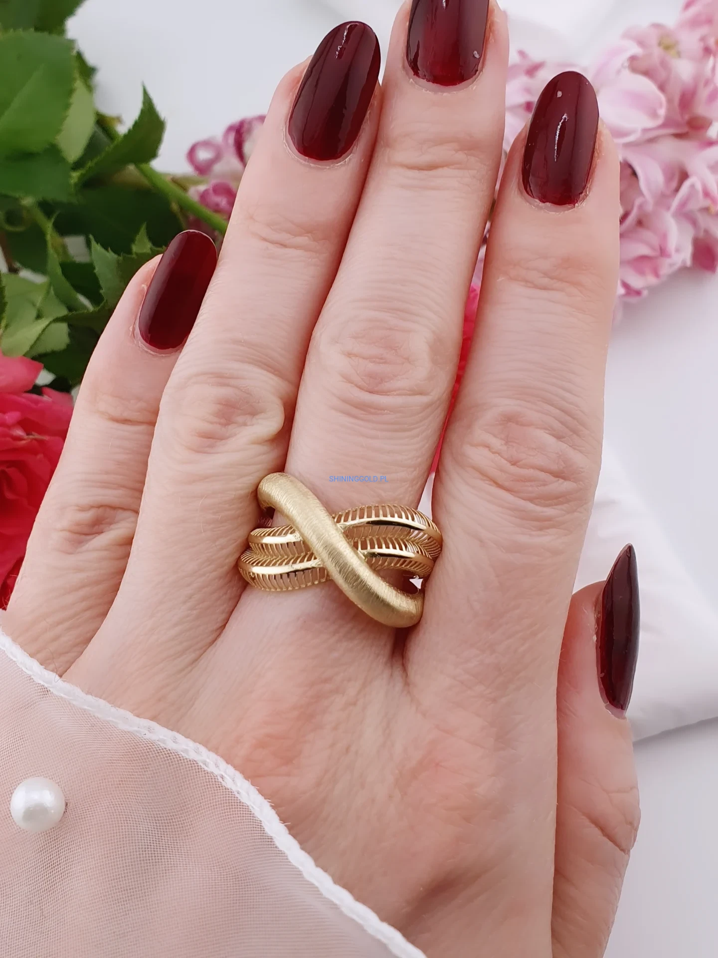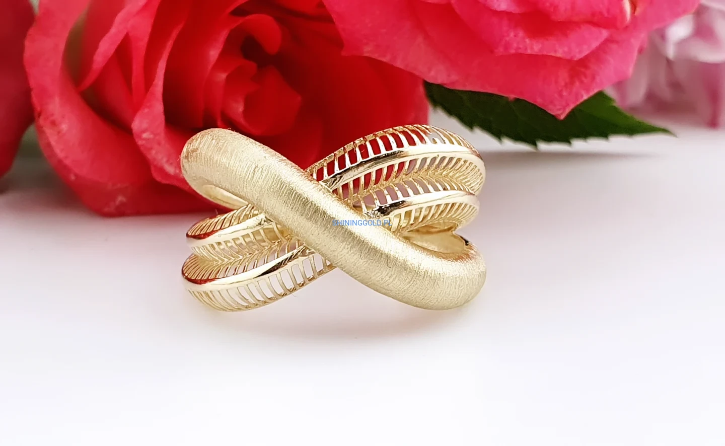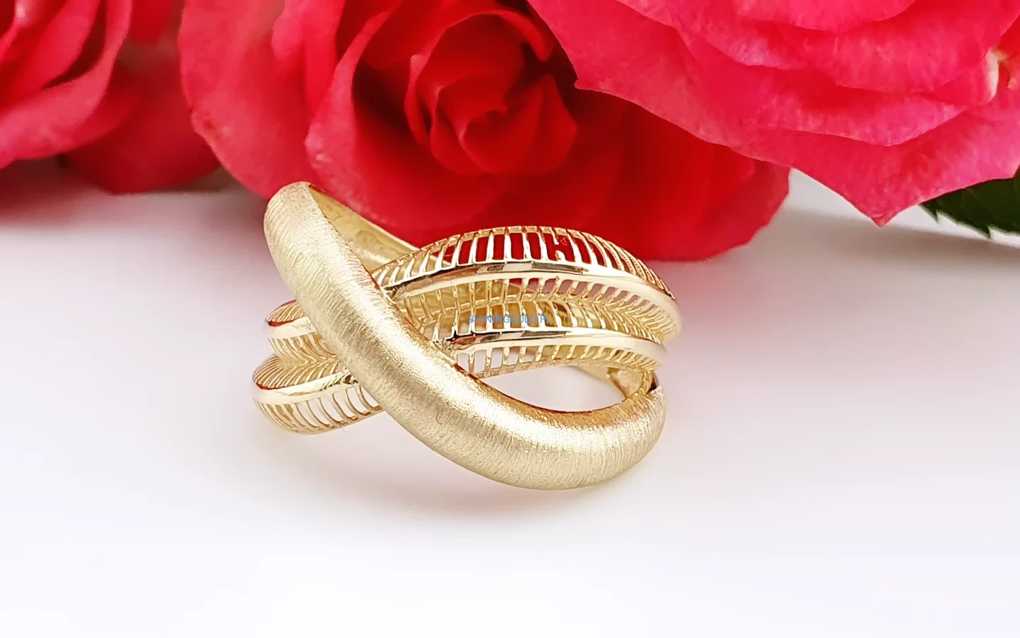 Złoty pierścionek przeplatany matowy ażurowy (040A)