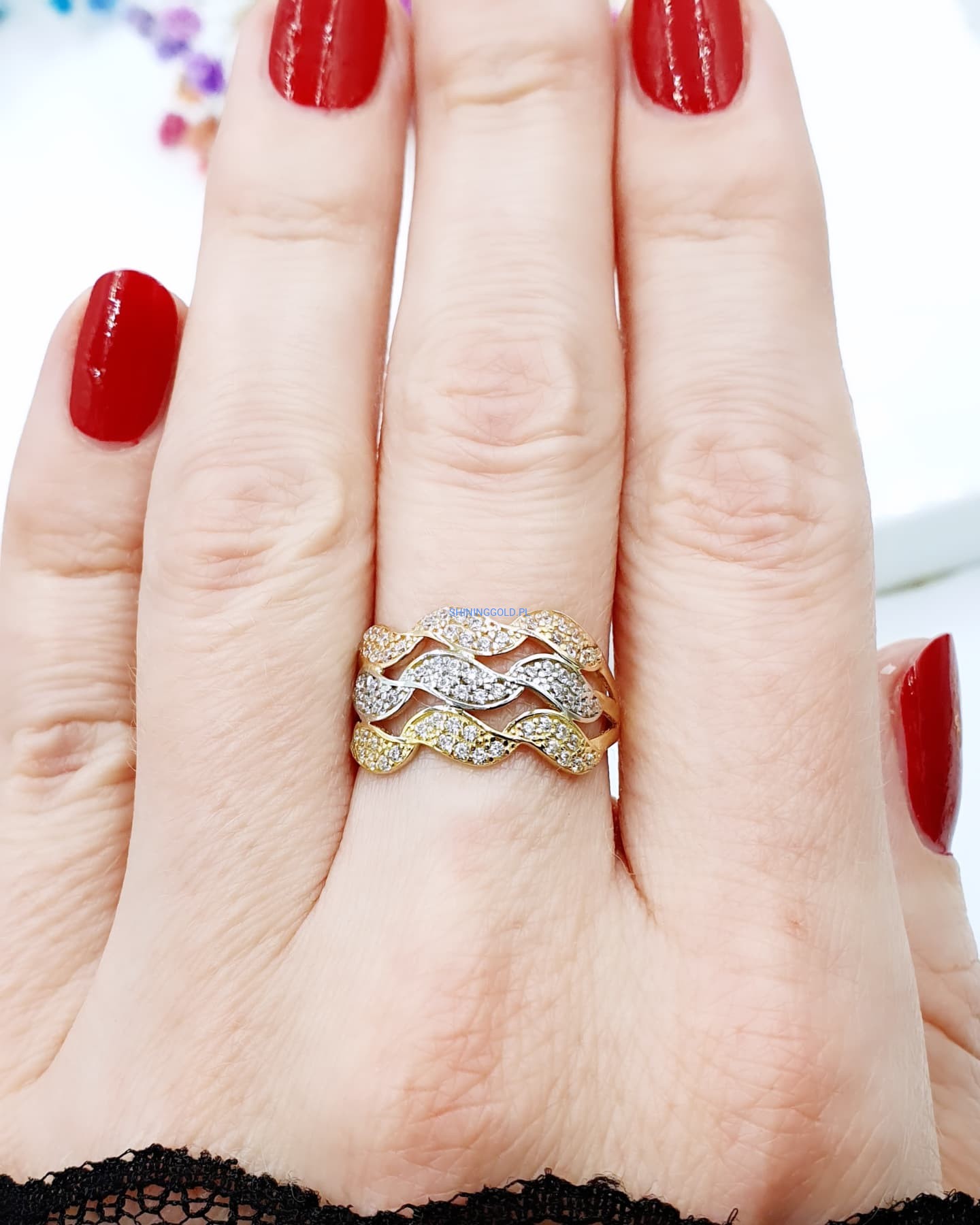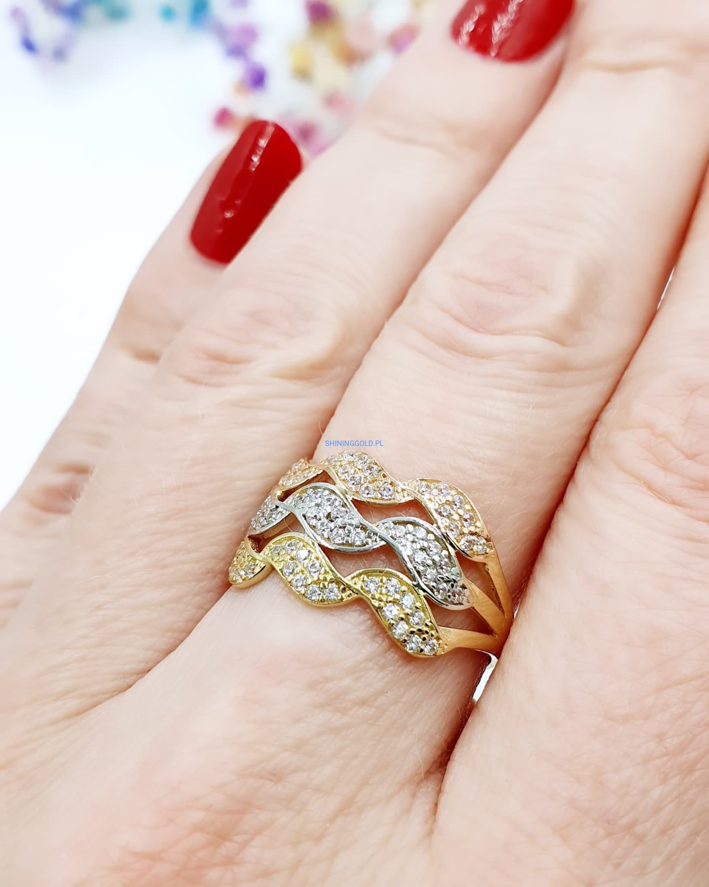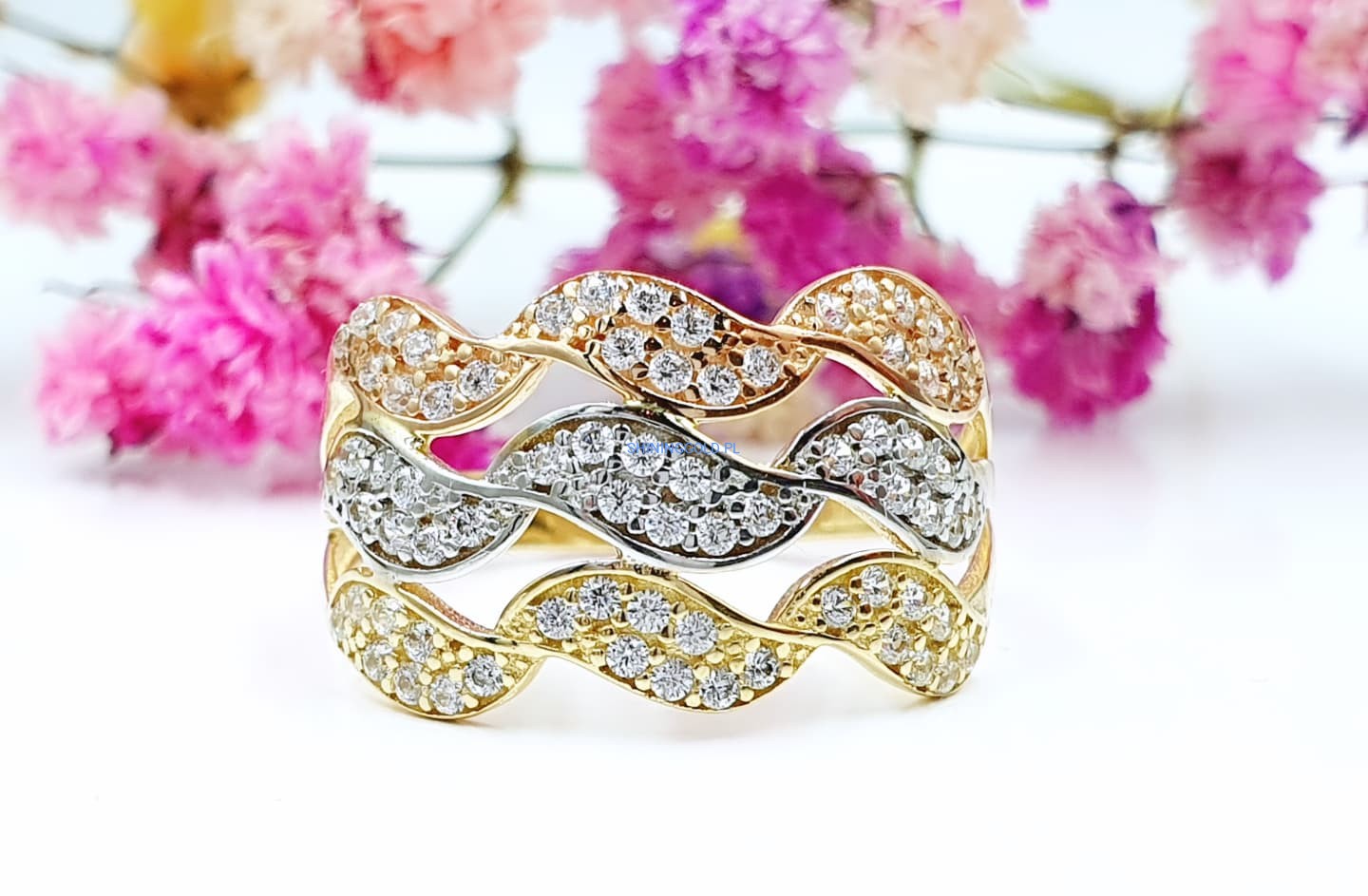 Złoty pierścionek w trzech kolorach złota z cyrkoniami – ponadczasowy blask i elegancja