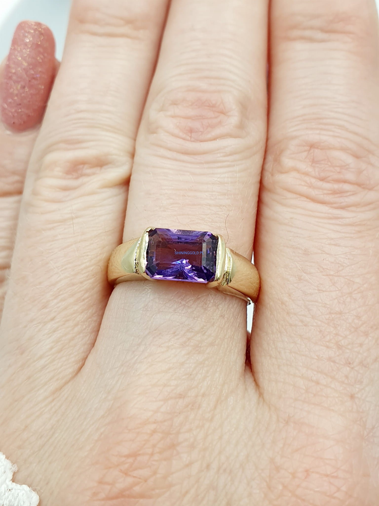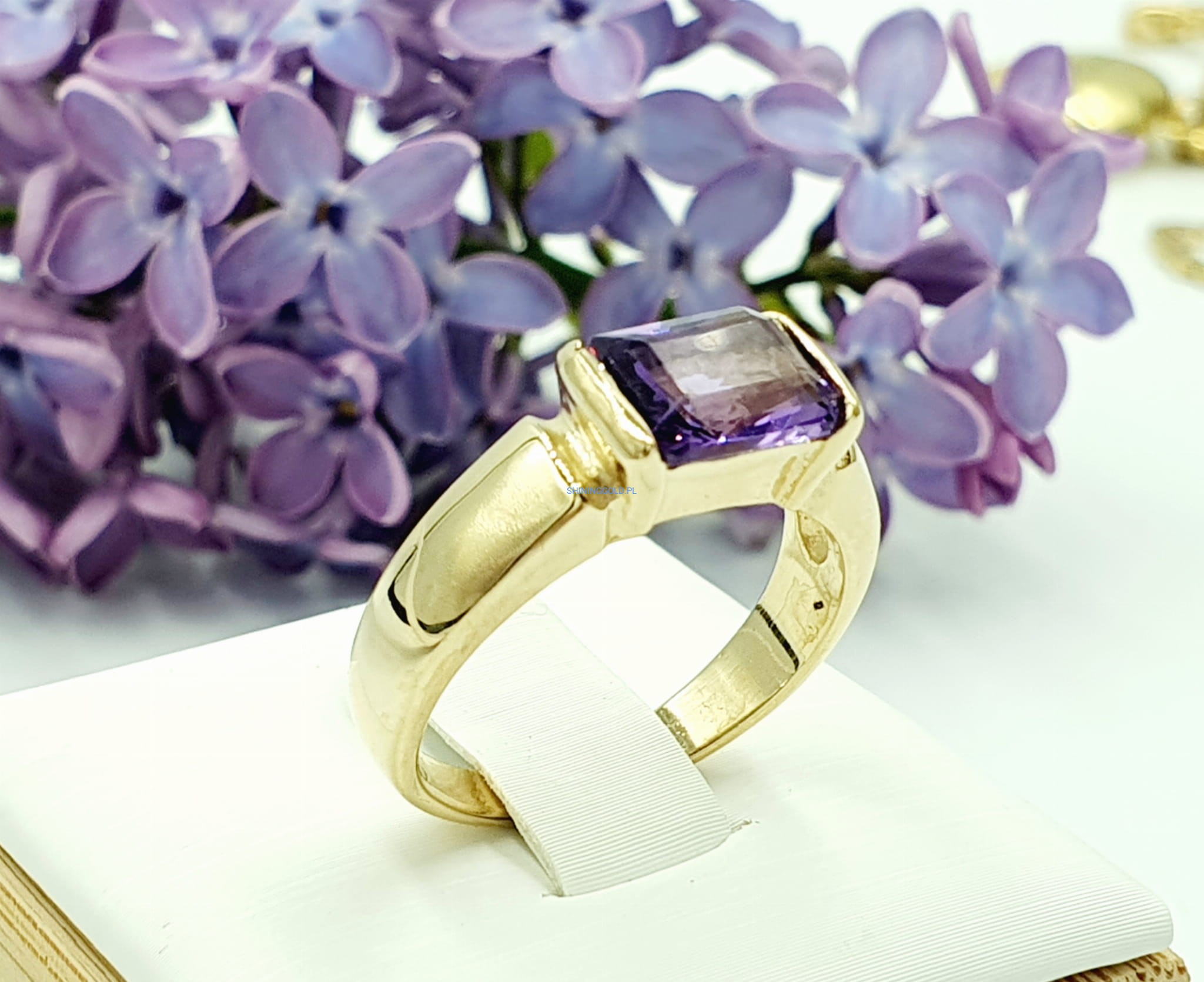 Złoty pierścionek z Ametystem (060.P)